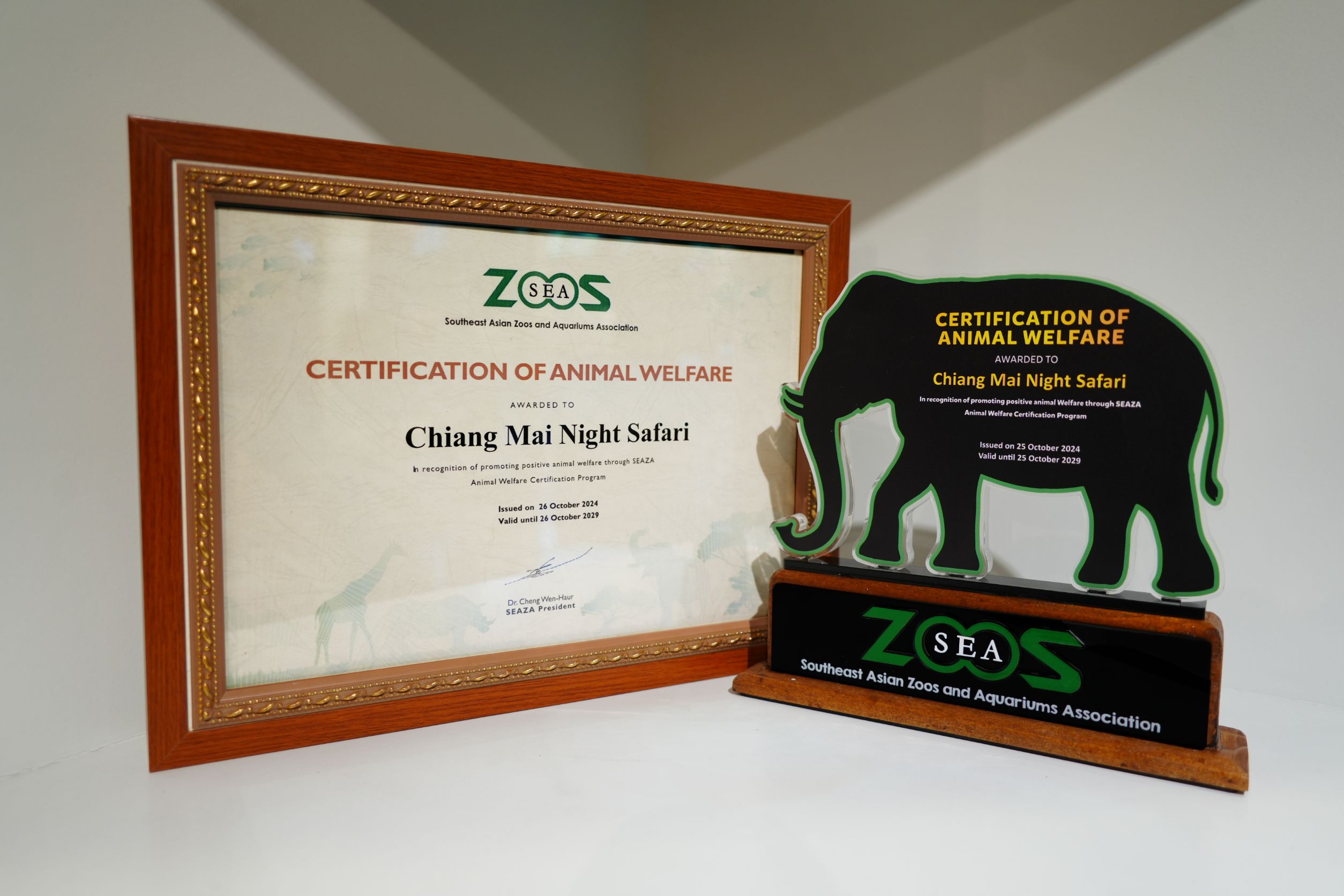และเมื่อวันที่ 25 ตุลาคม 2567 ในงานประชุมทางวิชาการของสมาคม SEAZA ประจำปี พ.ศ.2567 ณ Taipei Zoo,Taiwan สำนักงานพัฒนาพิงคนคร องค์การมหาชน โดยสำนักงานเชียงใหม่ไนท์ซาฟารี ได้รับการรับรองด้านสวัสดิภาพสัตว์ตามมาตรฐาน SEAZA SEAZA Animal Welfare Certification program พร้อมโล่ Certification of animals welfare เพื่อเป็นการรับรองในการเลี้ยงสัตว์ตามหลักสวัสดิภาพสัตว์ Animal Welfare และเป็นการยืนยันถึงความมุ่งมั่นในการดูแลและจัดการสัตว์อย่างมีคุณภาพ การรับรองนี้สะท้อนถึงการปฏิบัติตามมาตรฐานสากลในการดูแลสัตว์ รวมถึงการจัดสภาพแวดล้อมที่เหมาะสม การให้อาหารที่ถูกต้อง และการดูแลสุขภาพสัตว์อย่างต่อเนื่อง ทำให้นักท่องเที่ยวมั่นใจได้ว่าการเยี่ยมชมเชียงใหม่ไนท์ซาฟารี เป็นการสนับสนุนสถานที่ที่ให้ความสำคัญกับสวัสดิภาพของสัตว์อย่างแท้จริง
