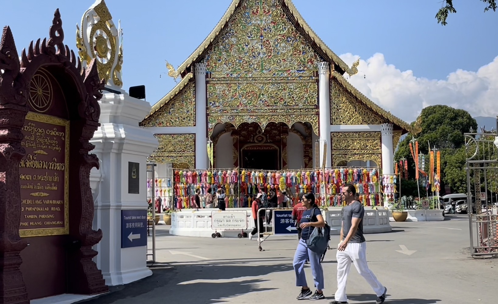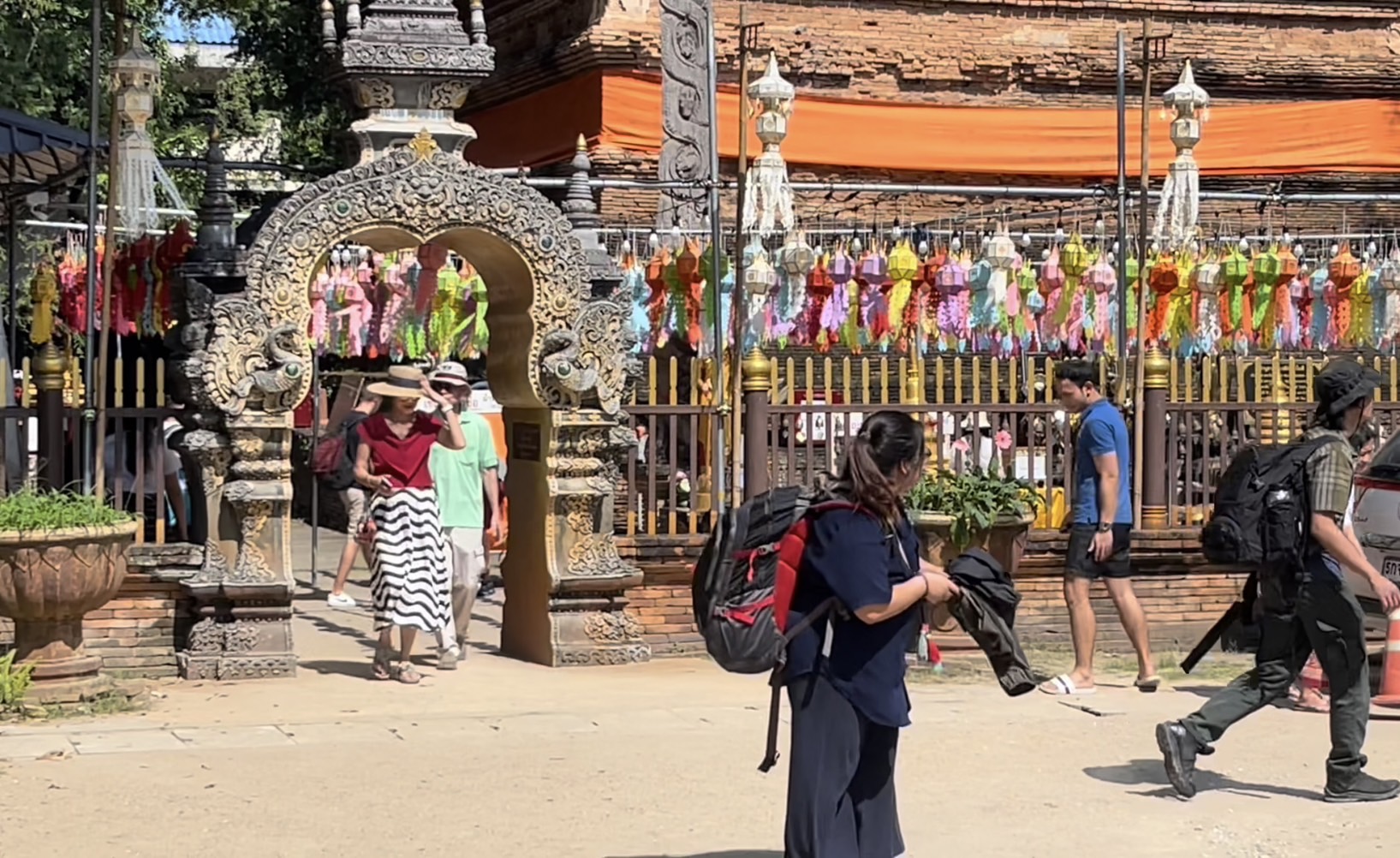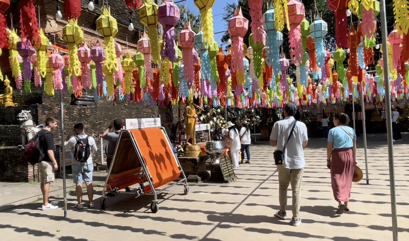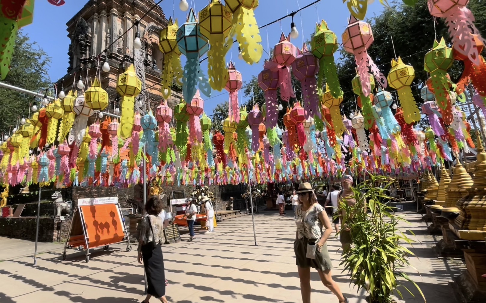 โดยในวันนี้ในพื้นที่ตัวเมืองเชียงใหม่ทั้งตามสถานที่ท่องเที่ยวแลนด์มาร์คสำคัญ และตามวัดวาอารามหลายแห่ง พบว่ามีนักท่องเที่ยวทั้งชาวไทยและต่างชาติจำนวนมากพากันเดินเที่ยวชมความสวยงามและบันทึกภาพร่วมกับโคมไฟหลากสีที่ทางสถานที่ได้มีการตกแต่งประดับประดาเพื่อให้เข้ากับเทศกาลยี่เป็งเมืองเชียงใหม่ สร้างความตื่นตาตื่นใจให้กับนักท่องเที่ยวที่เข้ามาเที่ยวชม นอกจากนี้บางรายก็ได้มีการเช่าชุดไทยมาเดินถ่ายภาพตามบริเวณประตูท่าแพ และตามวัดเพื่อให้เข้ากับสถานที่และเข้ากับวัฒนธรรม ประเพณีของคนไทย โดยคาดการณ์ว่าในช่วงอีกไม่กี่วันก่อนถึงเทศกาลยี่เป็งหรือลอยกระทง จะมีนักท่องเที่ยวเดินทางเข้ามาอีกอย่างต่อเนื่อง เพื่อรอร่วมงานเทศกาลที่จะจัดขึ้นในปีนี้