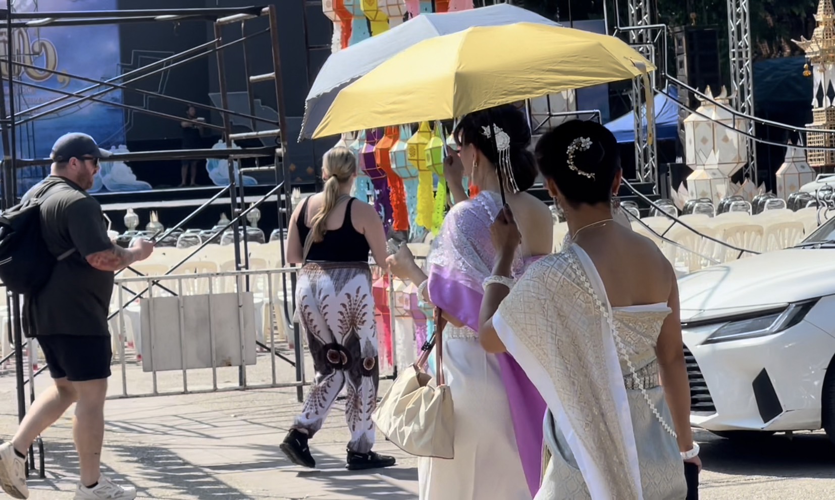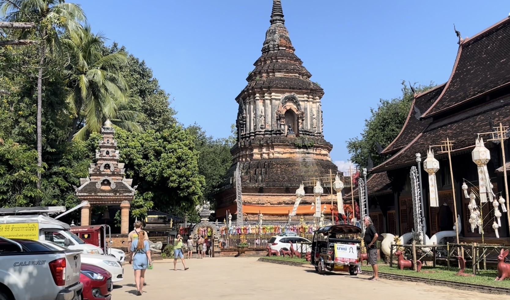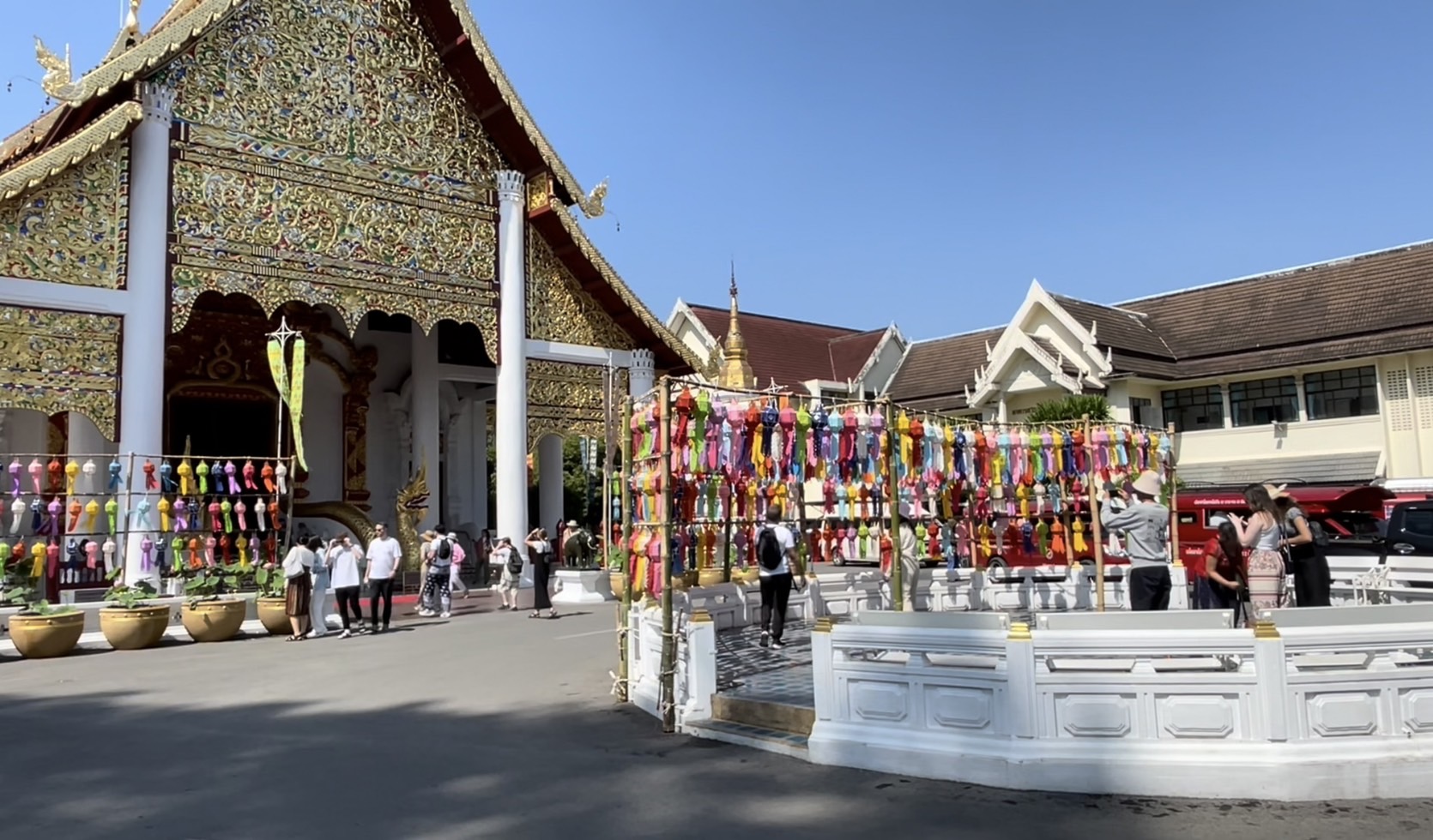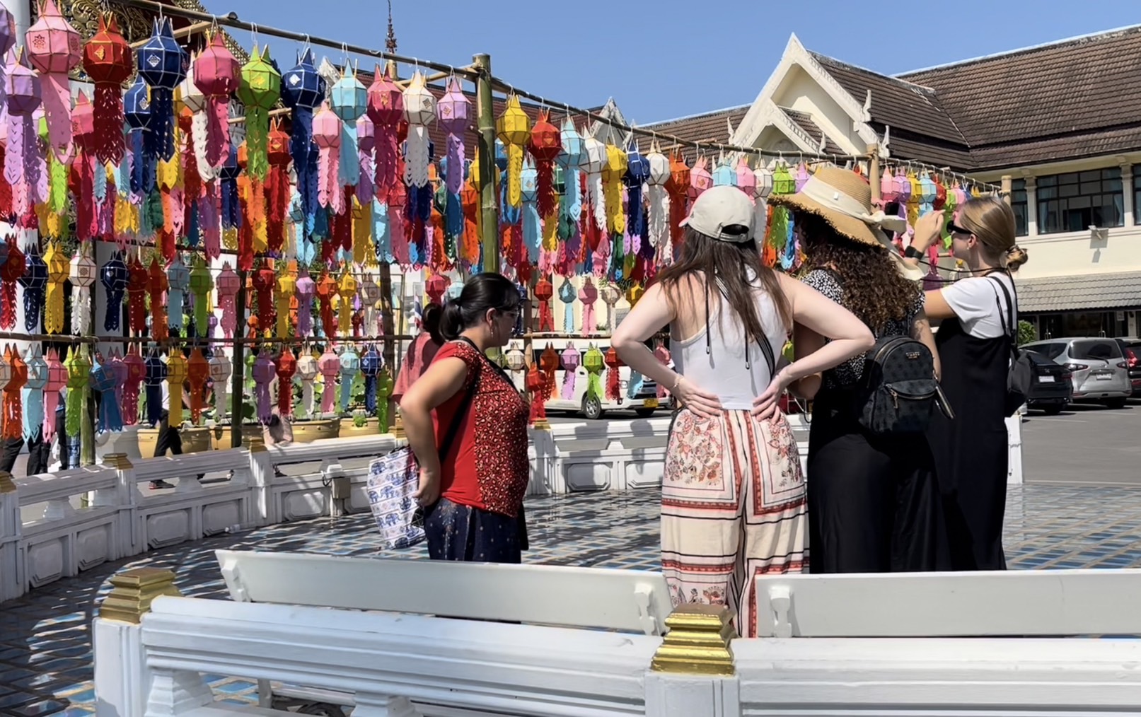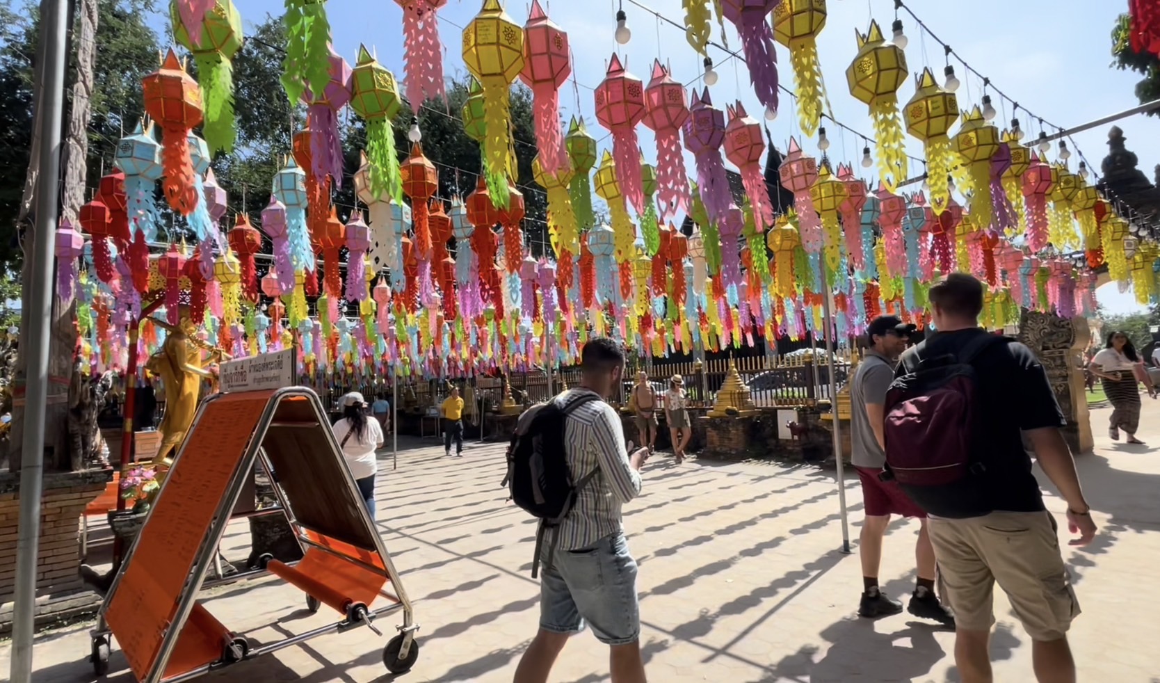 โดยในวันนี้ในพื้นที่ตัวเมืองเชียงใหม่ทั้งตามสถานที่ท่องเที่ยวแลนด์มาร์คสำคัญ และตามวัดวาอารามหลายแห่ง พบว่ามีนักท่องเที่ยวทั้งชาวไทยและต่างชาติจำนวนมากพากันเดินเที่ยวชมความสวยงามและบันทึกภาพร่วมกับโคมไฟหลากสีที่ทางสถานที่ได้มีการตกแต่งประดับประดาเพื่อให้เข้ากับเทศกาลยี่เป็งเมืองเชียงใหม่ สร้างความตื่นตาตื่นใจให้กับนักท่องเที่ยวที่เข้ามาเที่ยวชม นอกจากนี้บางรายก็ได้มีการเช่าชุดไทยมาเดินถ่ายภาพตามบริเวณประตูท่าแพ และตามวัดเพื่อให้เข้ากับสถานที่และเข้ากับวัฒนธรรม ประเพณีของคนไทย โดยคาดการณ์ว่าในช่วงอีกไม่กี่วันก่อนถึงเทศกาลยี่เป็งหรือลอยกระทง จะมีนักท่องเที่ยวเดินทางเข้ามาอีกอย่างต่อเนื่อง เพื่อรอร่วมงานเทศกาลที่จะจัดขึ้นในปีนี้