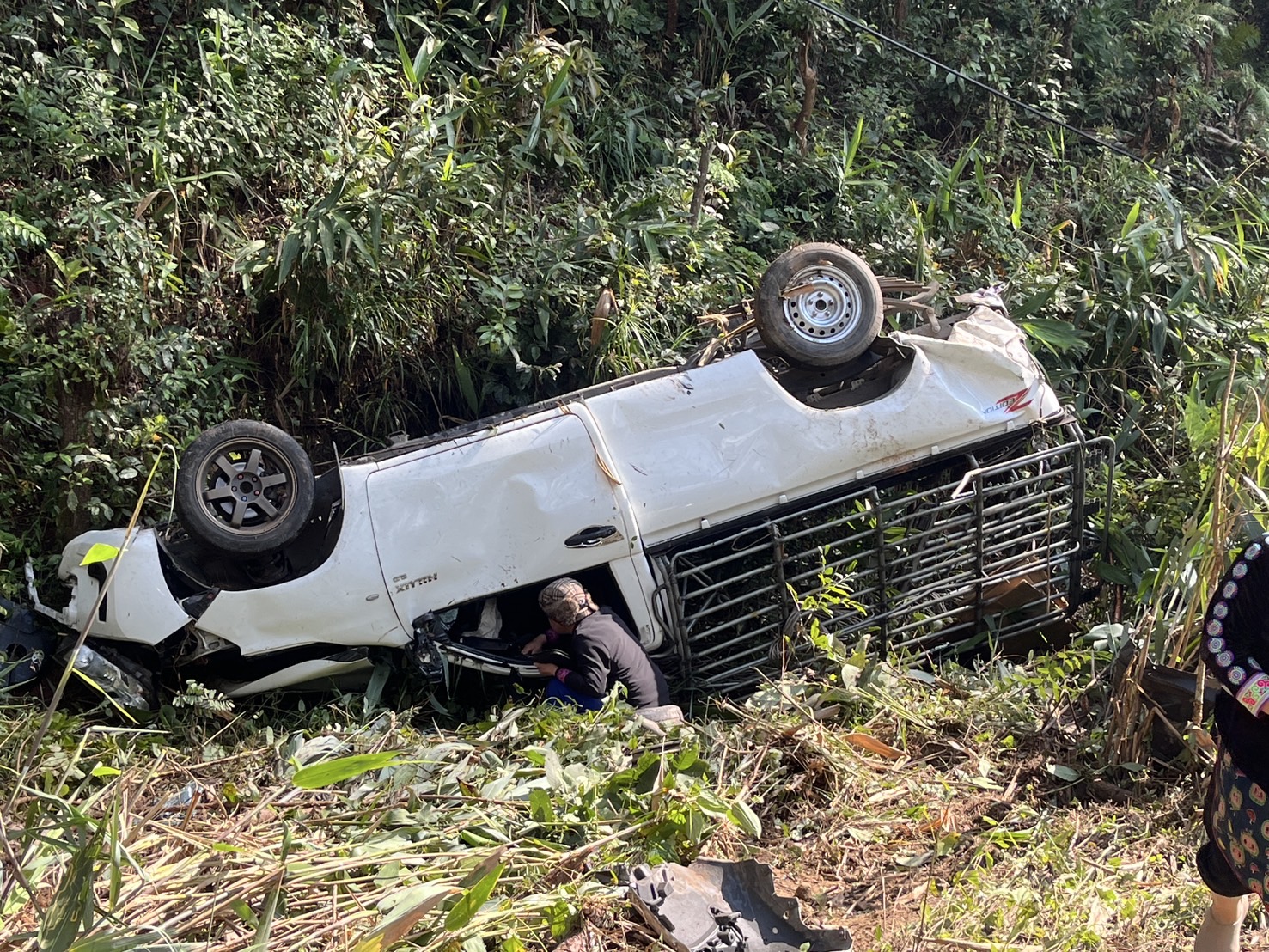 สอบถามผู้เห็นเหตุการณ์ บอกว่า รถตู้ลงดอยมาด้วยความเร็ว พุ่งชนรถคันแรก คือรถปาเจโร่อย่างแรง จนรถหมุนไปชนขอบถนนแบริเออร์เหล็ก แล้วมาจอดกลางถนน