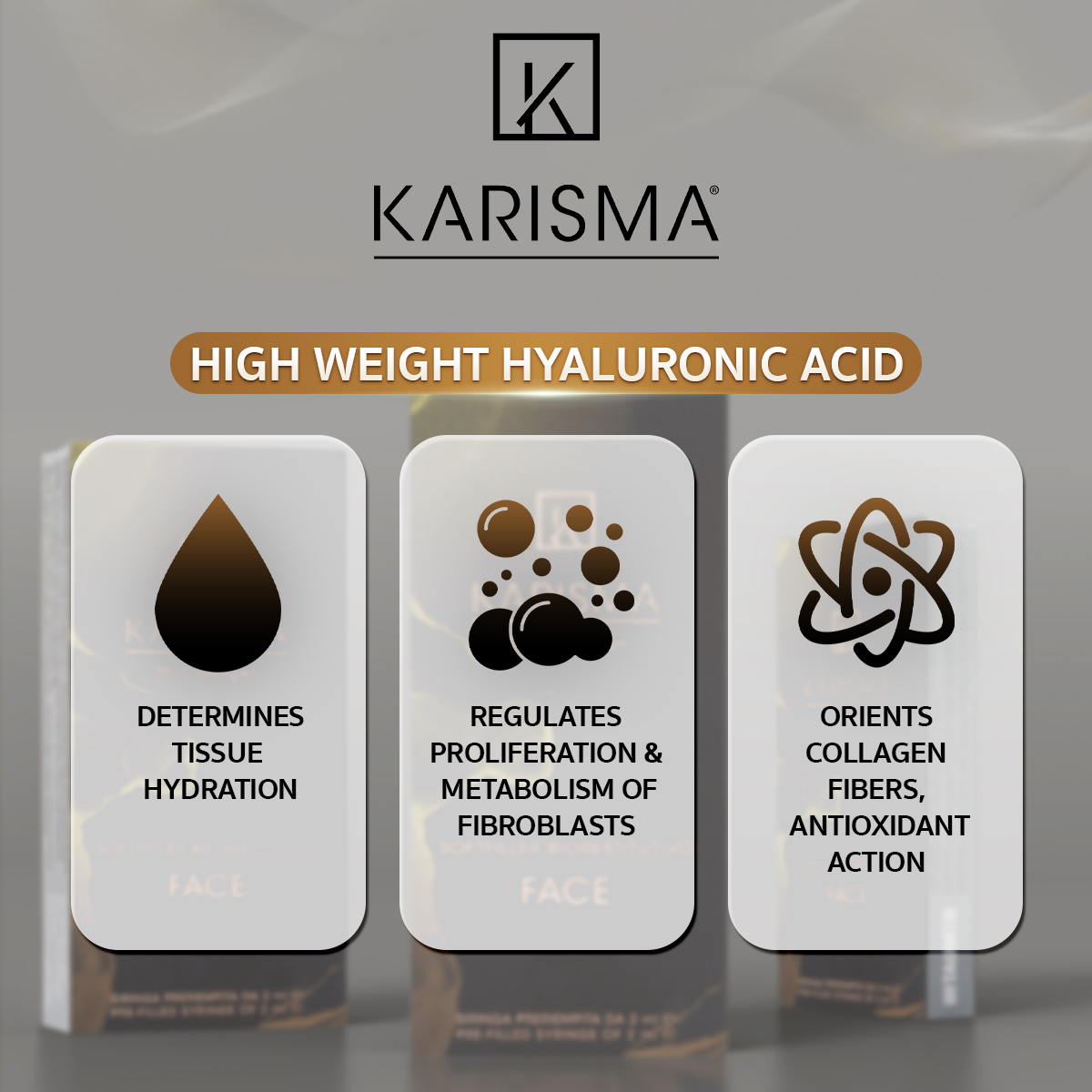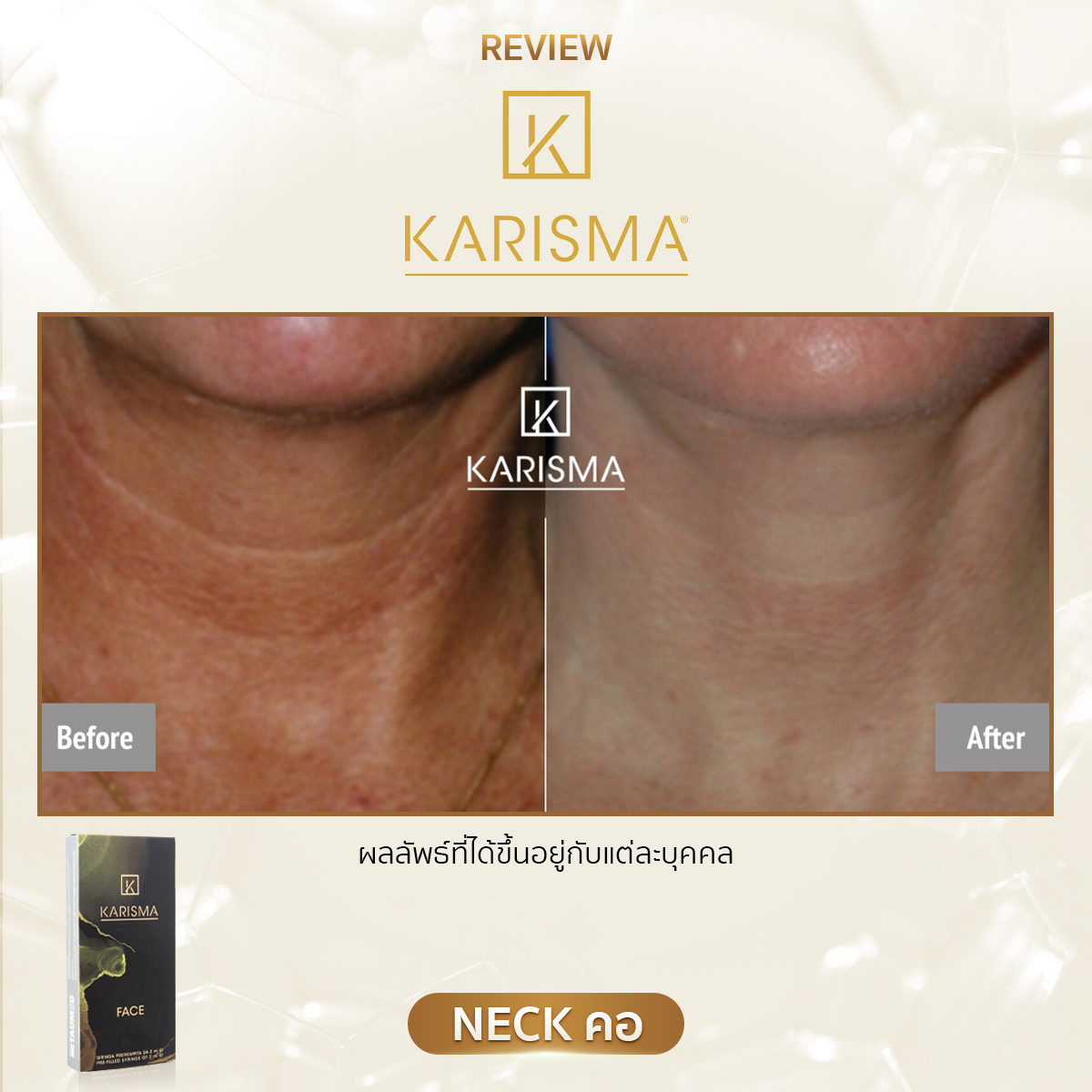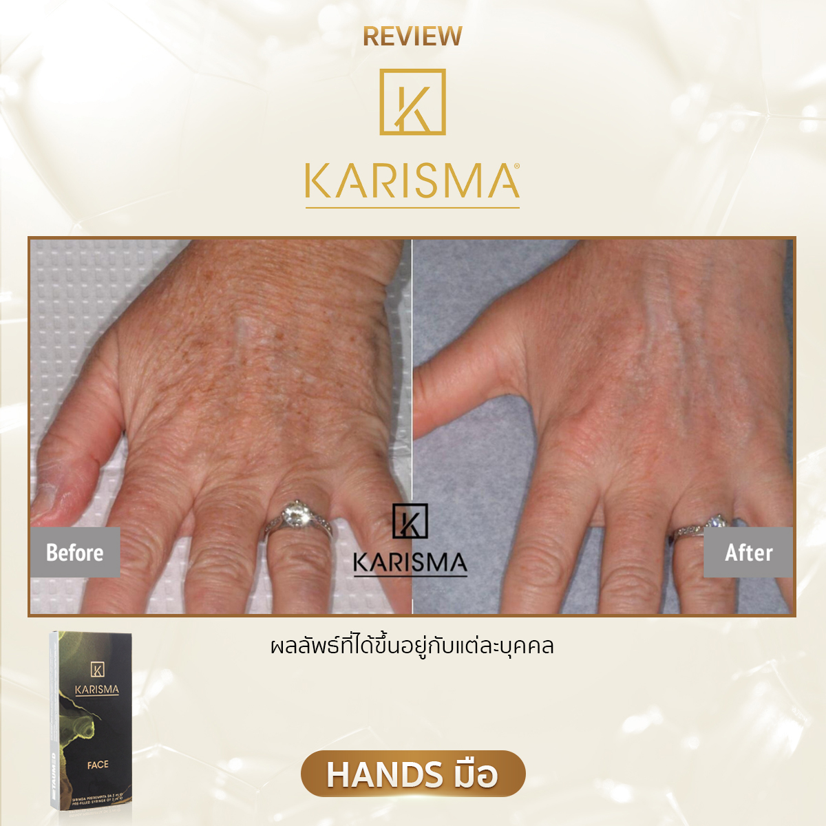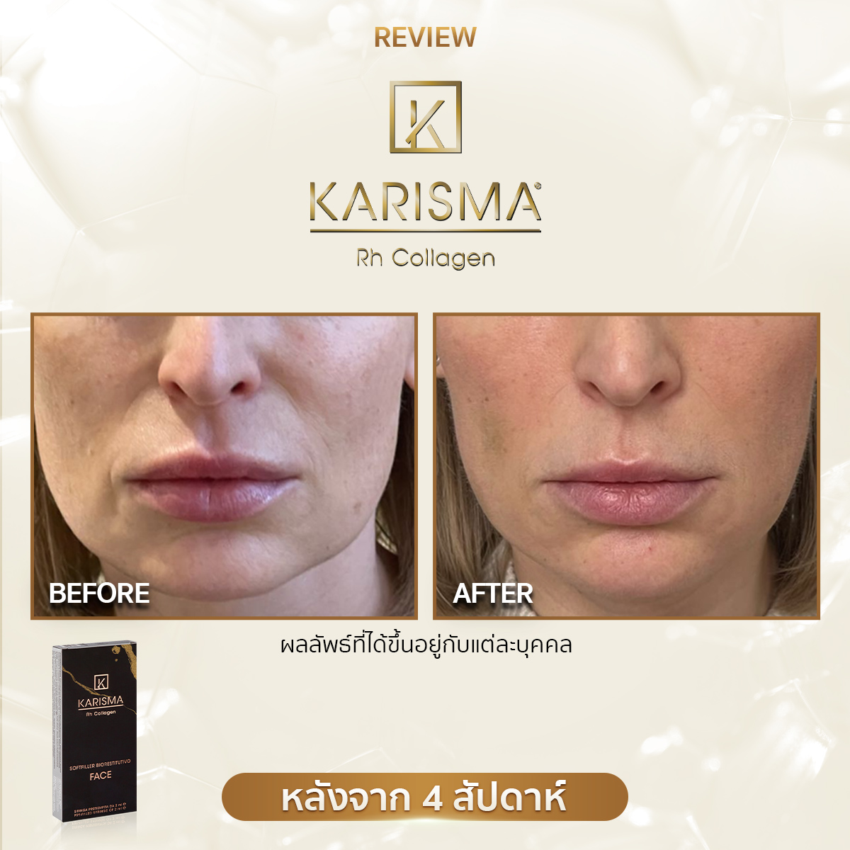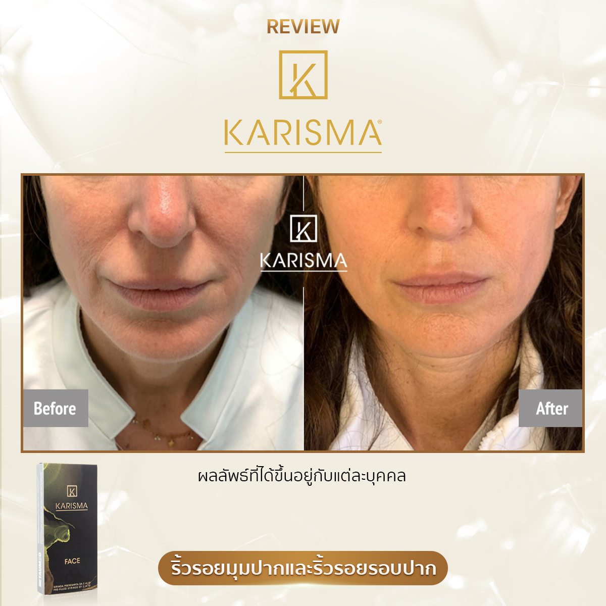 Karisma เป็นวิธีที่ปลอดภัยและมีประสิทธิภาพในการแก้ไขผิวหน้าที่ขาดคอลลาเจนทำให้ใบหน้าดูอ่อนเยาว์และเป็นธรรมชาติ ดังนั้น Karismaฟิลเลอร์จึงเป็นตัวเลือกที่แนะนำสำหรับผู้ที่ต้องการลดการสูญเสียปริมาตรและผิวหย่อนคล้อย นอกจากนี้ยังสามารถลดรอยแผลเป็นเล็กๆ บนใบหน้าได้อีกด้วย อย่างไรก็ตาม สิ่งสำคัญคือต้องทำการรักษาโดยแพทย์ที่มีประสบการณ์