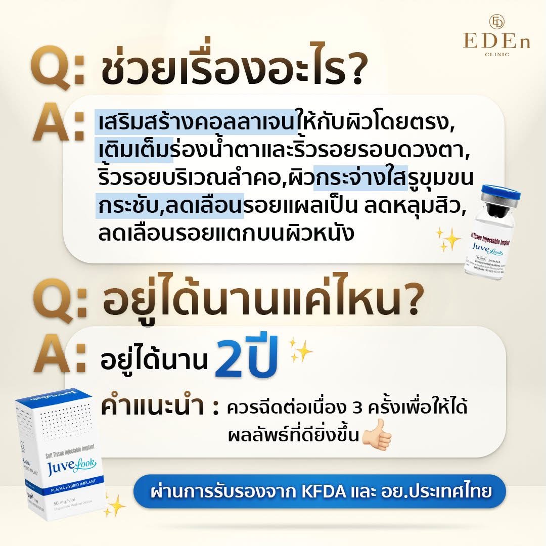 ที่อีเดนคลินิกเรามีแพทย์ ผู้เชี่ยวชาญ ที่ศึกษา ฝึกฝน และเก็บเกี่ยวประสบการณ์มาอย่างยาวนาน จึงสามารถวิเคราะห์ปัญหาบนใบหน้าได้ เป๊ะ ตรงจุด และถูกต้องที่สุด ฉีกทุกกฎของFiller เพราะทำหน้าที่ได้ เท่ากับFillerทุกอย่าง แต่เหนือกว่าตรงที่สามารถ เติมเต็ม ยกกระชับ และกระตุ้นการผลิตของคอลลาเจนใต้ผิวหนังของเราเองขึ้นมาใหม่ตามธรรมชาติ อย่างปลอดภัย ทั้งนี้ เพื่อทดแทนคอลลาเจนที่สูญเสียไปตามอายุ นับได้ว่าเป็นอีกหนึ่งทางเลือกในการช่วยฟื้นฟูโครงสร้างผิว ชั้นลึก ที่ช่วยให้ผิวยกกระชับ คืนความแข็งแรง, ความยืดหยุ่น, ฟื้นคืนคุณภาพผิวให้ดูอ่อนเยาว์ลงอีกด้วย