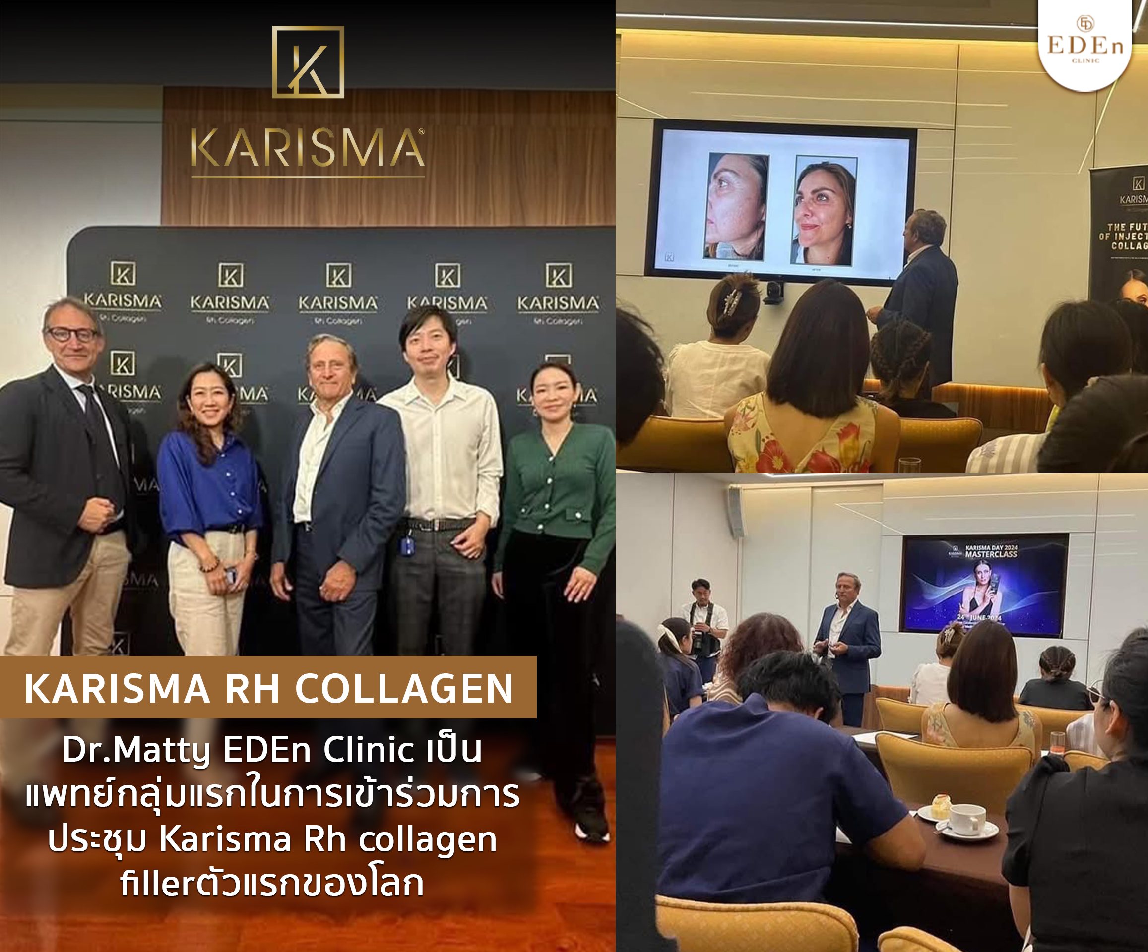 ซึ่ง Dr.Matty (EDEn Clinic) เป็นแพทย์กลุ่มแรกในการเข้าร่วมการประชุม-สัมนา Karisma Rh collagen filler ตัวแรกของโลก ที่ออกแบบสำหรับการฉีด collagen โดยตรงได้เลยไม่ต้องเสียเวลารอผลลัพธ์จากการกระตุ้นcollegenทางอ้อมอีกต่อไป Eden Clinic ที่พร้อมพัฒนาคัดสรรสิ่งที่ดีที่สุดมาให้กับคนไข้ เพื่อผลลัพธ์ที่เป๊ะที่สุด