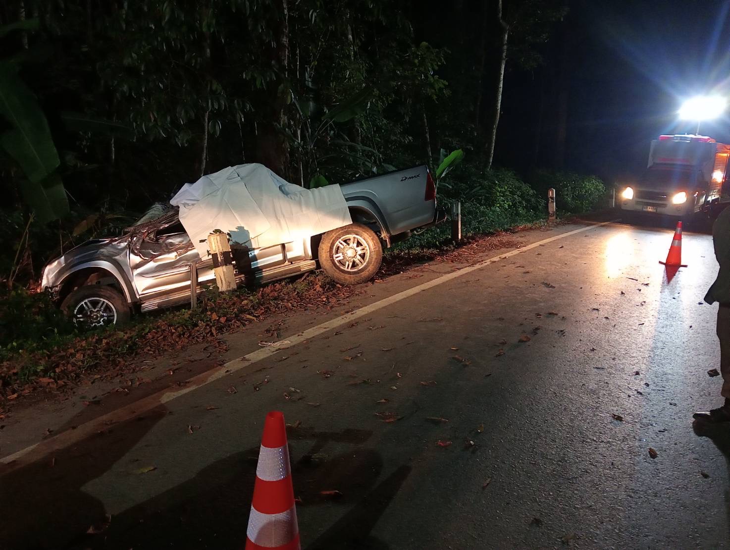 กระบะลงดอยอินทนนท์ เสียหลักแหกโค้งชนต้นไม้ ดับคารถ เหตุเกิด กม.29-30 ขาลงดอย คาดระบบเบรคไม่พร้อมใช้งาน