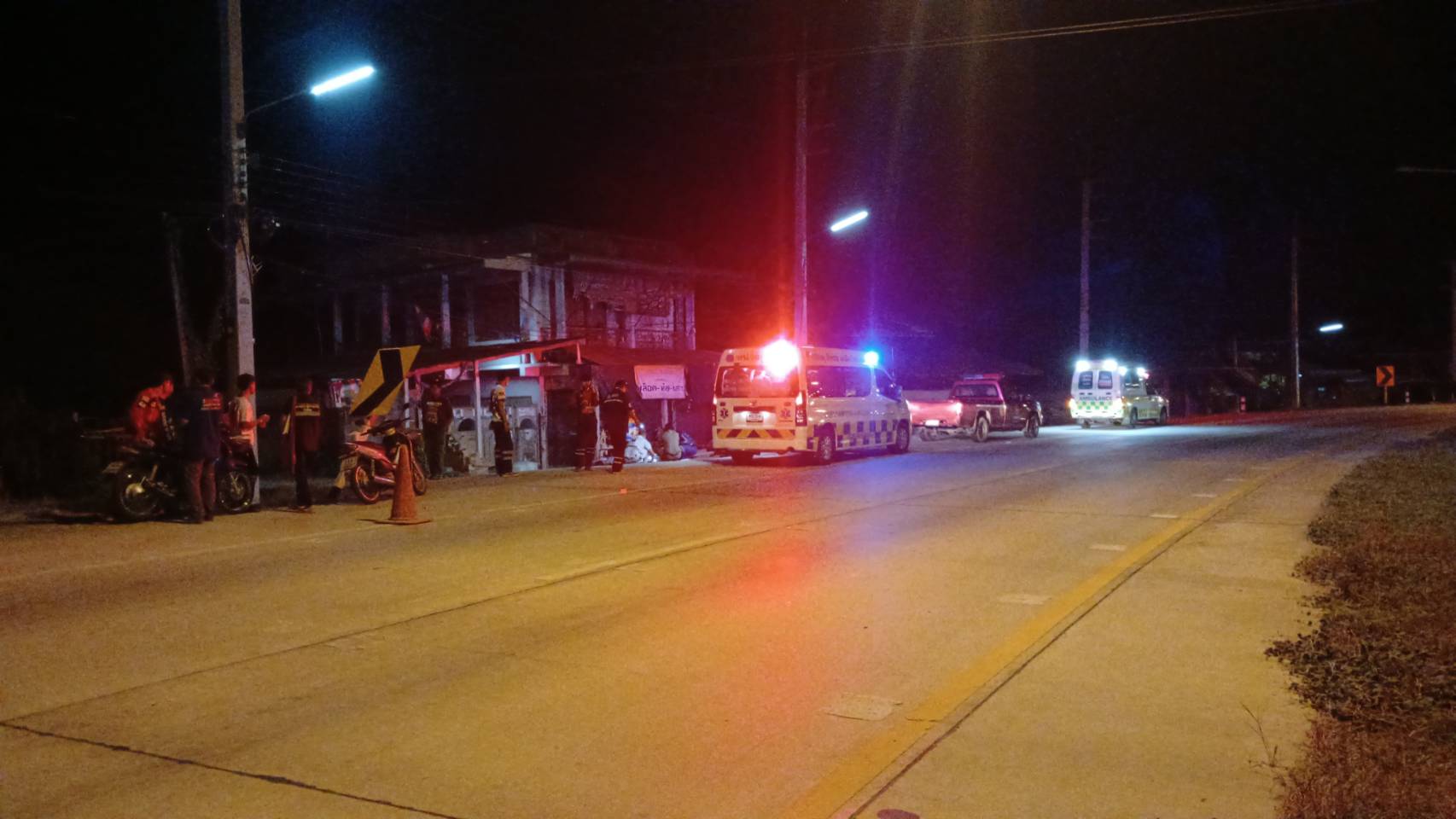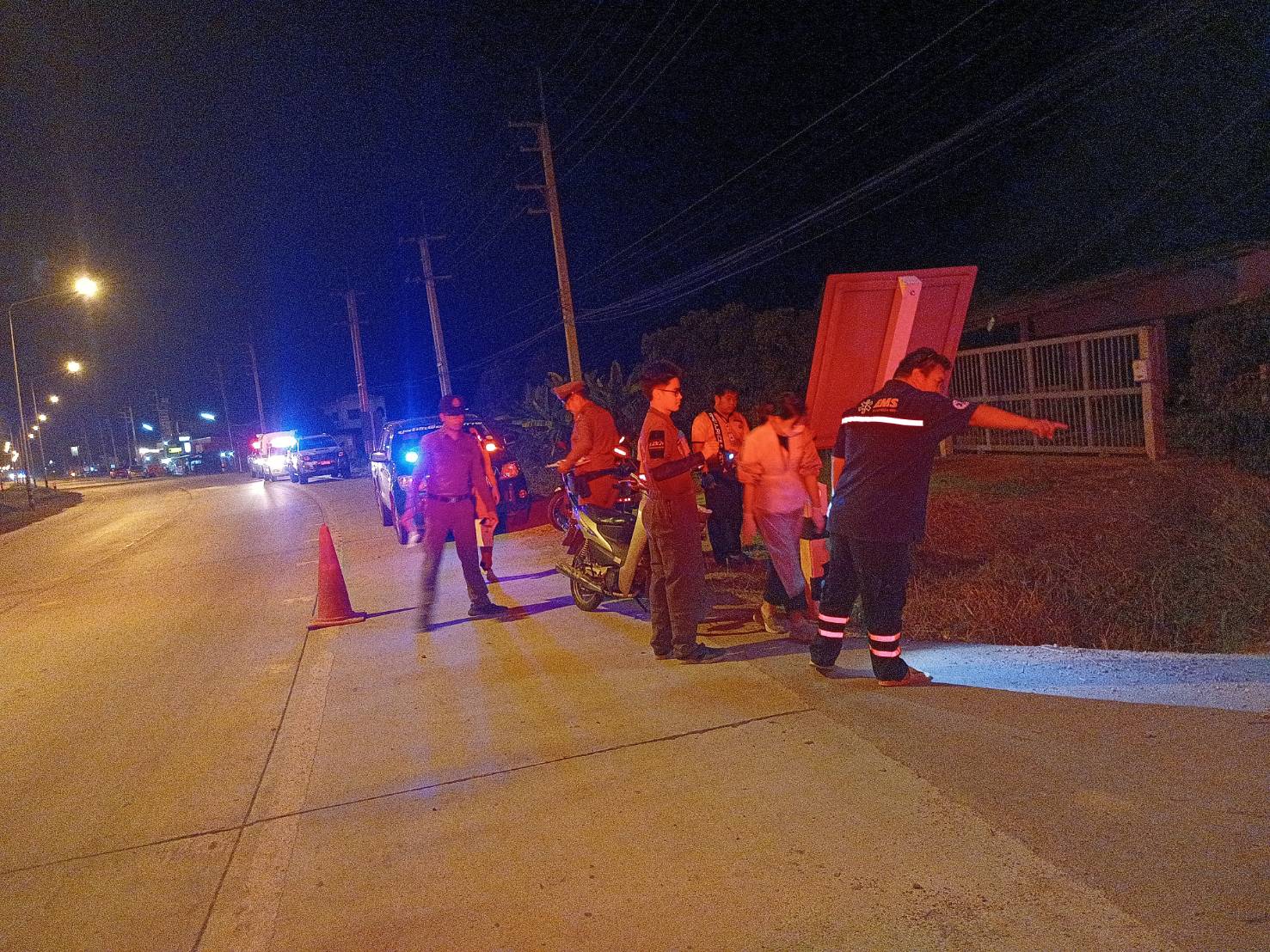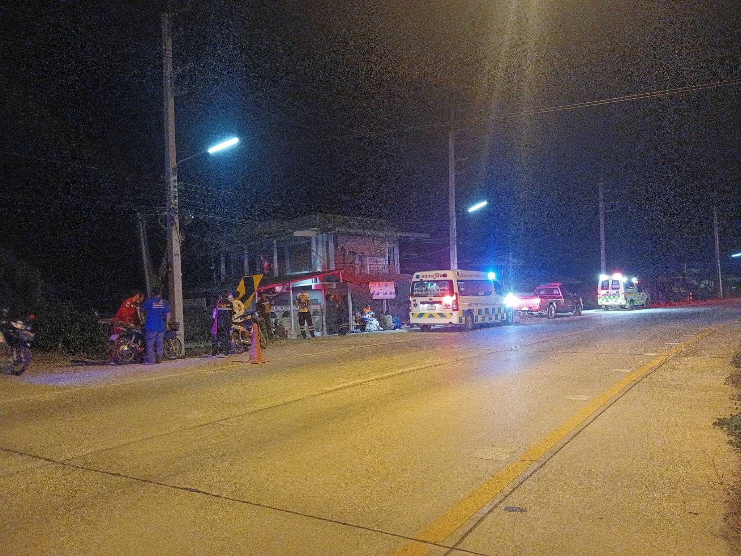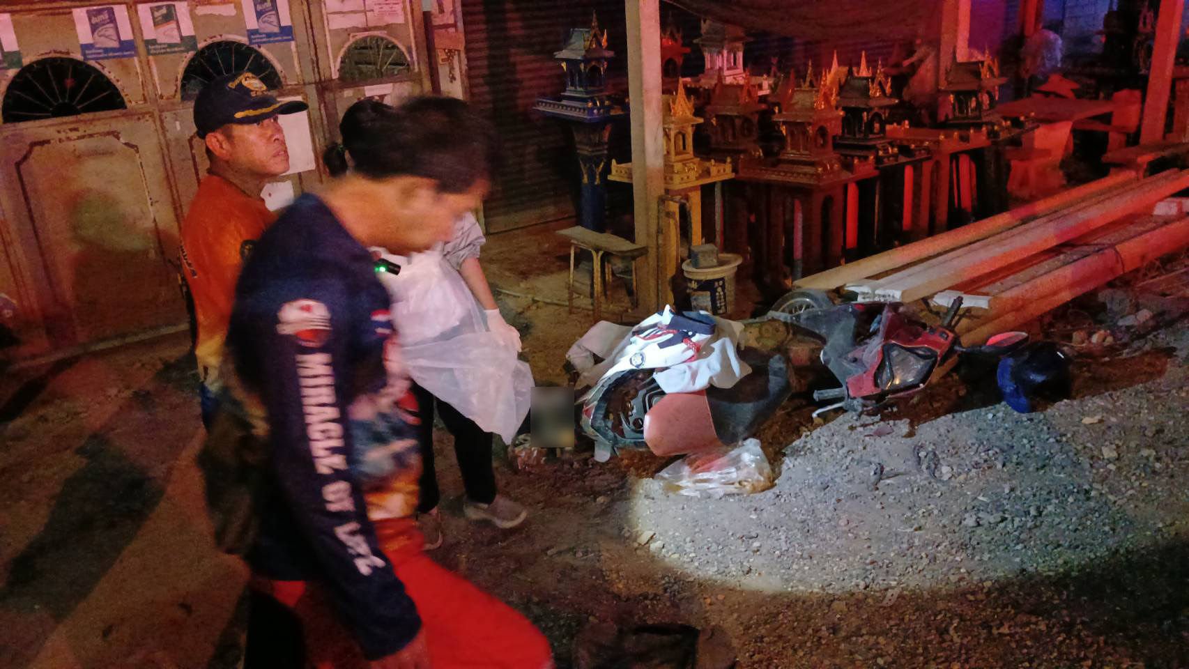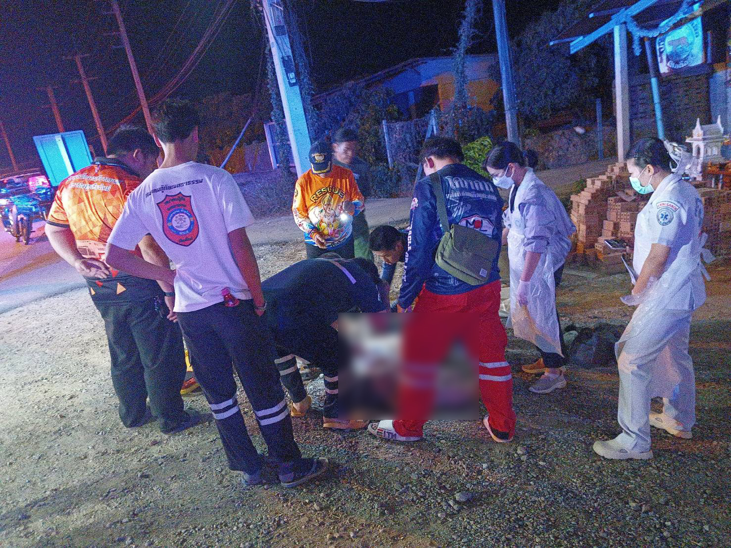 ในที่เกิดเหตุพบชาย 1 รายนอนคว่ำหน้าเสียชีวิตบริเวณหน้าร้านขายวัสดุก่อสร้างส่วนรถนั้นชนอยู่บริเวณเสาหน้าร้านห่างจากศพประมาณ 10 เมตร ตรวจสอบแล้วไม่มีชีพจรจึงแจ้งเจ้าหน้าที่แพทย์เวรโรงพยาบาลสันทรายมาประเมินที่เกิดเหตุเจ้าหน้าที่ทำการตรวจสอบพบเสียชีวิตคาที่ทนพิษบาดแผลไม่ไหวเสียชีวิตในที่เกิดเหตุ
