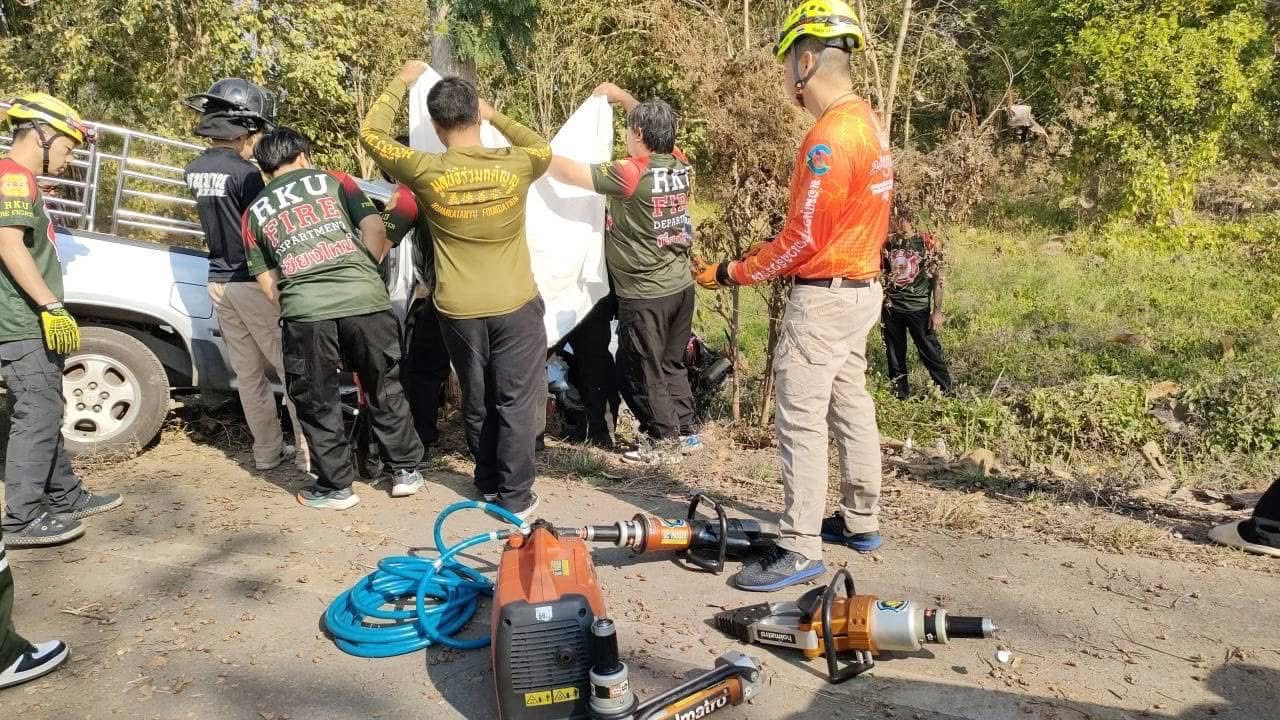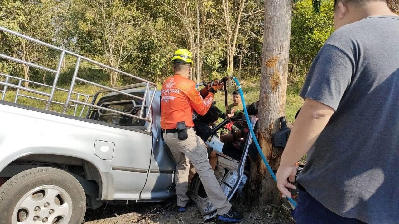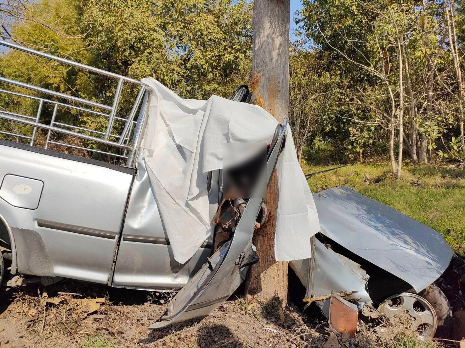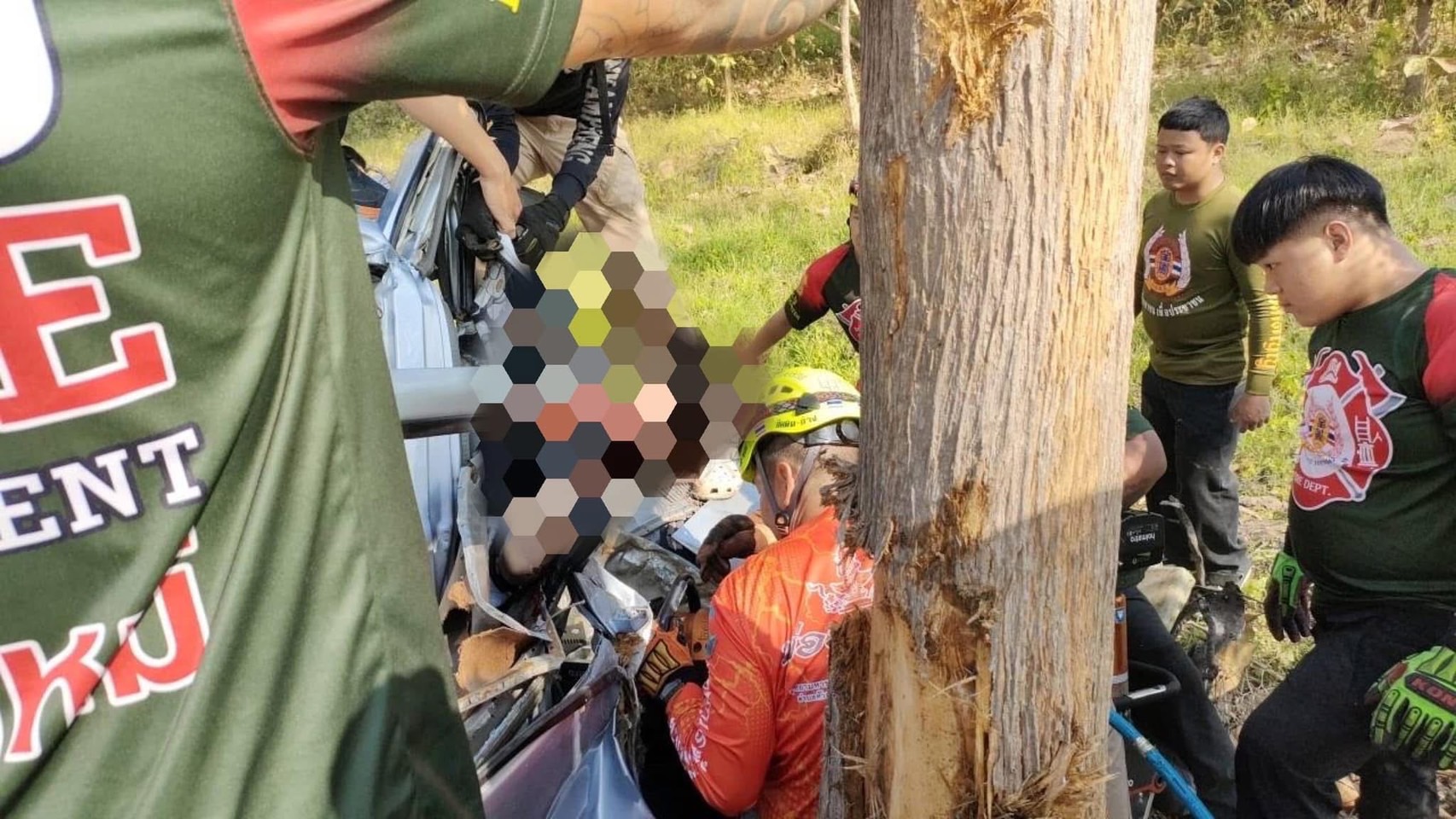 เบื้องต้นคาดผู้เสียชีวิตอาจหลับในเป็นเหตุให้รถเสียหลักพุ่งชนน้นไม้ข้าวถนนอย่างแรง ร่างถูกอัดก็อปปี้เสียชีวิตคาพวงมาลัยดังกล่าว