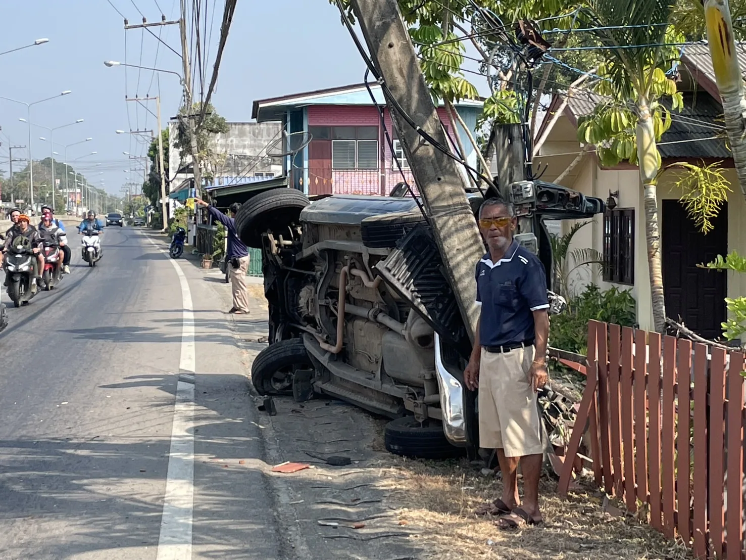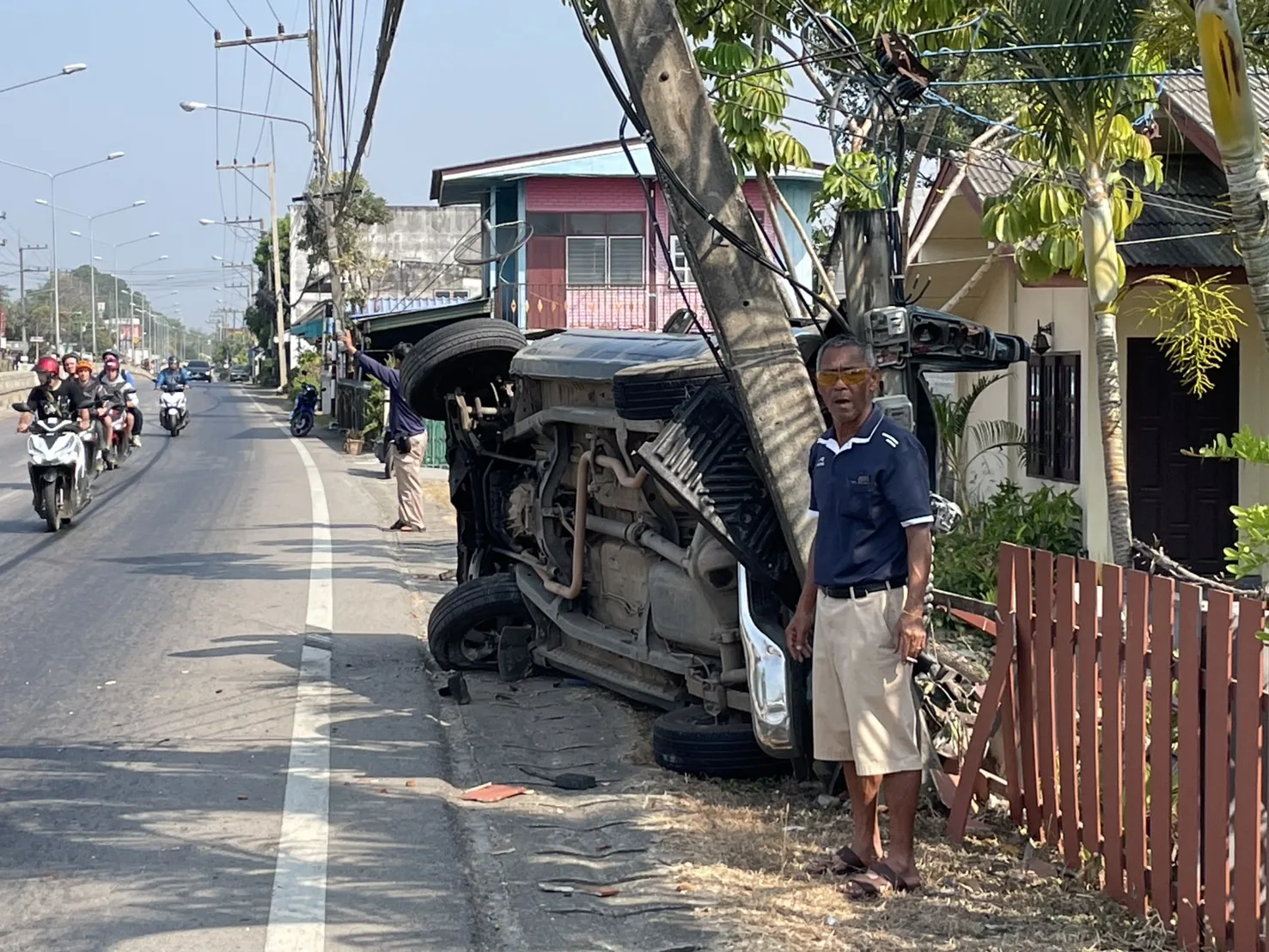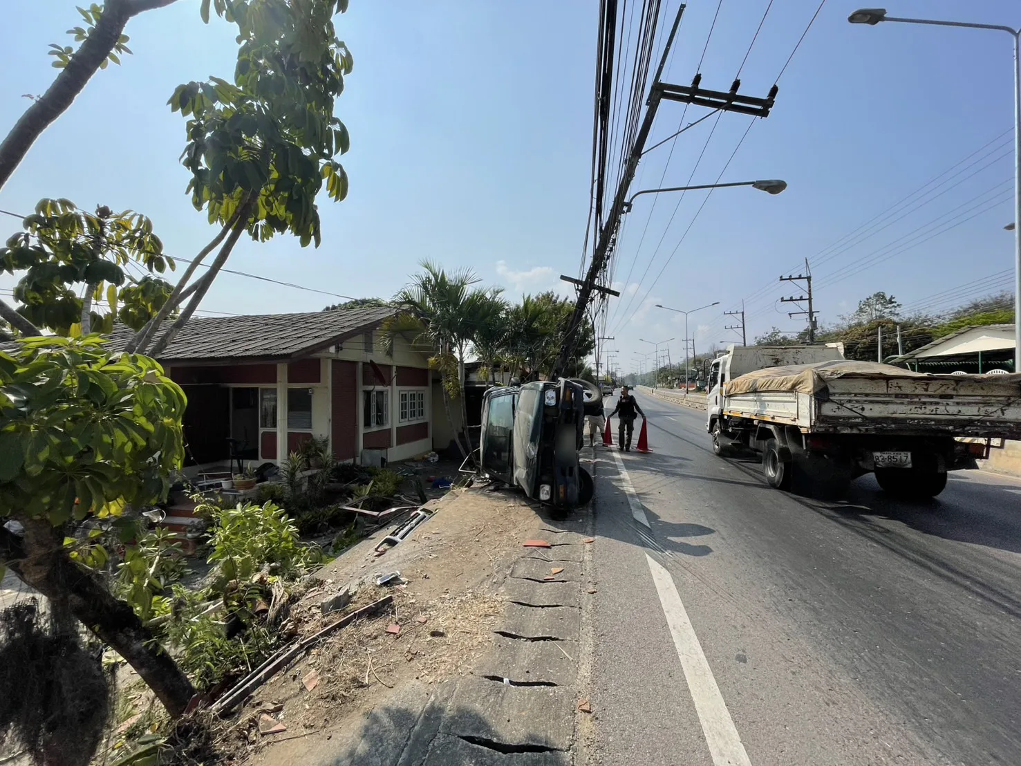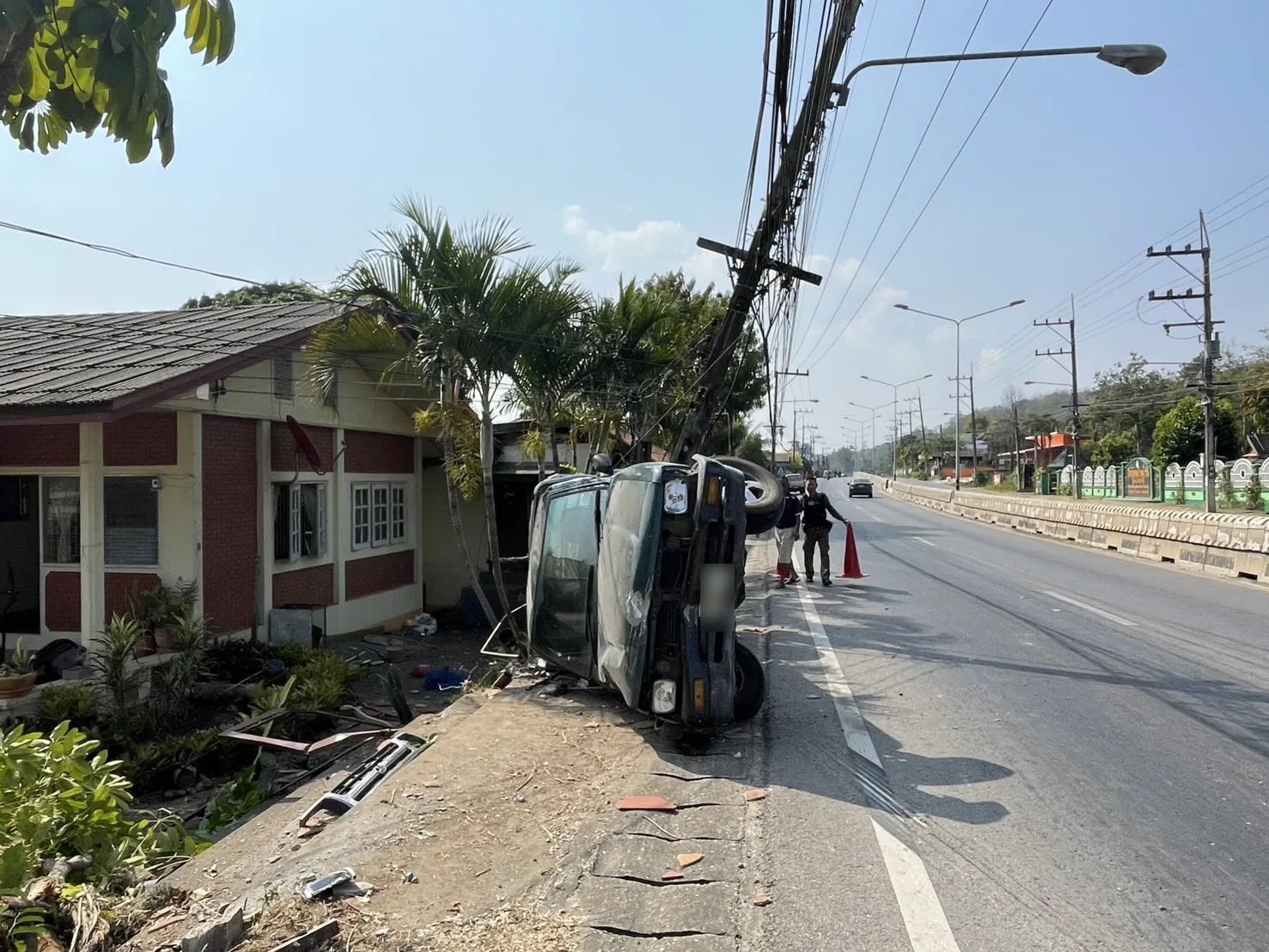 (เชียงใหม่) – เกิดอุบัติเหตุรถกระบะสี่ล้อพุ่งชนเสาไฟฟ้าบริเวณถนนแม่ริม-เชียงใหม่-ฝาง ฝั่งตรงข้ามกับโรงเรียนบ้านน้ำริน ส่งผลให้เสาไฟฟ้าหักลงมากีดขวางถนน ขณะที่บริเวณโดยรอบมีคราบน้ำมัน เศษวัสดุจากตัวรถ และรั้วบ้านของประชาชนได้รับความเสียหาย