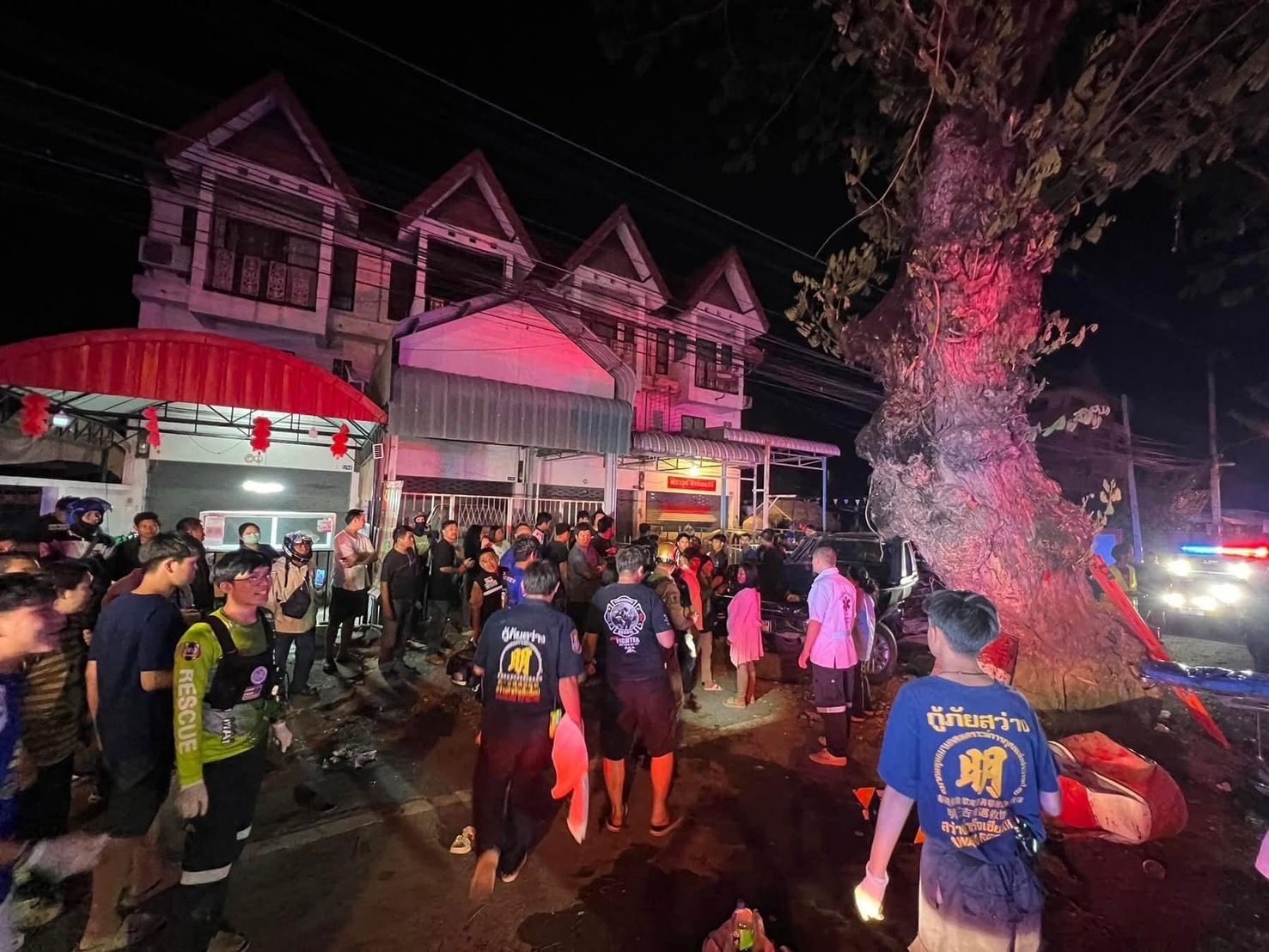 เมื่อคืนวันที่ 9 มีนาคม 2568 เวลา 21.44 น. ทาง พ.ต.อ.ณัฐพล จันมะโน ผกก.สภ.สันกำแพง จ.เชียงใหม่ พร้อมด้วย พ.ต.ท.พิชิต เสคา สว.(สอบสวน) สภ.สันกำแพง ได้รับแจ้งเหตุว่ามีอุบัติเหตุรถยนต์เฉียวชนกับต้นไม้จามจุรี(ฉำฉา)ข้างถนนสายวัฒนธรรมสันกำแพง-เชียงใหม่ (สายเก่า) ปากทางซอยรวมพร ม.6 ต.สันกำแพง อ.สันกำแพง พร้อมกู้ชีพทั่วเมืองเชียงใหม่หลายแห่ง ได้รวมกันช่วยเหลือผู้บาดเจ็บนำส่ง รพ. มีผู้บาดเจ็บหลายราย และผู้เสียชีวิต จึงรุดไปสอบสวนที่เกิดเหตุทันที