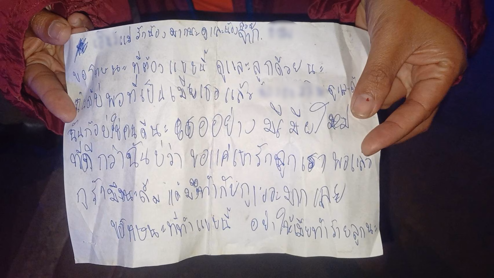 โดยข้อความดังกล่าวในจดหมายกระดาษสีขาวที่หญิงสาวเขียนระบุเรื่องการตัดพ้อเรื่องชีวิตส่วนตัวเเละเรื่องครอบครัวหลายๆอย่าง