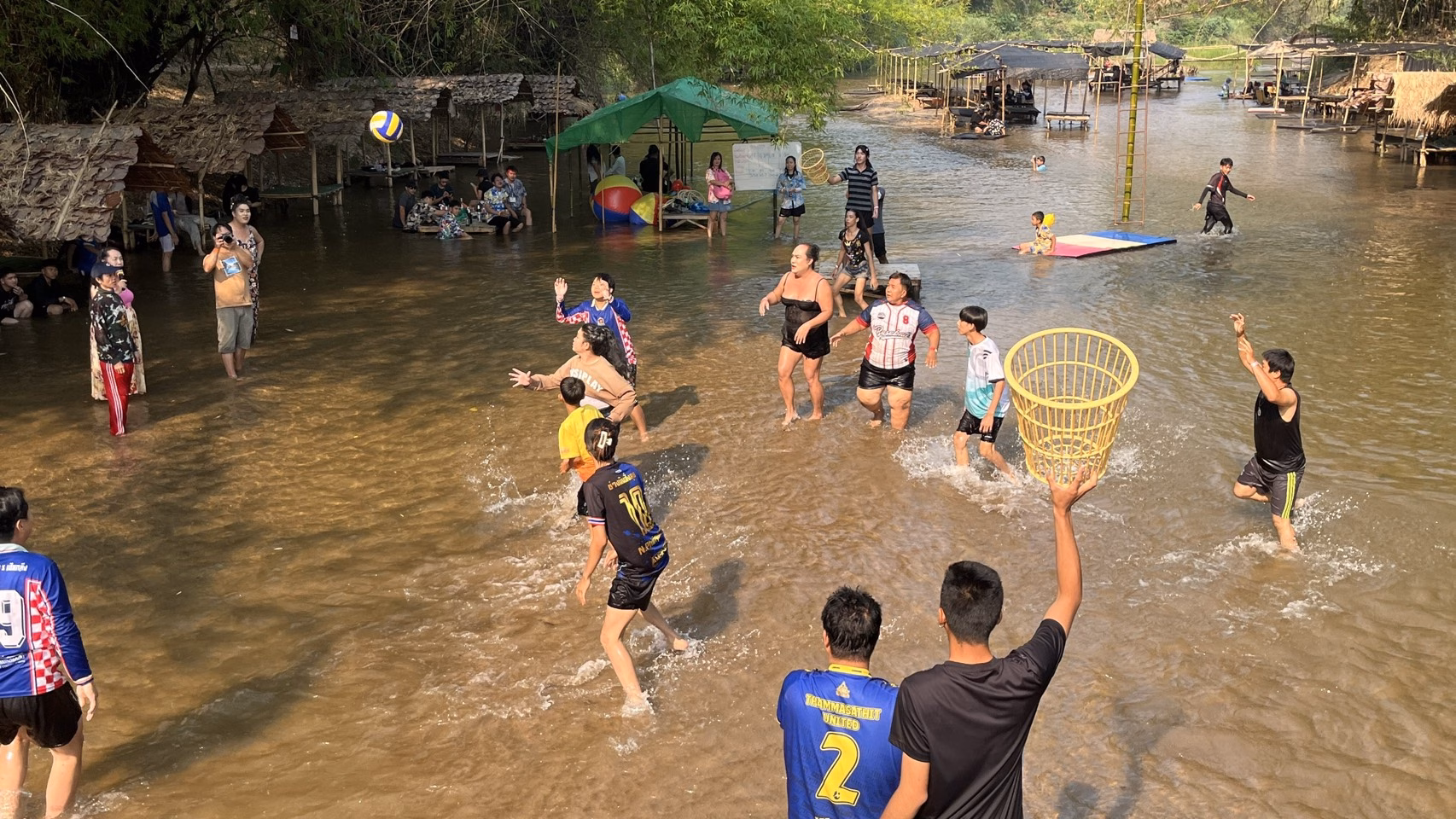 เมื่อวันที่ 10 เม.ย.69 ที่บริเวณหาดทราย กลางลำน้ำแม่ขาน บ้านห้วยโท้ง ตำบลน้ำบ่อหลวง อำเภอสันป่าตอง จังหวัดเชียงใหม่ กลุ่มวีพาวเวอร์ อาสาพัฒนาชุมชนและคุ้มครองสิทธิ หรือกลุ่มหลากหลายทางเพศ ร่วมกับสาธารณสุขอำเภอ กำนันผู้ใหญ่บ้าน องค์กรปกครองส่วนท้องถิ่น นำเยาวชนและชาวบ้านในพื้นที่ ร่วมแข่งขันกีฬาพื้นบ้าน กับกลุ่มLGBTQ หรือ กลุ่มหลากหลายทางเพศ แบ่งเป็นทั้งหมด 4 สี เขียว ชมพู แดง น้ำเงิน เริ่มด้วยการประกวดธิดาดวงดี เดินบนแคทวอล์คสะพานไม้ไผ่ ข้ามลำน้ำแม่ขาน และยังมีการแข่งทั้งกีฬาวอลเลย์บอล แชร์บอล และมวยดังจากแต่ละสี ใช้ผ้าปิดตานักกีฬา ใช้ลูกโป่งแทนนวมฟาดใส่กัน แต่ละชนิดกีฬา เล่นกันอย่างสนุกสนาน สร้างเสียงหัวเราะและรอยยิ้ม