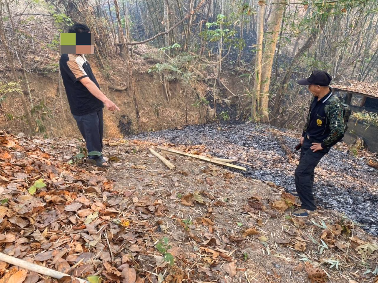 เมื่อไปถึงบริเวณถนนหมายเลข 1088 พื้นที่บ้านแม่นาจรเหนือ หมู่ที่ 16 ตำบลแม่นาจร เจ้าหน้าพบ ชาย 3 คน อยู่ใกล้บริเวณที่เกิดไฟลุกไหม้ จึงได้เรียกตัวชายทั้ง 3 คน มาสอบถาม โดยทราบชื่อภายหลังว่า 1. นายประเสริฐ อายุ 67 ปี 2.นายเดือน(ไม่มีนามสกุล) อายุ 24ปี และนายอ่องจิ่ง(ไม่มีนามสกุล) อายุ 20 ปี