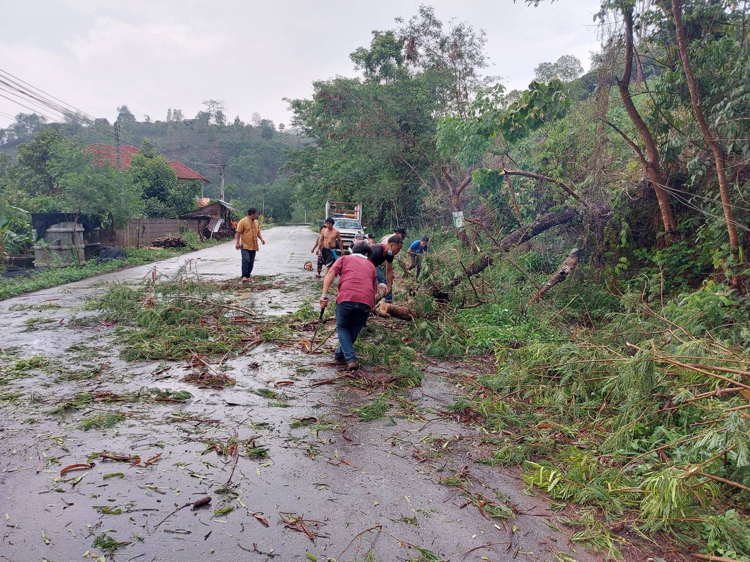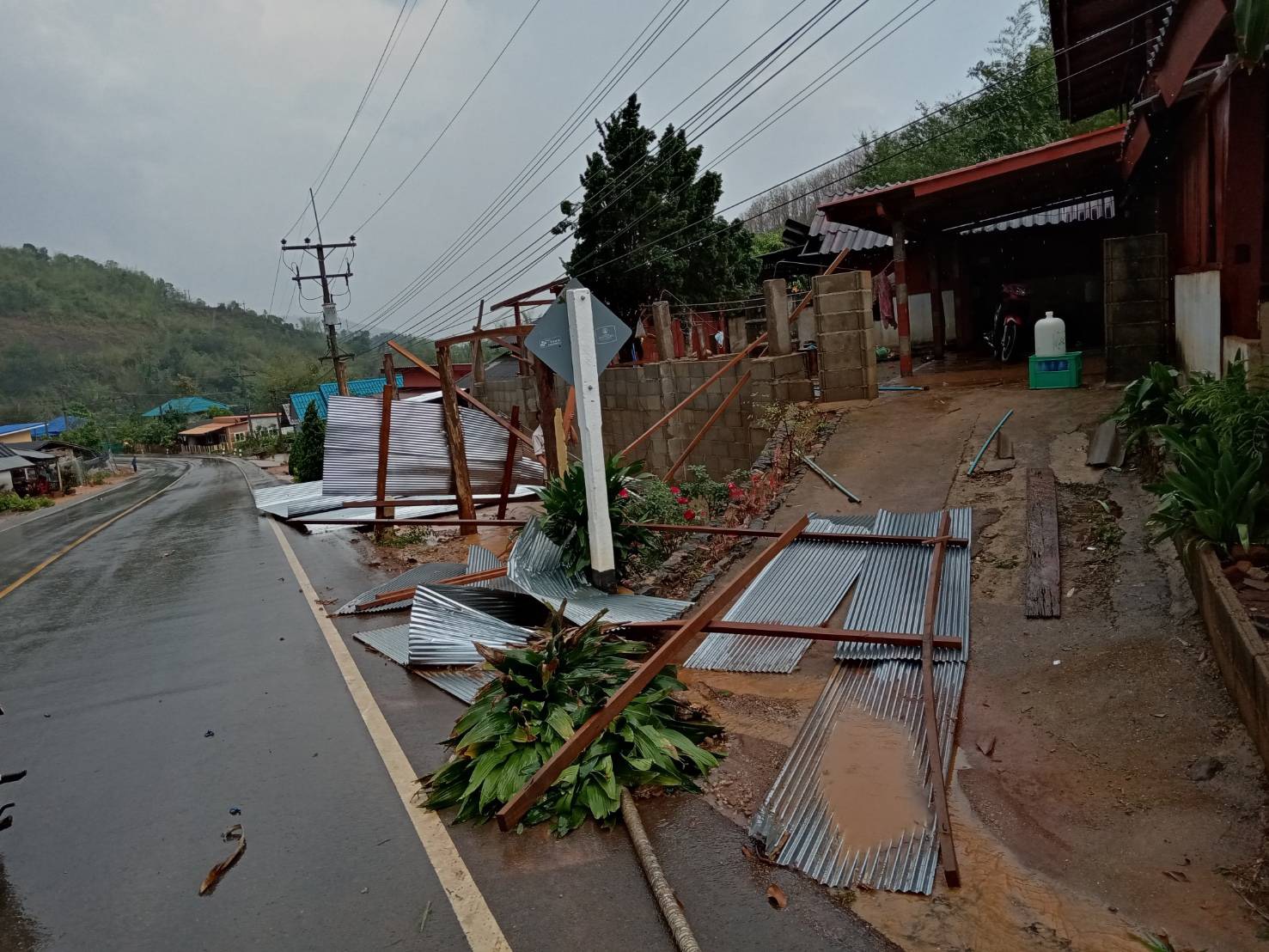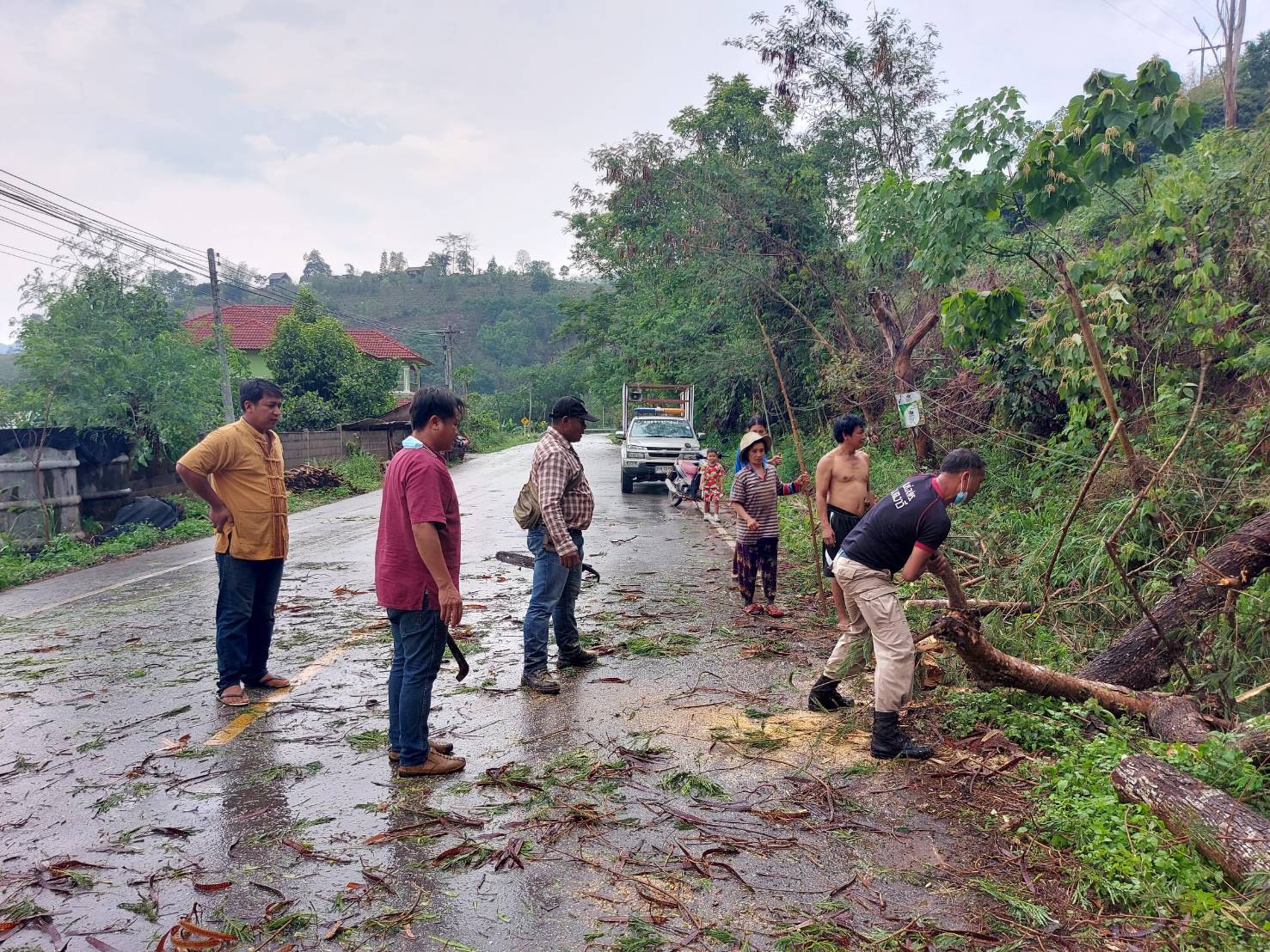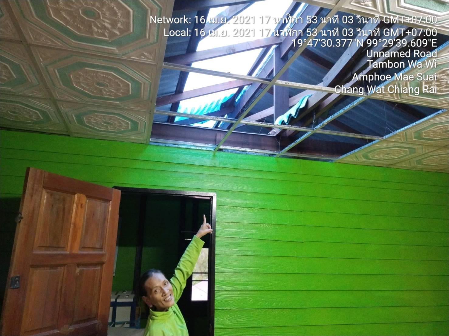 วันที่ 17 เม.ย.64 นายคฑาสิทธิ์ เนื่องหล้า นอภ.แม่สรวย จ.เชียงราย ได้สั่งการให้ ปภ. อปท. ผู้นำชุมชน ลงพื้นที่ สำรวจบ้านห้วยปู หมู่ 6 ต.วาวี หลังจากมี ฝนตกหนัก ลมกระโชกแรง และมีลูกเห็บตกลง เมื่อช่วงเย็นวันที่ 16 เม.ย.ที่ผ่านมา ทำให้บ้านเรือนประชาชนในพื้นที่ได้รับความเสียหายหลายหลัง นอกจากนี้ พบว่ามีต้นไม้หักโค่น ปิดเส้นทางจราจร หลังจากเหตุการณ์สงบ ทางเจ้าหน้าที่ ได้เข้าพื้นที่เคลื่อนย้ายต้นไม้หักโค่นกีดขวางทางจราจร รวมทั้งสำรวจความเสียหายบ้านเรือนประชาชน และให้การช่วยเหลือการดำรงชีพเบื้องต้น