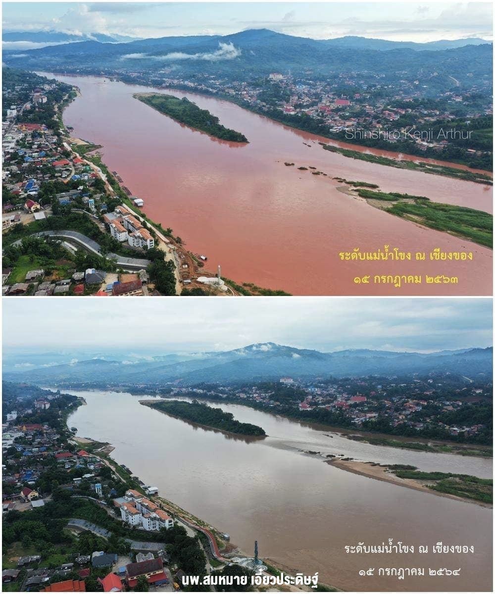 เมื่อวันที่ 16 กรกฎาคม ผู้สื่อข่าวรายงานว่า ชุมชนริมแม่น้ำโขงและผู้ที่สนใจสถานการณ์แม่น้ำโขง ต่างวิพากษ์วิจารณ์การเปลี่ยนแปลงระดับแม่น้ำโขง ภายหลังจากมีผู้ใช้นามว่า Shinshiro Kenji Arthur(นพ.สมหมาย เอี๋ยวประดิษฐ์) ได้โพสต์ภาพทางเฟสบุคถึงสภาพของแม่น้ำโขง บริเวณอำเภอเชียงของ จ.เชียงราย โดยเปรียบเทียบปริมาณน้ำของวันที่ 15 กรกฎาคม 2563 และ วันที่ 15 กรกฎาคม 2564 ซึ่งมีความแตกต่างกันอย่างสิ้นเชิง ทั้งทางด้านสีของน้ำ ปริมาณน้ำและสภาพการเปลี่ยนแปลงของระบบนิเวศในช่วงเวลานั้น
