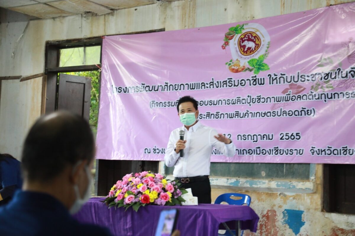 อบจ.เชียงราย มุ่งเน้นและส่งเสริมการทำเกษตรแบบปลอดภัย เพื่อให้ได้ผลผลิตที่ดี ส่งออกสู่ตลาดโลก จึงได้มีแนวทางปรับเปลี่ยนทัศนคติให้แก่เกษตรกร โดยการส่งเสริมการผลิตปุ๋ยชีวภาพเพื่อลดต้นทุนการผลิต เพิ่มประสิทธิภาพสินค้าเกษตรปลอดภัย อีกทั้งการนำเอาวัสดุเหลือใช้ในการเกษตรมาแปรรูปเป็นปุ๋ยชีวภาพ เพื่อลดปริมาณขยะทางการเกษตรอันจะก่อให้เกิดมลพิษทางอากาศได้อีกทางหนึ่ง