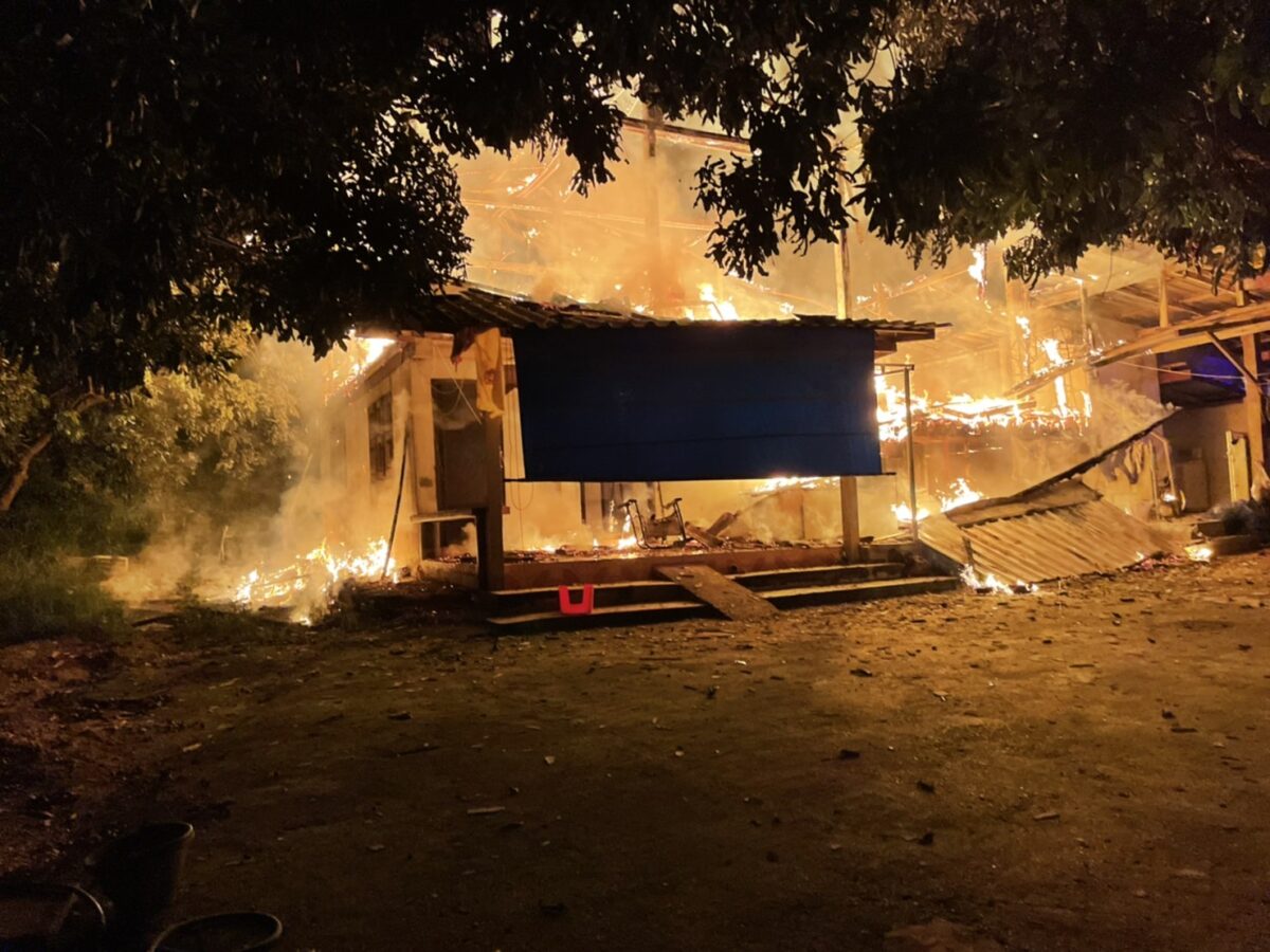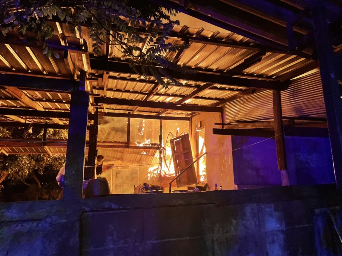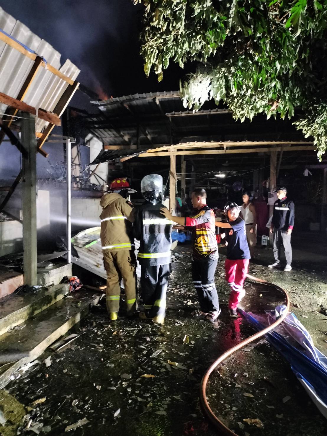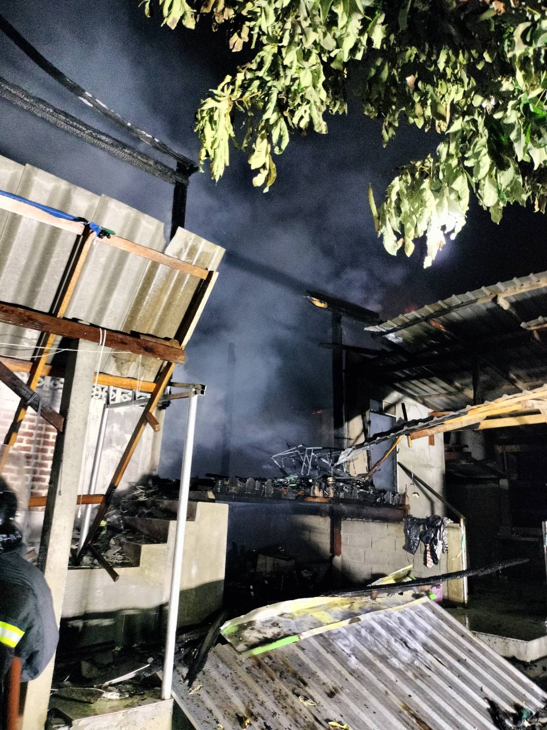 ไฟลุกไหม้บ้านวอดทั้งหลังโชคดีช่วยเหลือพ่อเฒ่าป่วยติดเตียงออกมาได้ทัน
