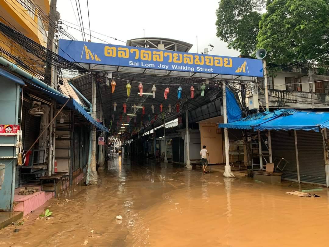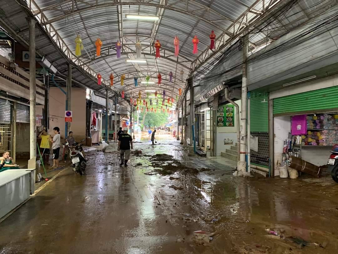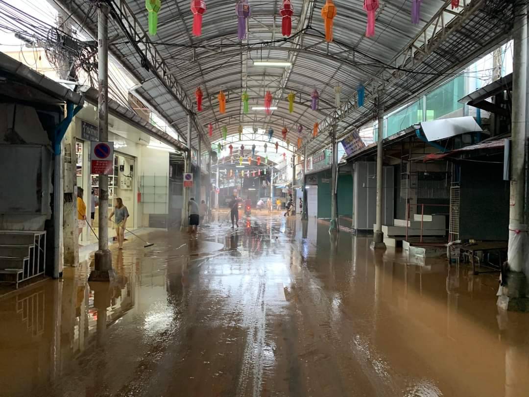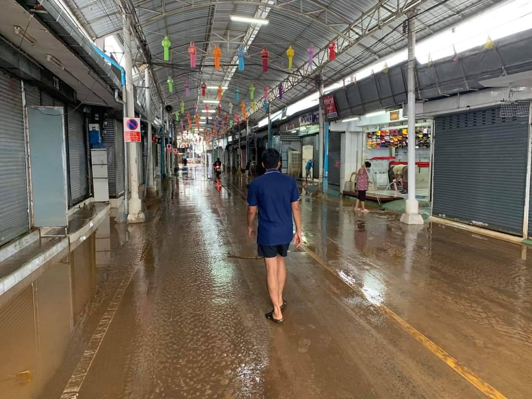 ฝนตกหนัก น้ำสายระบายไม่ทัน เอ่อท่วมตลาดสายลมจอยกลางดึก ล่าสุดน้ำลดแต่ยังต้องเฝ้าระวัง