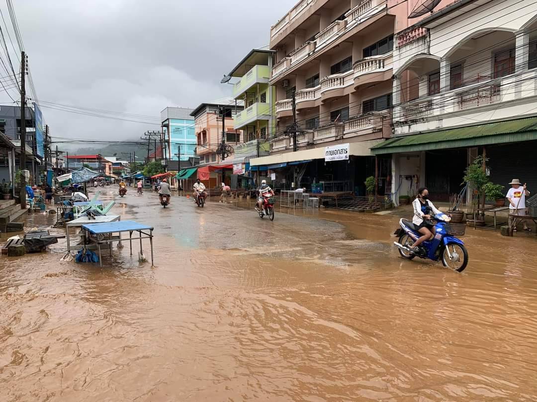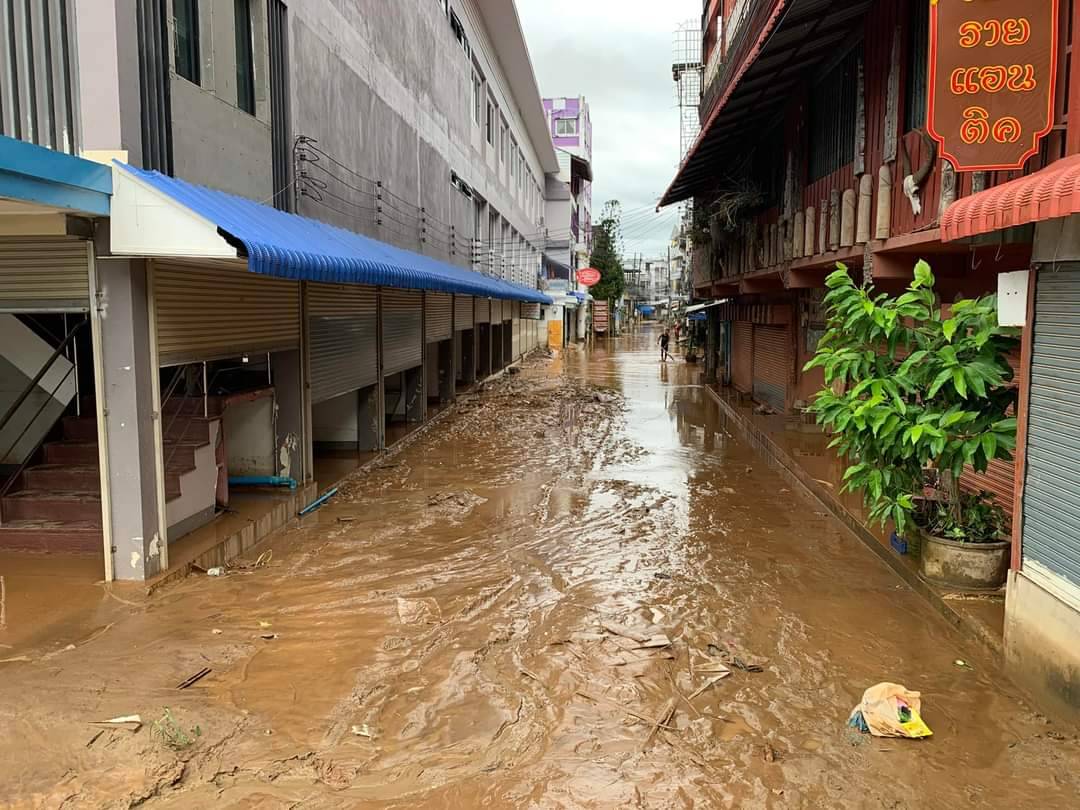 วันที่ 11 ก.ย. 65 ผู้สื่อข่าวรายงานว่า เมื่อเวลา 01.30 น. ได้เกิดฝนตกหนักในพื้นที่ อ.แม่สาย จ.เชียงราย โดยฝนได้กระหน่ำตกลงมาตลอดทั้งคืน ส่งผลทำให้ปริมาณน้ำในลำน้ำสาย ชายแดนไทย-เมียนมา ด้าน อ.แม่สาย ติดกับ จ.ท่าขี้เหล็ก เพิ่มระดับมากขึ้น และได้เอ่อล้นทะลักเข้าท่วมพื้นที่ชายแดนทั้ง 2 ฝั่ง ตั้งแต่เขตเทศบาล ต.แม่สาย อ.แม่สาย และฝั่ง จ.ท่าขี้เหล็ก ประเทศเมียนมา ตลอดแนว โดยมวลน้ำได้พ้นระดับวิกฤติที่สูงกว่าระดับ 4.90 เมตรแล้ว และปริ่มขอบสะพาน ทำให้น้ำทะลักเข้าท่วมชุมชนต่างๆ ที่อยู่ริมฝั่งแม่น้ำสายตั้งแต่จุดผ่อนปรนหัวฝาย ชุมชนเกาะทราย และตลาดสายลมจอย ฯลฯ ซึ่งการที่น้ำได้ทะลักเข้าท่วมอย่างรวดเร็วในช่วงกลางดึกทำให้ประชาชนและร้านค้าในตลาดสายลมจอย ต่างพากันแตกตื่นลุกขึ้นมาขนย้ายสิ่งของเครื่องใช้ไว้บนที่สูงอย่างเร่งด่วน จากเหตุการณ์น้ำท่วมดังกล่าวถือว่าเป็นการท่วมครั้งที่ 2 ของเดือน ซึ่งเมื่อวันที่ 12 ส.ค.ที่ผ่านมา ก็เกิดน้ำท่วมครั้งใหญ่ในพื้นที่อำเภอแม่สายมาแล้ว