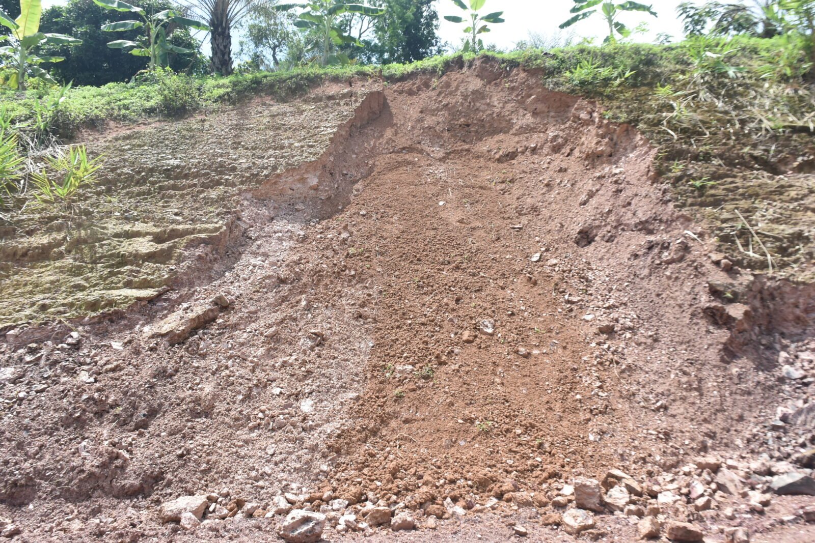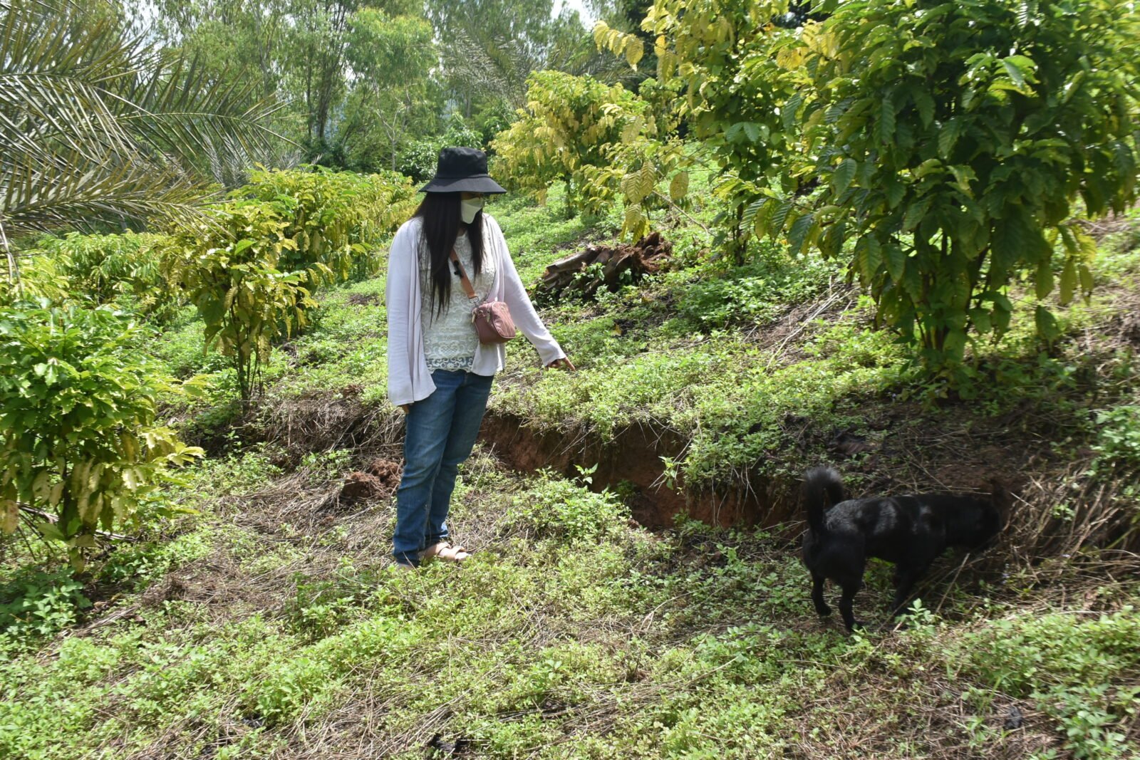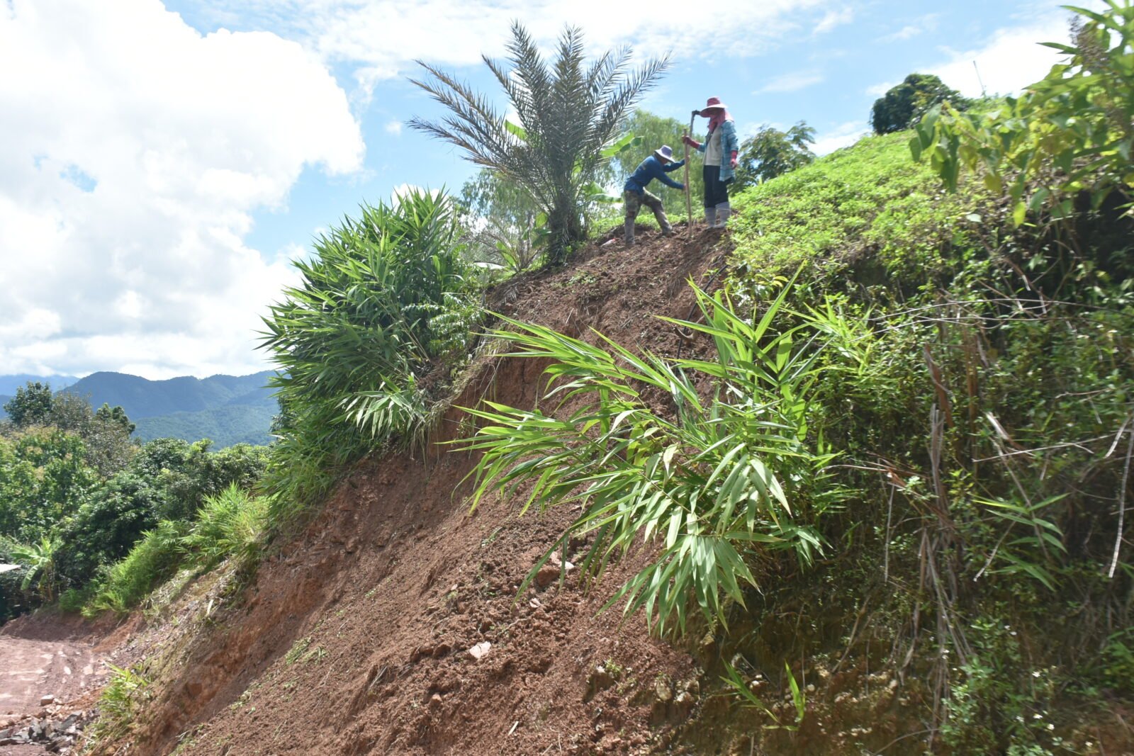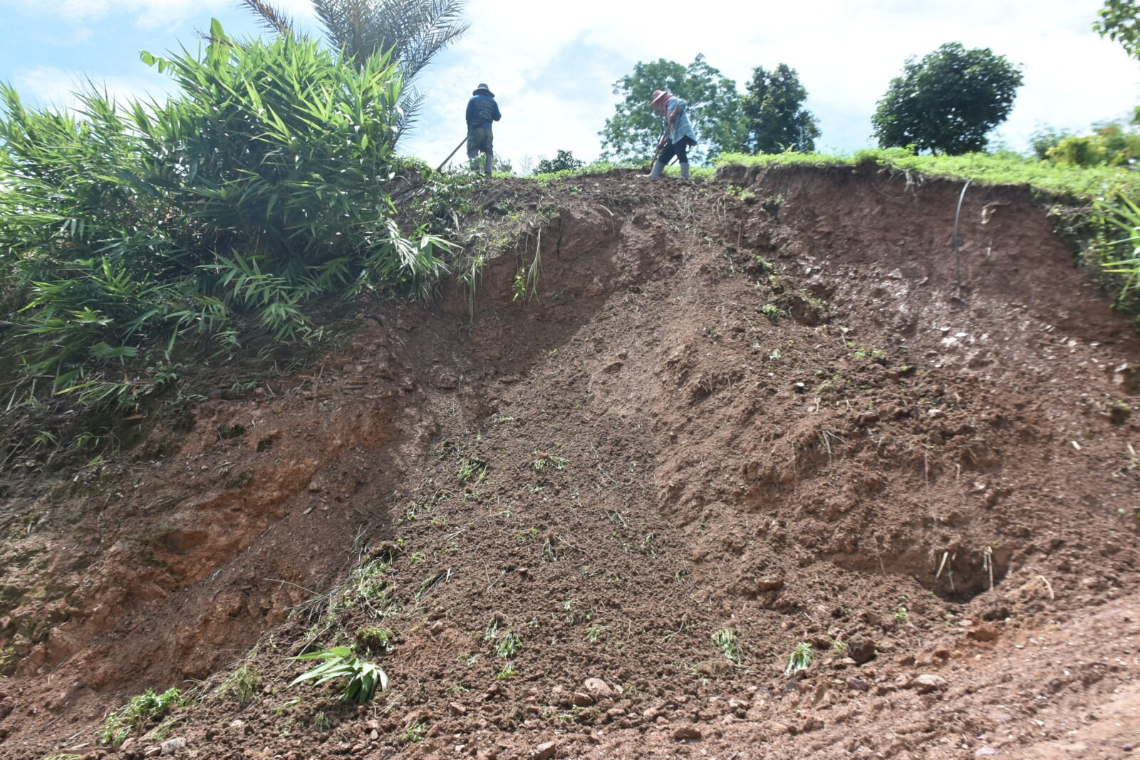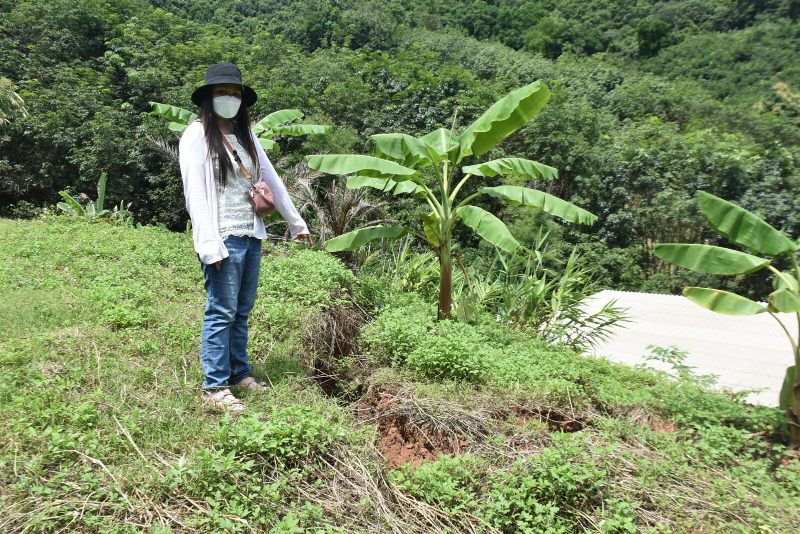 น.ส.นันทนา ได้พาผู้สื่อข่าวไปดูบนภูเขาซึ่งมีการสไลด์ของดิน โดยด้านบนของภูเขาลูกดังกล่าวได้มีการปลูกกาแฟ พบว่าเกิดการทรุดและแยกตัวของดินบนภูเขาเป็นแนวยาวหลายจุด บางจุดเป็นการทรุดตัวของดินเป็นทางยาวหลายสิบเมตร บางจุดก็เป็นทางแยกเป็นหลุมลึกประมาณ 1 เมตร ลักษณะพร้อมจะถล่มลงไปที่พื้นดินข้างล่างตลอดเวลา สร้างความหวาดวิตกให้กับผู้อยู่อาศัยอยู่บริเวณดังกล่าวเป็นอย่างมาก