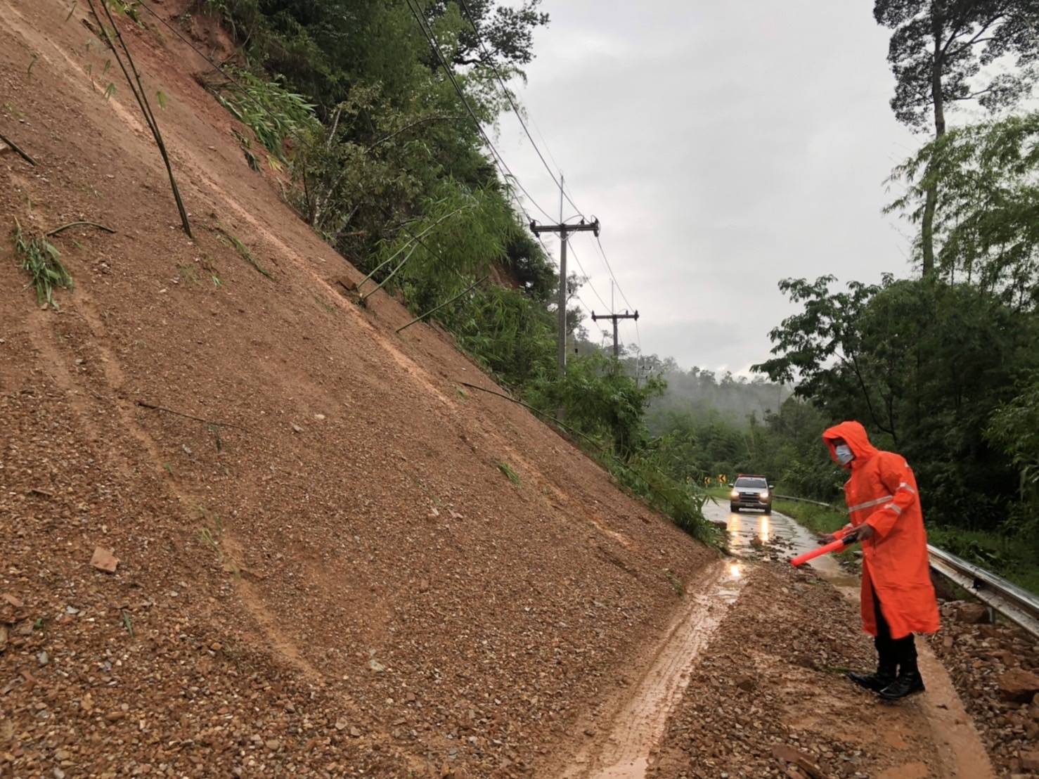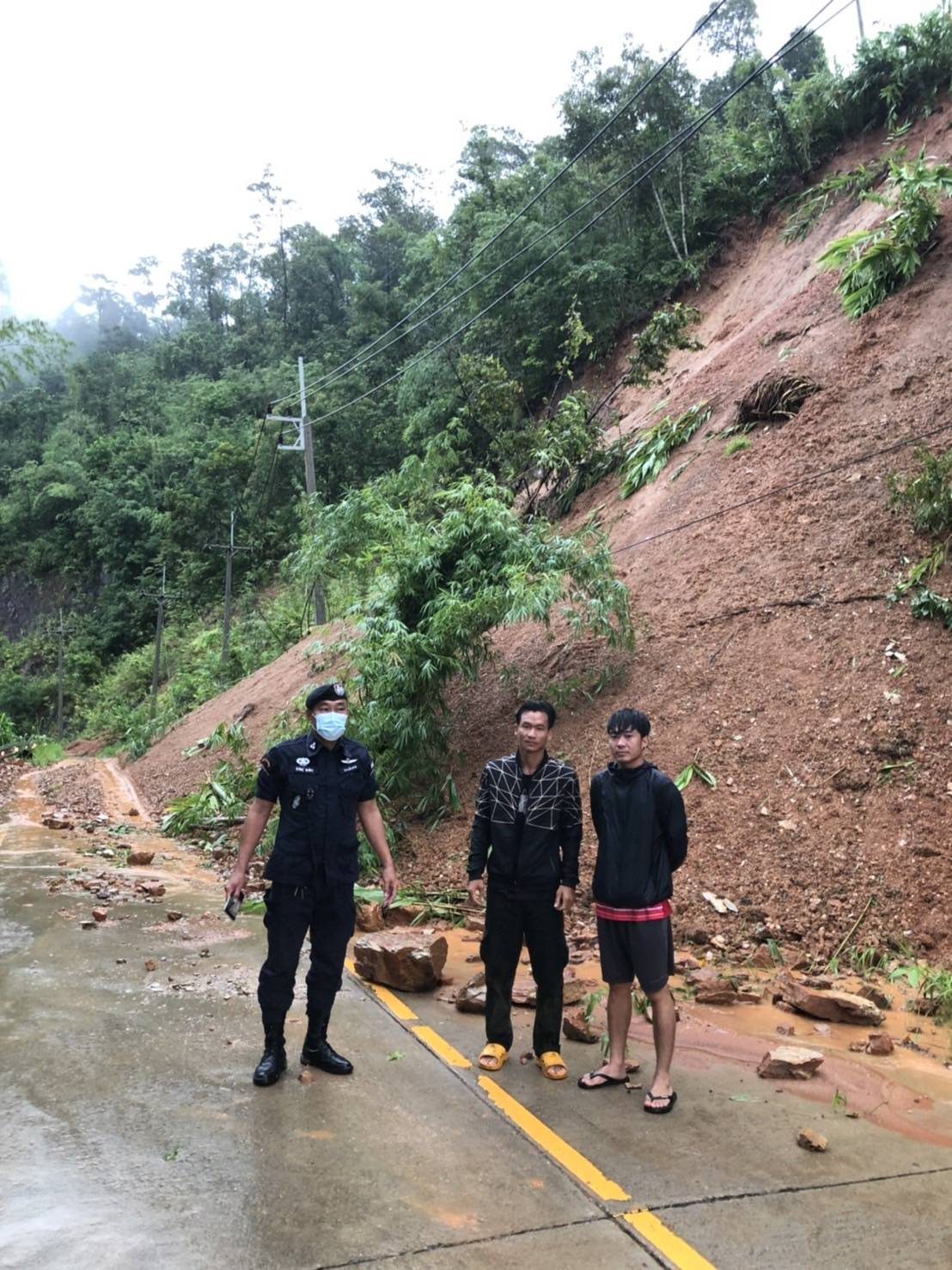 เมื่อวันที่ 4 ต.ค.2565 โดยการนำของ พ.ต.อ.โสภณ ม่วงเฟื่อง ผกก.สภ.แม่สรวย พร้อมด้วย ข้าราชการตำรวจจิตอาสา จราจร สภ.แม่สรวย ลงพื้นที่ตรวจสอบพื้นที่ดินสไลด์ ต้นไม้ล้มขวางถนน และเสาไฟฟ้าหักโค่น กีดขวางเส้นทางจราจร ไม่สามารถสัญจรได้ บริเวณถนนสายบ้านแม่ต๋ำ ม.4 -ห้วยน้ำขุ่น ม.16 ต.ท่าก๊อ อ.แม่สรวย จ.เชียงราย ทางหลวงชนบทสาย 3063