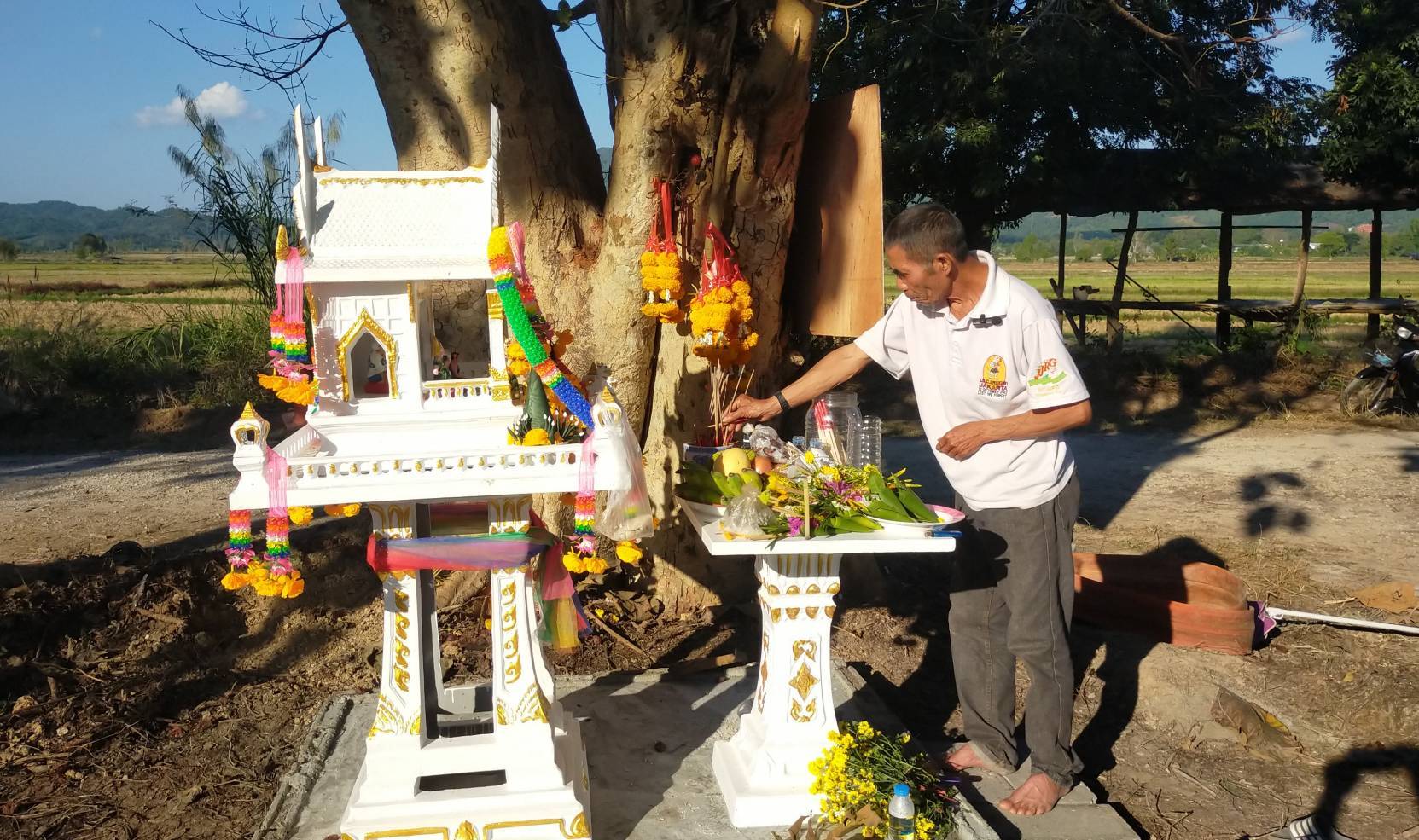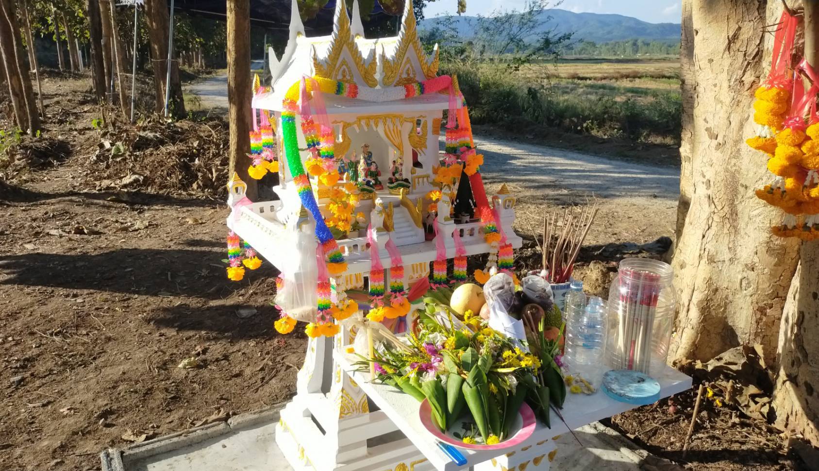 หลุมยุบในบ่อน้ำที่ อ.เวียงชัย เกิดยุบตัวเพิ่มอีก 1 หลุม ชาวบ้านเชื่อมีสิ่งศักดิ์สิทธิ์ปกปักรักษา หลังงวดที่ผ่านมาได้โชคกันหลายราย จึงนำศาลเจ้าที่มาตั้งแก้บน