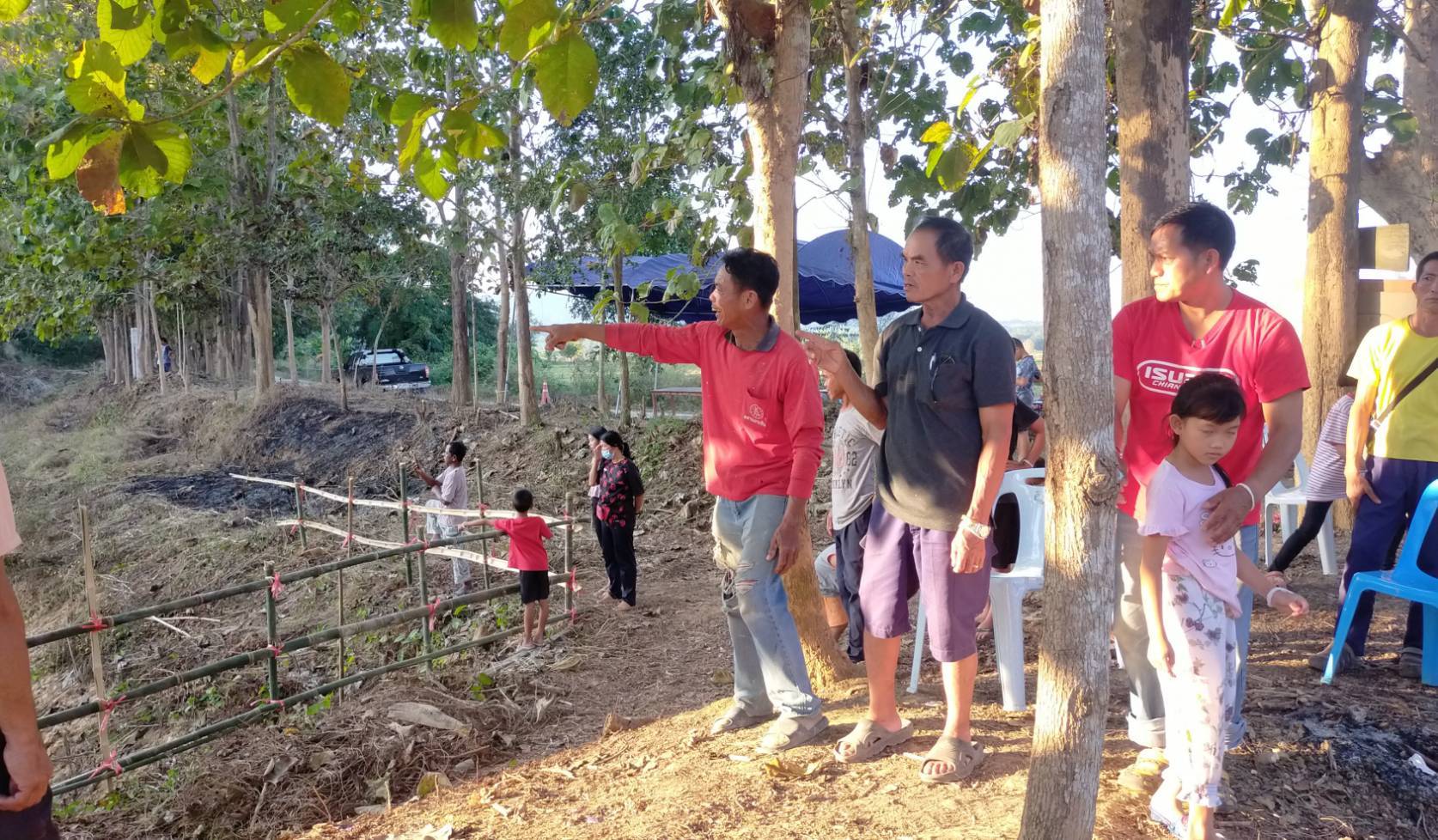 นายดอน กองฟู อายุ 63 ปี ชาวบ้าน ม.13 เผยว่า ตอนนี้มีหลุมยุบเพิ่มขึ้นมาอีก 1 หลุม ข้างใต้คงเป็นโพรงและยุบตัวลงไป มีหลายคนที่มาที่นี่ก็มีความเชื่อว่าเป็นโพรงถ้ำพญานาคหรืออาเพศอื่นๆ แต่มีหลายคนที่มาก็ได้โชค ถูกหวยกันหลายคน จึงมีการนำศาลพระภูมิเจ้าที่มาตั้งเพื่อแก้บน ต่อมาคนที่มาก็จะมาขอพรที่ศาล บ้างก็มาแก้บน ส่วนที่ตนไหว้ขอพรไป ก็เป็นการขอให้เจ้าพ่อผาหมื่นปกปักรักษา ให้อยู่ดีมีสุข