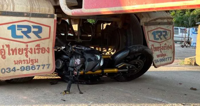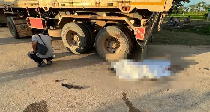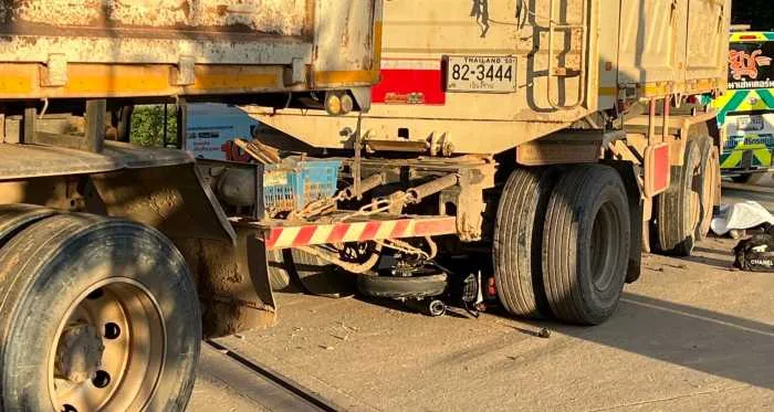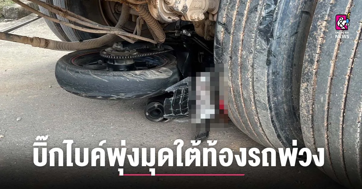 อุบัติเหตุสยอง! หนุ่มขี่บิ๊กไบค์พุ่งมุดใต้ท้องรถพ่วง 22 ล้อ ที่กำลังเลี้ยวเข้าปั้มน้ำมัน โดนทับสมองเละเสียชีวิตคาที่