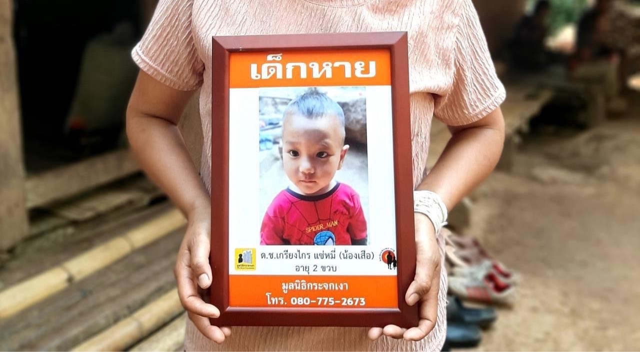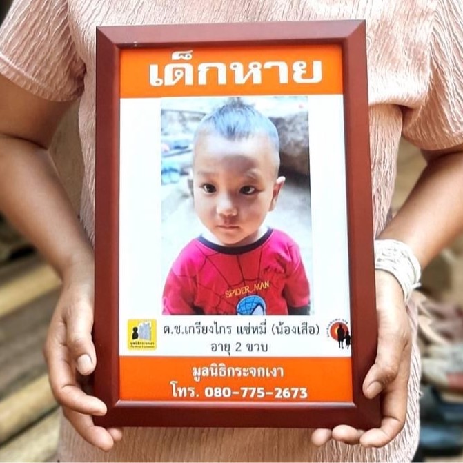 เมื่อวันที่ 23 มีนาคม 2567 เวลาประมาณ 15.00 น. ด.ช.เกรียงไกร แซ่หมี่ ชื่อเล่น เสือ อายุ 2 ปี รูปร่างสมส่วน สูงประมาณ 90 ซม. น้ำหนักประมาณ 10 กก. สวมเสื้อยืดสีแดง กางเกงขาสั้นสีน้ำเงิน ไม่สวมรองเท้า
