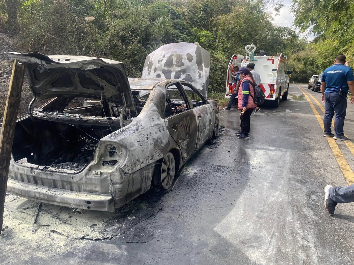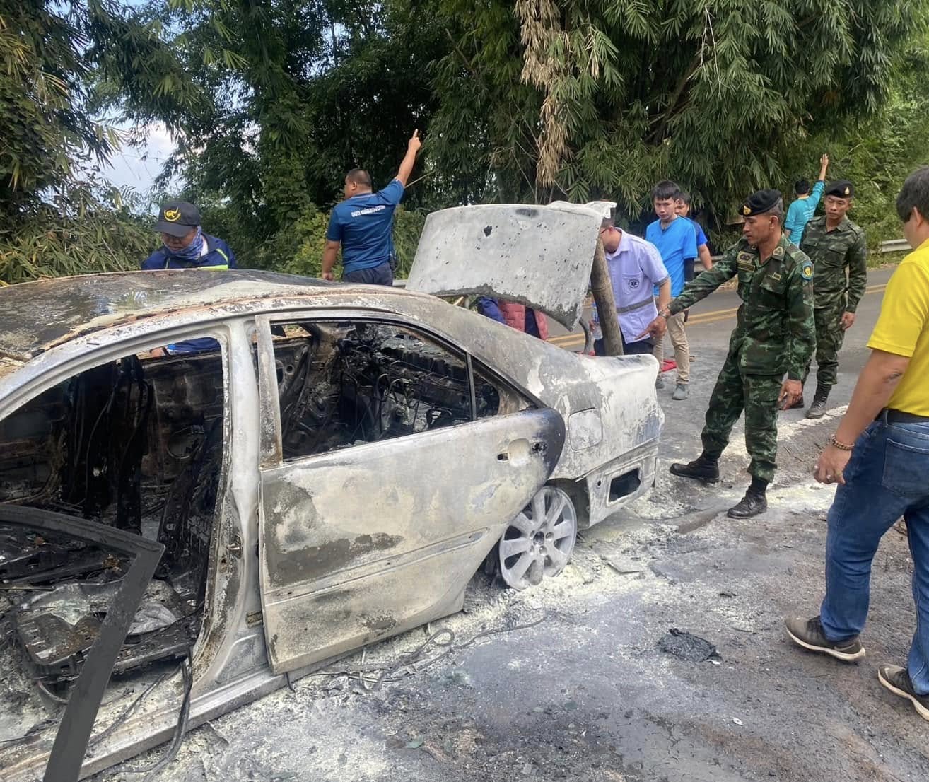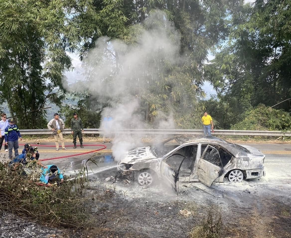 5 นทท.ขับเก๋งหรูขึ้นดอย เกิดไฟลุกไหม้ไม่ทราบสาเหตุ โชคดีไม่มีผู้บาดเจ็บ