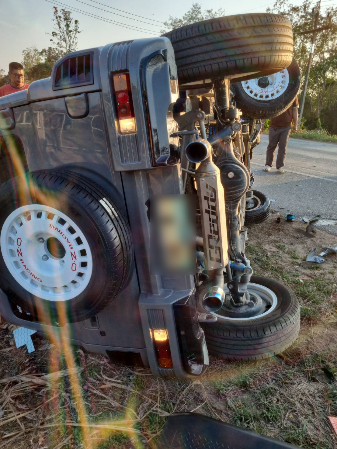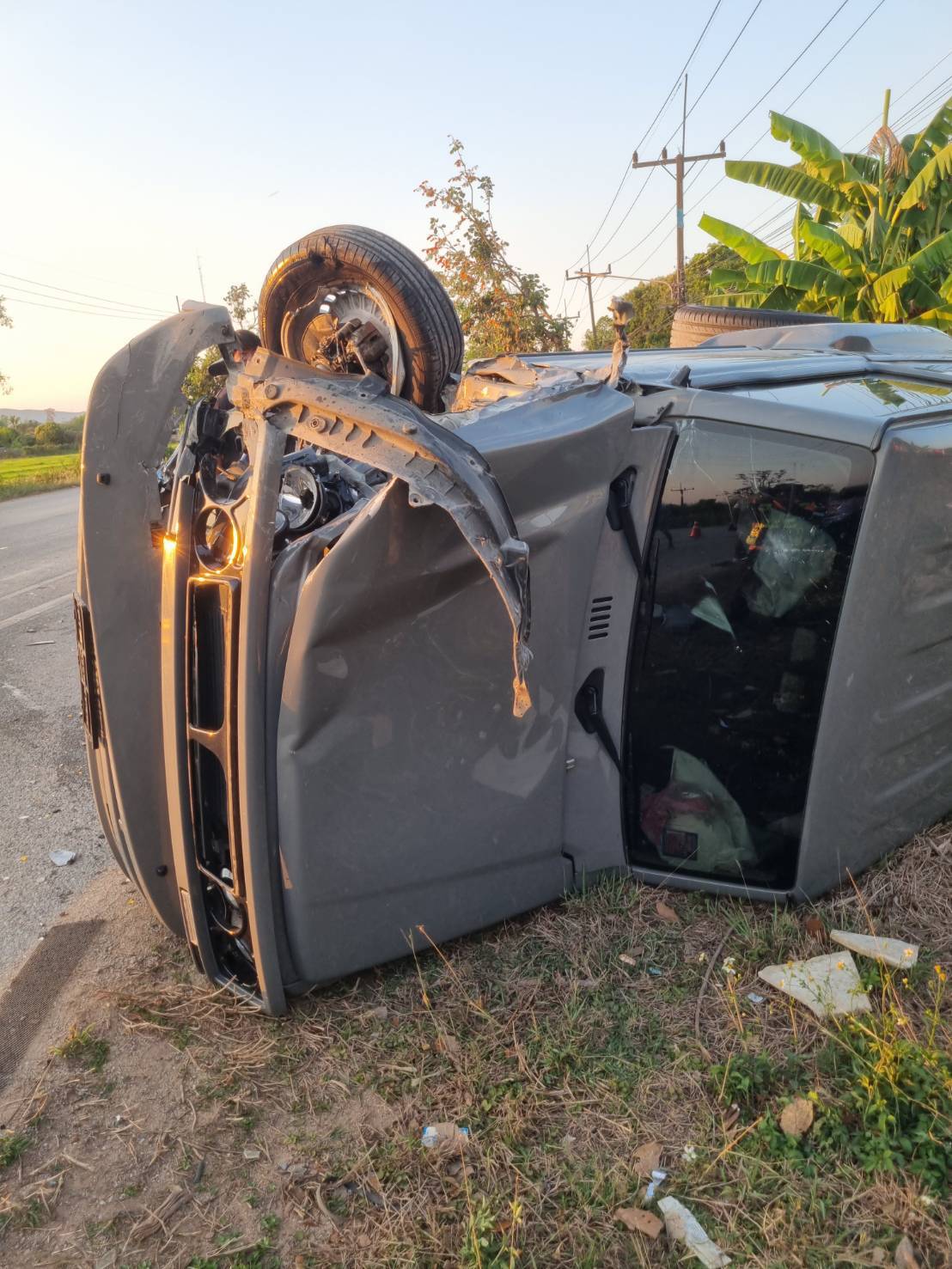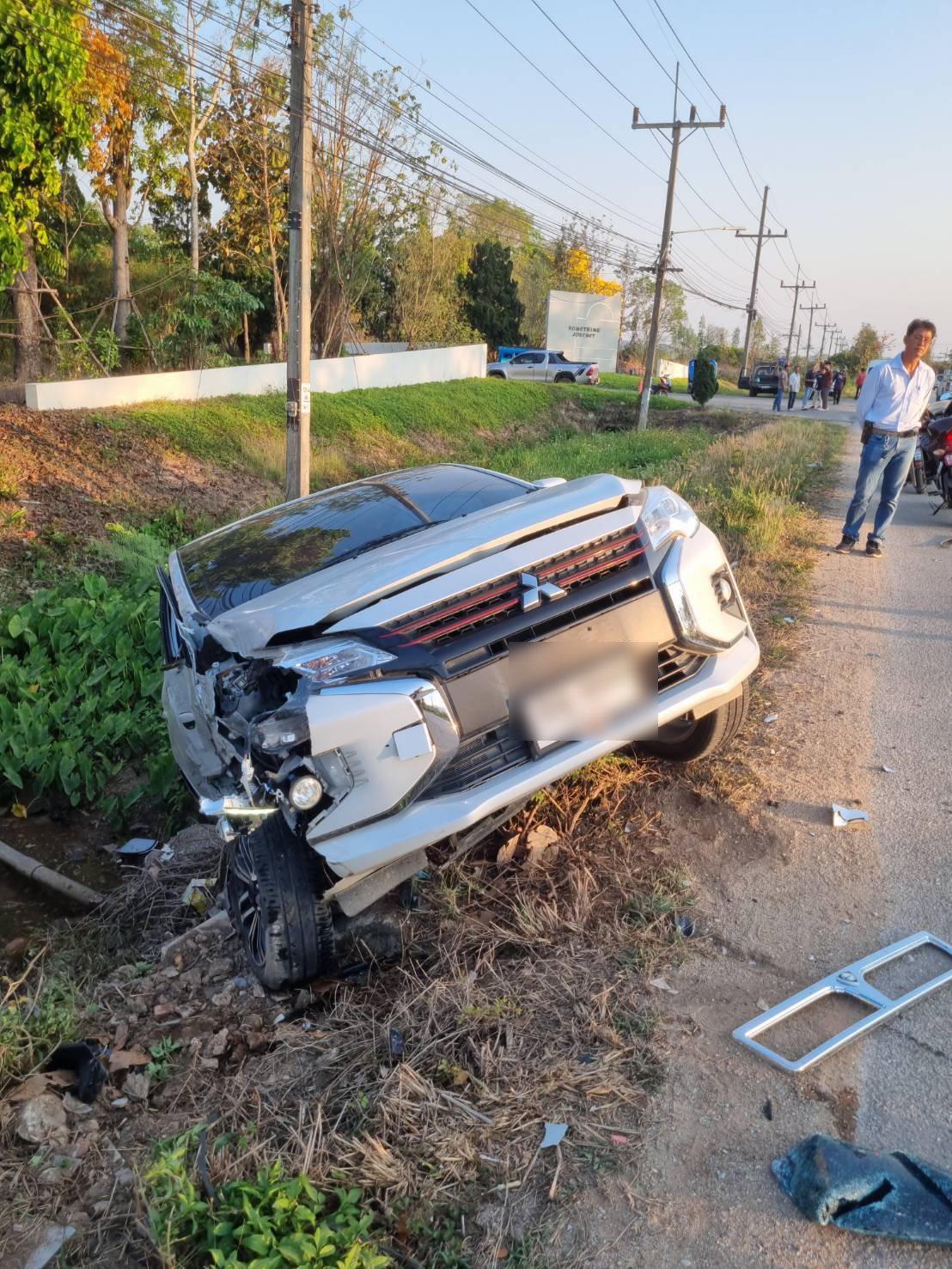 ที่เกิดเหตุอยู่บนถนนหมายเลข 1020 เชียงราย-เทิง ฝั่งขาเข้าตัวเมืองเชียงราย เมื่อไปถึงพบรถอยู่ในที่เกิดเหตุในสภาพพังเสียหาย จำนวน 4 คัน ประกอบด้วย รถยนต์เก๋งยี่หัอมิตซูบิชิ แอททราจ สีขาว ทะเบียนเชียงราย มีรอยถูกชนด้านหน้าฝั่งคนขับ ท้ายรถตกอยู่ในร่องข้างทาง ถัดไปพบรถยนต์ออฟโร้ดยี่ห้อซูซุกิ จิมนี่ สีเทา ทะเบียน เชียงราย สภาพมีรอยถูกชนด้านหน้าฝั่งคนขับ รถพลิกตะแคงอยู่ข้างถนน และไม่ห่างกันมากนัก พบรถยนต์กระบะยี่ห้อโตโยต้า วีโก้ สีบรอนซ์เงิน ใส่คอกด้านหลัง มีร่องรอยการชนบริเวณหน้ารถ และรถยนต์กระบะตู้ทึบยี่ห้อมิตซูบิชิ ไทรทัน สีขาว ทะเบียน เชียงราย จากการตรวจสอบพบผู้บาดเจ็บทั้งหมด 5 ราย เป็นหญิงอายุ 29 ปี ตั้งครรภ์ 2 เดือน มีอาการปวดหลัง ชายอายุ 30-35 ปี มีอาการปวดขาทั้ง 2 ข้าง หญิงอายุ 48 ปี มีอาการแน่นหน้าอก หญิงอายุ 30-40 ปี มีอาการวิงเวียนศรีษะและแน่นหน้าอก สมาคมกู้ชีพธรรมนันท์เชียงรายพาส่ง รพ.เชียงรายประชานุเคราะห์ และชายอายุ 66 ปี มีอาการแน่นหน้าอกและปวดท้ายทอย กู้ภัยมูลนิธิแสงธรรมสาธารณกุศลเชียงรายนำส่ง รพ.เกษมราษฎร์ศรีบุรินทร์