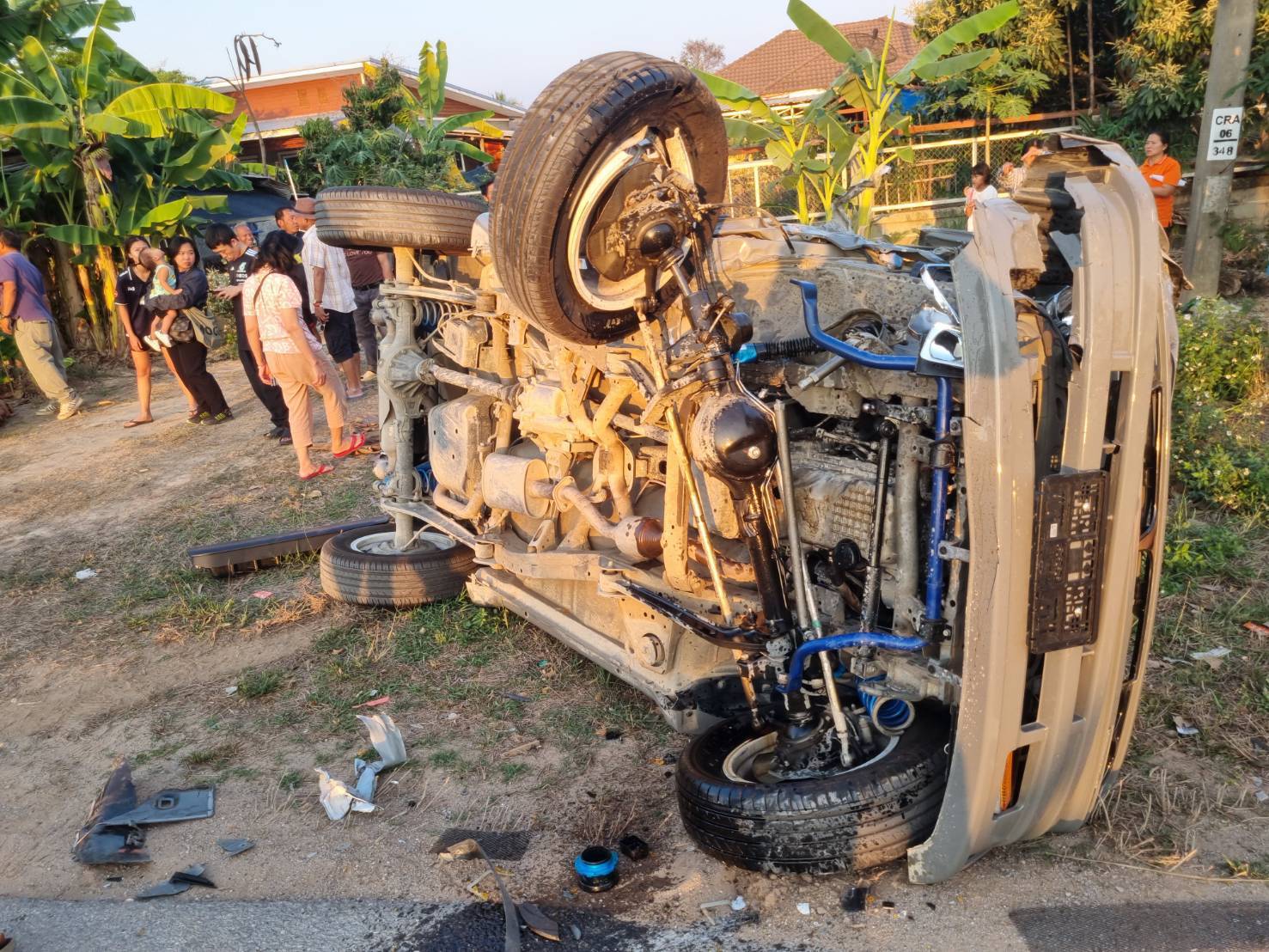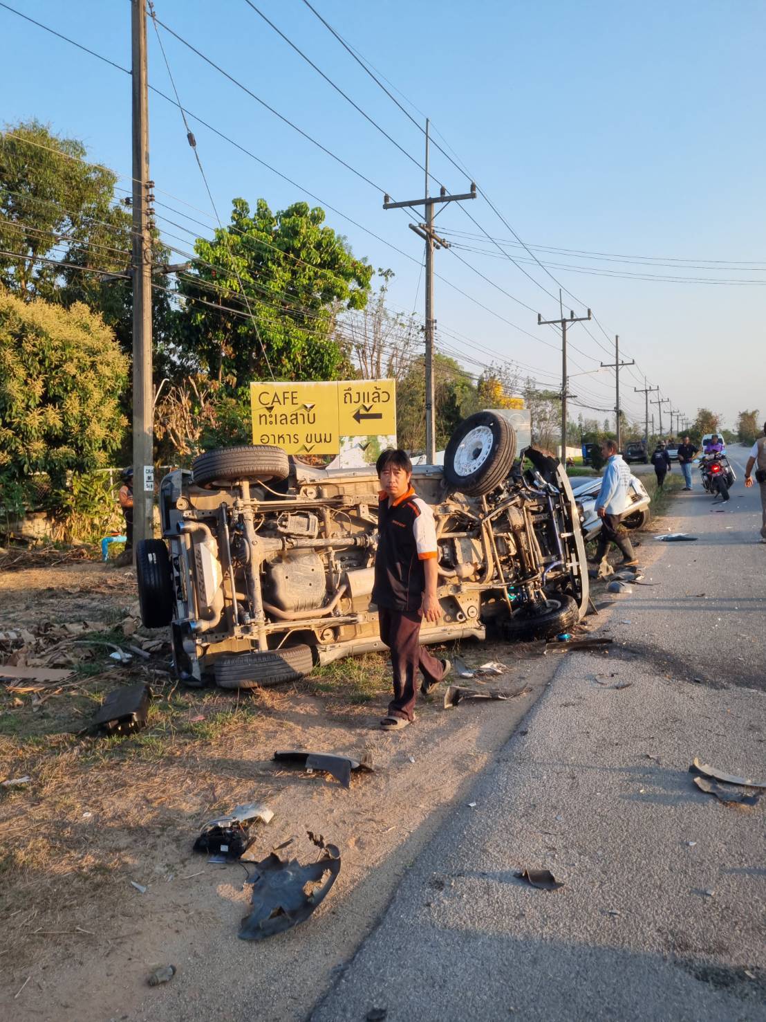 จากการสอบถามคนขับรถเก๋งทราบว่า ขับมาจากทางห้วยสักมุ่งหน้าไปทางเทิง พอมาถึงที่เกิดเหตุ มีรถกระบะคอกขนคนงานขับมาจากทางเทิงมุ่งจะไปทางตัวเมืองเชียงราย ตอนนั้นเห็นว่ากระบะขับแซงขึ้นมา แต่กลับไม่หักเลี้ยวเข้าเลนตัวเอง กลับข้ามเลนมาพุ่งชนกับรถตนเป็นคันแรก ก่อนจะไปพุ่งชนกับรถออฟโร้ดจนพลิกตะแคง และไปชนรถกระบะตู้ทึบที่จอดส่งของอยู่ข้างทาง จนเป็นเหตุให้ตนและคนอื่นๆได้รับบาดเจ็บ ส่วนรถยนต์พังเสียหายรวม 4 คัน