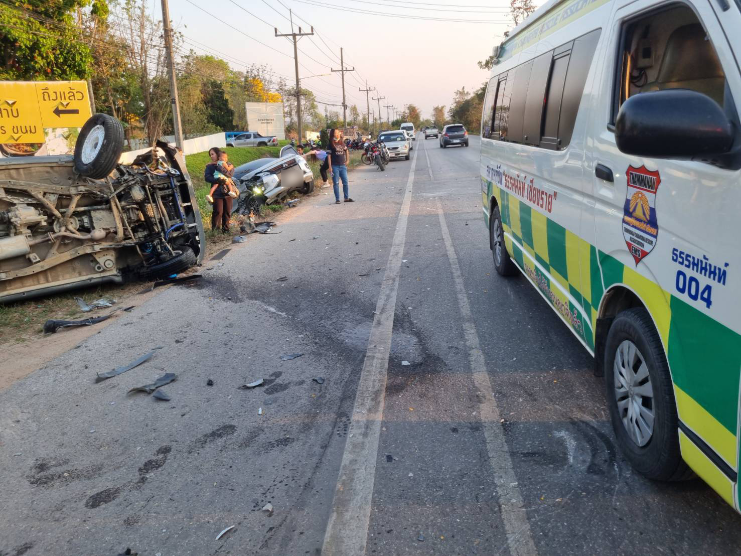 เมื่อเวลาประมาณ 17.40 น. วันที่ 6 มี.ค. 68 สมาคมกู้ชีพธรรมนันท์เชียงราย ได้รับแจ้งรถประสบอุบัติเหตุ 4 คันรวด มีผู้ได้รับบาดเจ็บหลายราย พื้นที่บ้านใหม่สันต้นเปา ม.28 ต.ห้วยสัก อ.เมืองเชียงราย จ.เชียงราย จึงรีบรุดลงพื้นที่เพื่อตรวจสอบร่วมกับกู้ภัยมูลนิธิแสงธรรมสาธารณกุศลเชียงราย