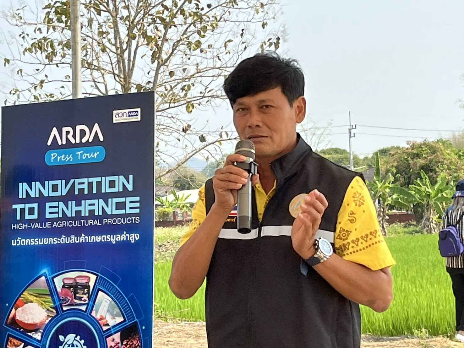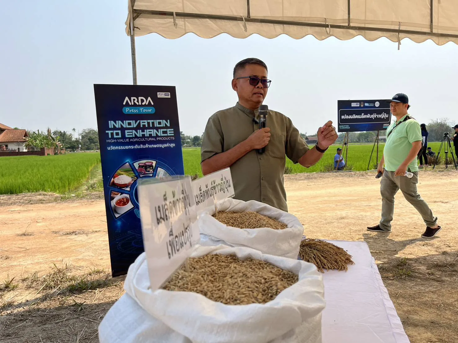 น.ส.กุลวรา โชติพันธุ์โสภณ รอง ผอ.สถาบันวิจัยและพัฒนา หรือ ARDA กล่าวว่า หนึ่งในไฮไลต์สำคัญเริ่มต้นของทริปนี้คือการลงพื้นที่เยี่ยมชมแปลงปลูกข้าวญี่ปุ่น หรือ ข้าวจาปอนิกา ซึ่งเป็นสินค้าตลาดเฉพาะ (Niche Market) ที่ประเทศไทยต้องน้ำเข้า กว่า 2,100 ตันต่อปี มูลค่ากว่า 50 ล้านบาท เนื่องจากพื้นที่เพาะปลูกในประเทศยังไม่เพียงพอ อีกทั้งเกษตรกรต้องประสบปัญหาการผลิตตลอดห่วงโซ่อุปทาน ARDA จึงให้การสนับสนุนทุนวิจัยกับมหาวิทยาลัยราชภัฏเชียงราย ศูนย์วิจัยข้าวเชียงราย กรมการข้าว และผู้ประกอบการภาคเอกชน พัฒนาเมล็ดพันธ์ข้าวญี่ปุ่นให้ได้มาตรฐานพรีเมี่ยม พร้อมจัดทำชุดเทคโนโลยีสำหรับใช้ถ่ายทอดองค์ความรู้ด้านการเพิ่มประสิทธิภาพการผลิตสู่เกษตรกร เพื่อแก้ปัญหาการขาดแคลนเมล็ดพันธุ์ เทคโนโลยีการผลิตที่ไม่เหมาะสม การผลิตต้นทุนสูง การรับรองมาตรฐานความปลอดภัย รวมถึงปัญหาด้านช่องทางการตลาด