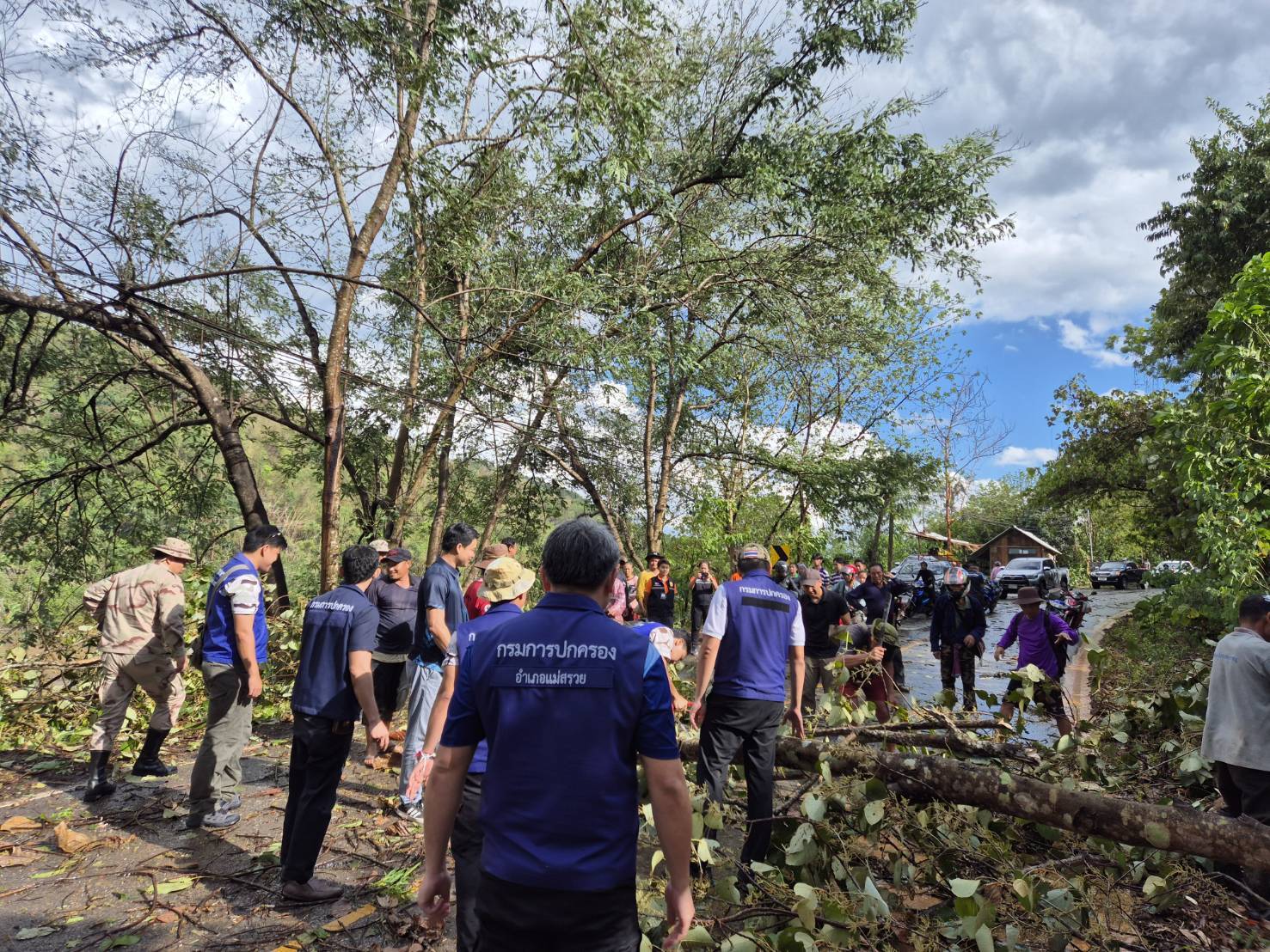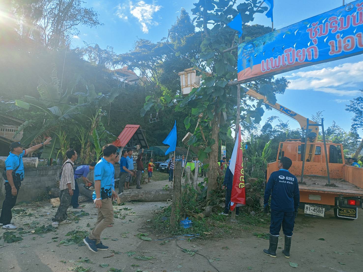 – ตำบลแม่สรวย ม.9, 12, 16 บ้านเรือนได้รับความเสียหาย และต้นไม้หักโค่น