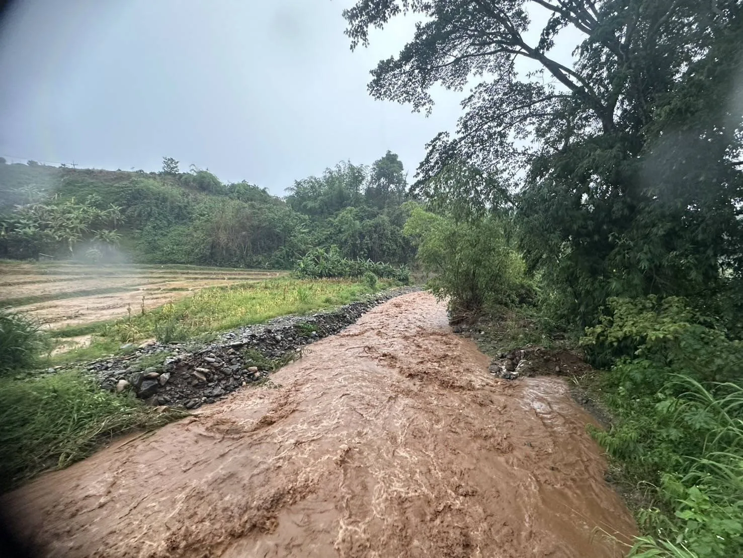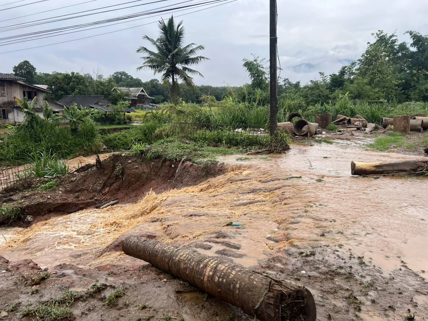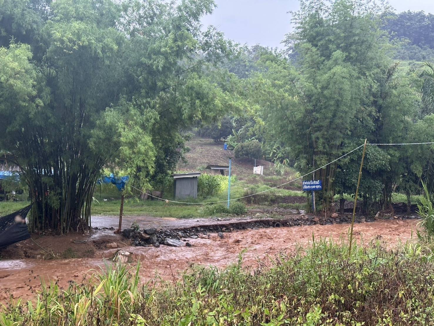 ทางด้าน ปภ.จังหวัดเชียงราย ได้ตรวจสอบพื้นที่ได้รับผลกระทบแล้ว ยังไม่มีรายงานสถานการณ์ดินสไลด์ในพื้นที่ สำหรับระดับน้ำแม่กรณ์มีระดับน้ำเพิ่มขึ้นหลังรับน้ำจากพื้นที่ฝนตก ขณะเดียวกันน้ำห้วยส้านเอ่อล้นเข้าท่วมพื้นที่การเกษตรบางส่วนที่อยู่ติดลำน้ำ ผู้ใหญ่บ้านในพื้นที่ตำบลโป่งแพร่ ตำบลดงมะดะ จอมหมอกแก้ว แจ้งเตือนให้ประชาชนที่อยู่ติดลำน้ำขนของขึ้นที่สูง ยังไม่มีบ้านเรือนได้รับความเสียหายยังไม่มีผลกระทบต่อชุมชน จากนั้นในเวลา 09.00 น. ระดับน้ำแม่กรณ์และน้ำห้วยส้านได้ลดลงอย่างต่อเนื่อง