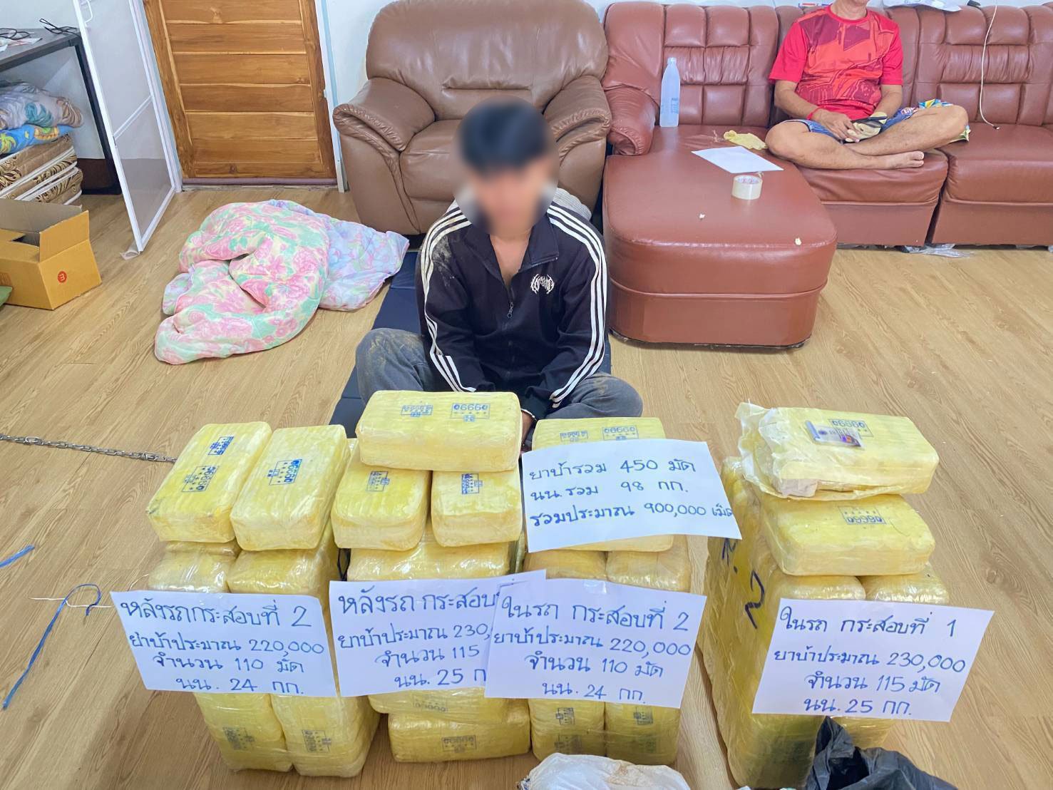 ผลการปฏิบัติ สามารถจับกุมผู้ต้องหา จำนวน 2 คน คือ นายลีมู (ไม่มีนามสกุล) อายุ 21 ปี สัญชาติเมียนมา พักอาศัยอยู่ที่ ต.เวียงพางคำ อ.แม่สาย จว.ช.ร. และ นายอีซอ (Mr. Ei Saw) อายุ 22 ปี สัญชาติเมียนมา ที่อยู่ประเทศเมียนมา พร้อมตรวจยึดของกลางยาเสพติดให้โทษ ประเภท 1 (ยาบ้า) บรรจุอยู่ภายในกระสอบฟาง จำนวน 4 กระสอบ รวมของกลางยาบ้าประมาณ 900,000 เม็ด