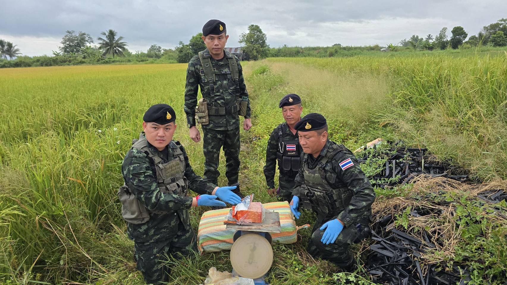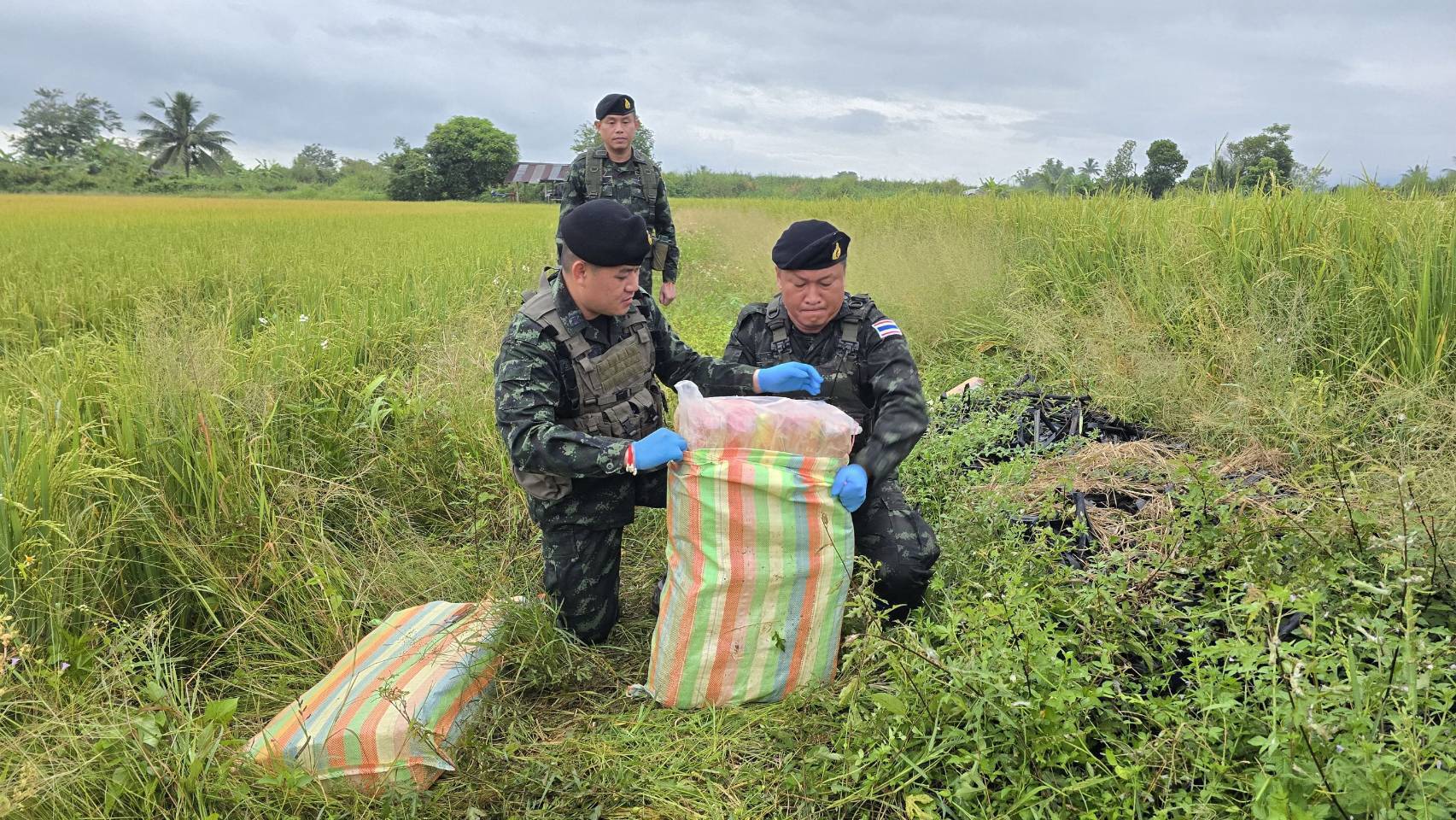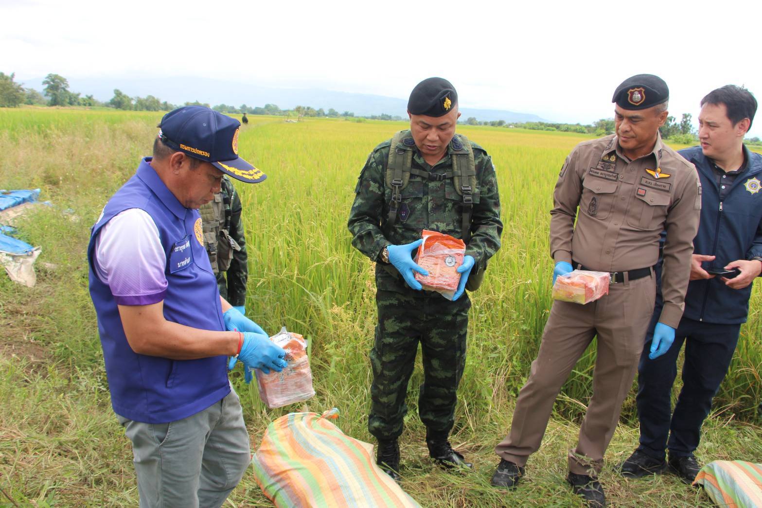 กระทั่งฟ้าสางเจ้าหน้าที่ตรวจสอบพื้นที่โดยรอบ พบกระสอบปุ๋ยต้องสงสัยจำนวน 10 กระสอบตกกระจายอยู่ในบริเวณเกิดเหตุ หน่วยจึงจัดกำลัง 2 ชุดเข้าควบคุมพื้นที่พบว่ากระสอบทั้งหมดบรรจุยาเสพติดให้โทษประเภทที่ 1 (ไอซ์) รวม 10 กระสอบ น้ำหนักรวมประมาณ 245 กิโลกรัม แบ่งเป็น 9 กระสอบ น้ำหนักกระสอบละ 25 กิโลกรัม และอีก 1 กระสอบ น้ำหนัก 20 กิโลกรัมซึ่งทางเจ้าหน้าที่ได้ประสานหน่วยงานด้านความมั่นคงและส่วนที่เกี่ยวข้อง เข้าร่วมตรวจสอบของกลาง พร้อมเร่งขยายผลหาตัวผู้ลักลอบลำเลียง เพื่อดำเนินคดีตามกฎหมายต่อไป