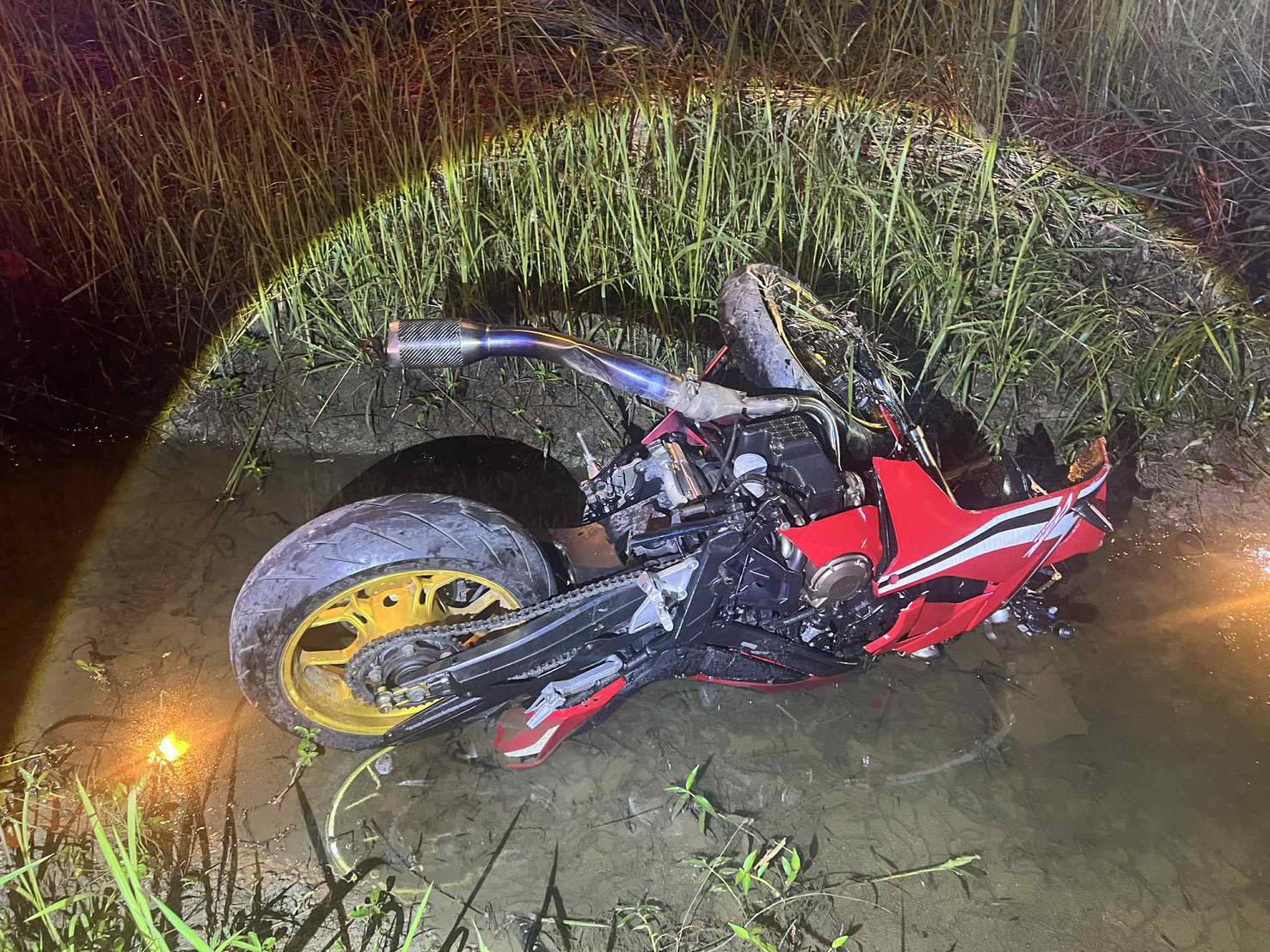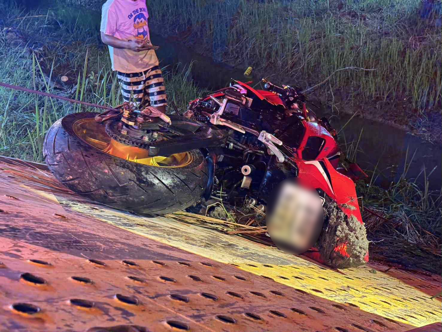 เมื่อเวลา 22.00 น. วันที่ 21 ต.ค. 68 เกิดเหตุรถจักรยานยนต์บิ๊กไบค์เสียหลักพุ่งตกลงไปลำเหมืองข้างทาง จุดเกิดเหตุอยู่ริมถนนเลี่ยงเมืองแม่สาย ที่จะไปสู่สะพานข้ามลำน้ำสายแห่งที่ 2 พื้นที่ ต.โป่งผา อ.แม่สาย จ.เชียงราย มีร่างชายซึ่งคาดว่าเป็นคนขับนอนอยู่ใกล้กับบิ๊กไบค์ หลังได้รับแจ้งเจ้าหน้าที่ตำรวจ สภ.แม่สาย ประสานแพทย์เวรโรงพยาบาลแม่สาย พร้อมด้วยอาสากู้ภัย สมาคมปิยะมิตรแม่สายบรรเทาสาธารณภัยและการกุศล ออกไปตรวจสอบ
