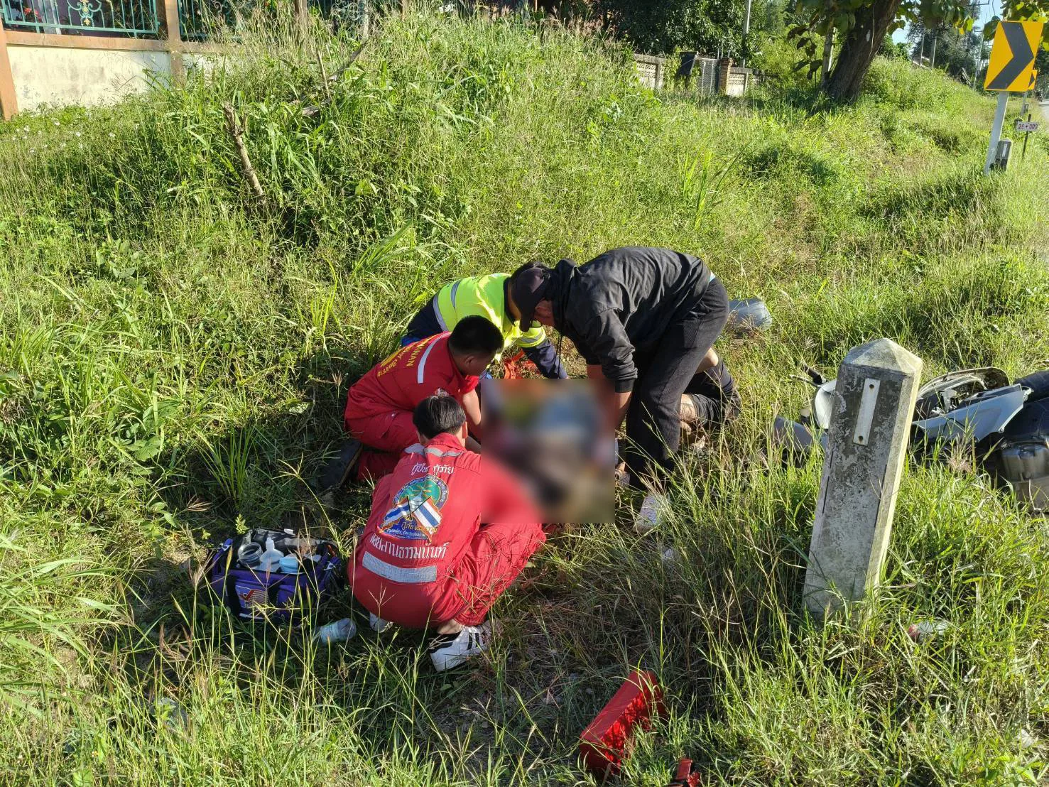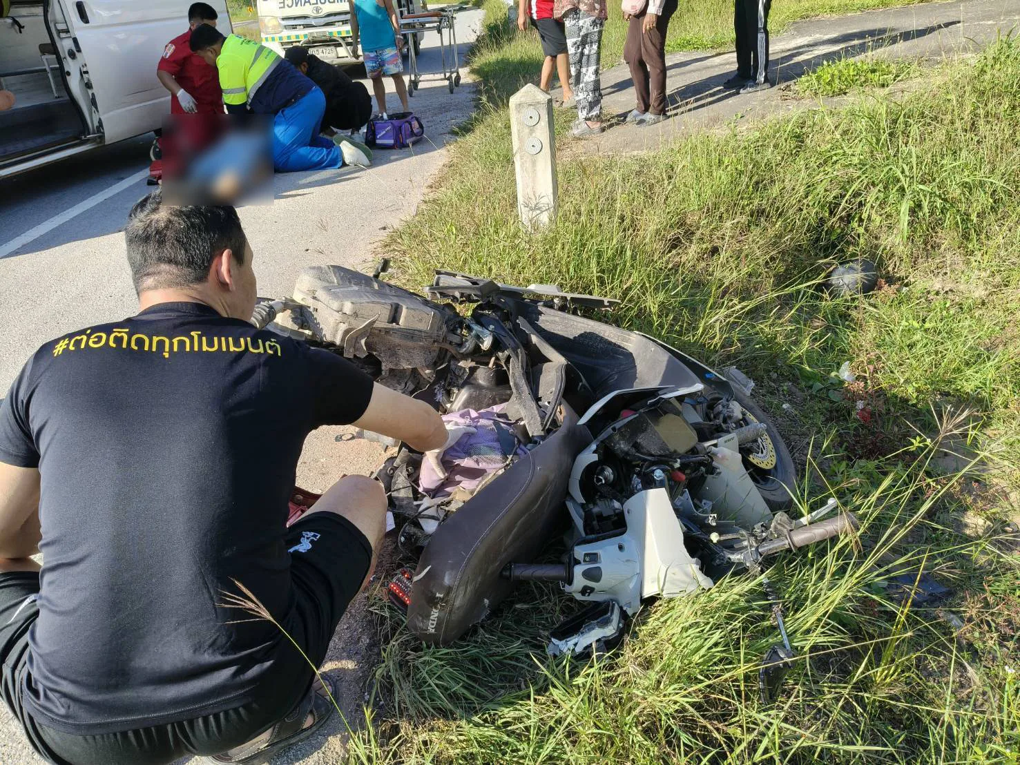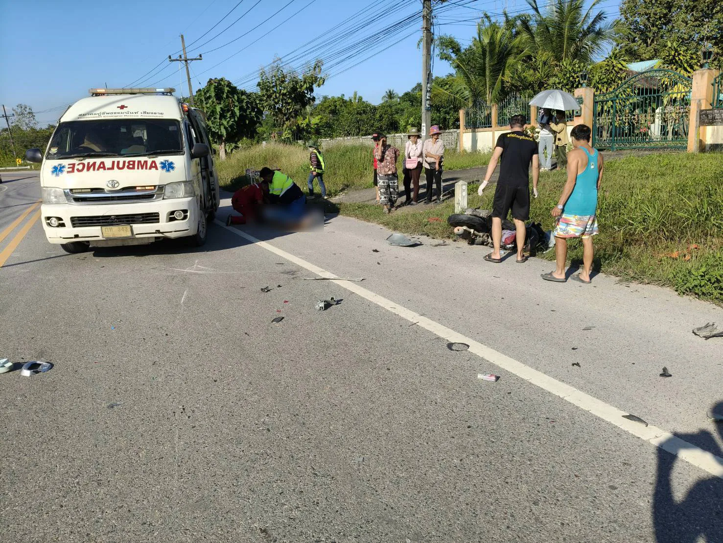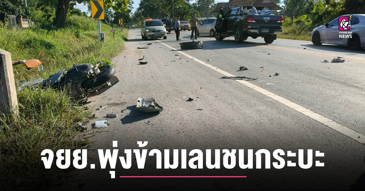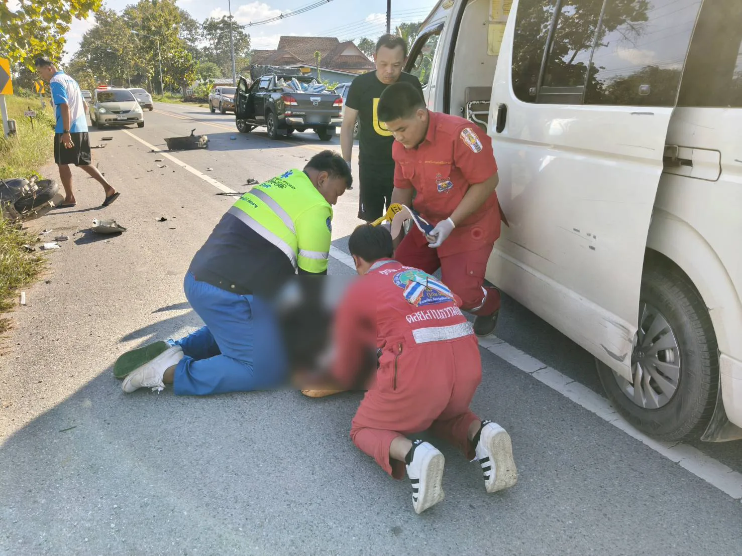 หนุ่มนักศึกษาวิทยาลัยอาชีวะ ขับมอเตอร์ไซค์เสียหลักพุ่งข้ามเลน ชนประสานงากระบะ บาดเจ็บสาหัส ก่อนไปเสียชีวิตที่ รพ.