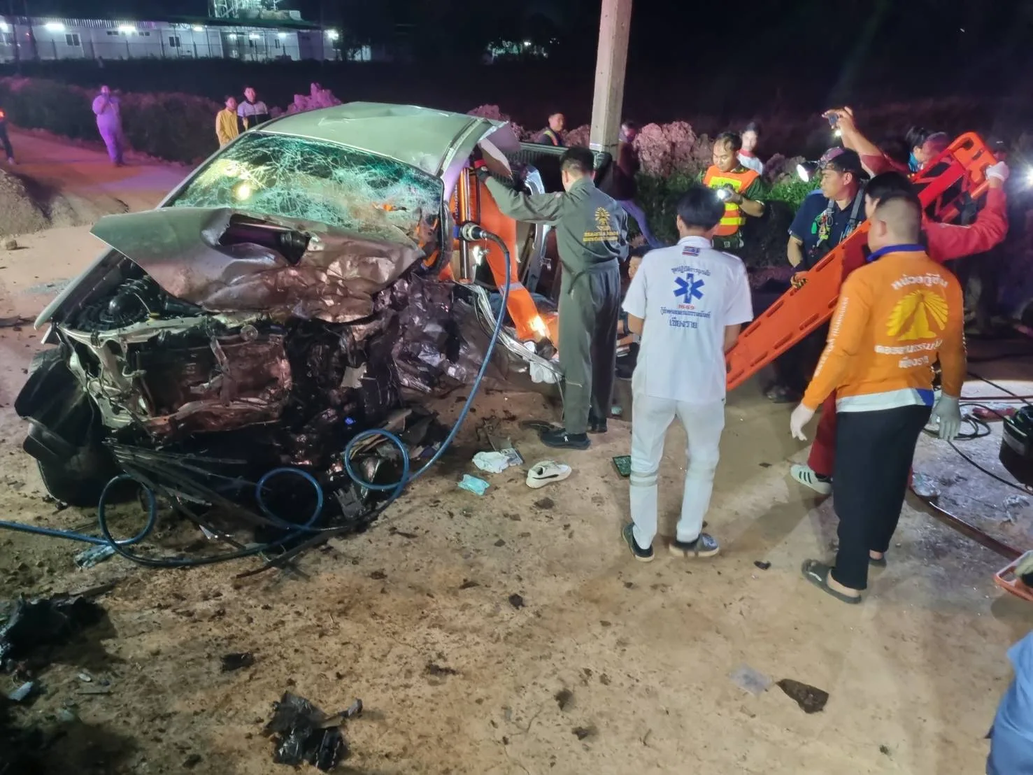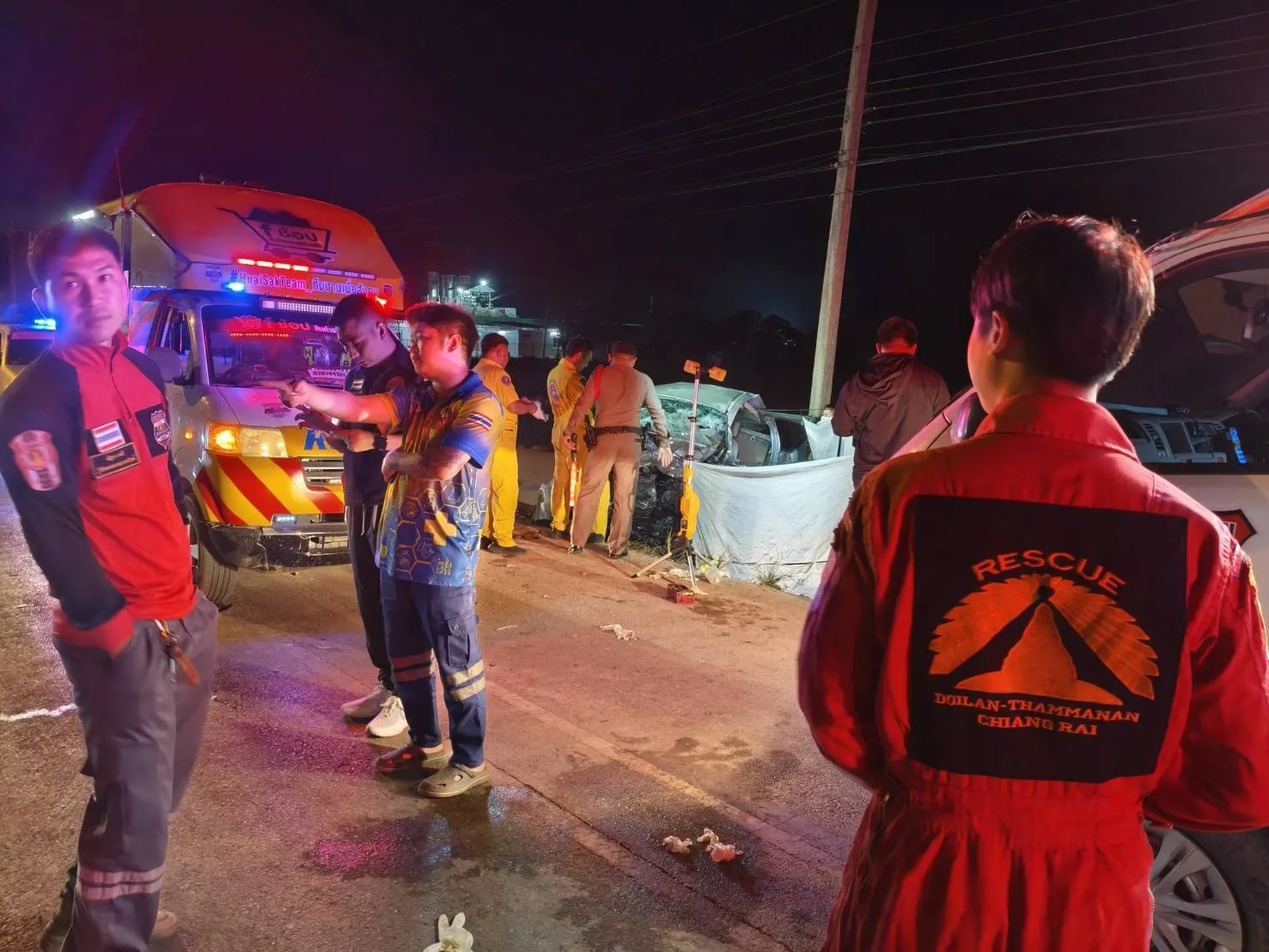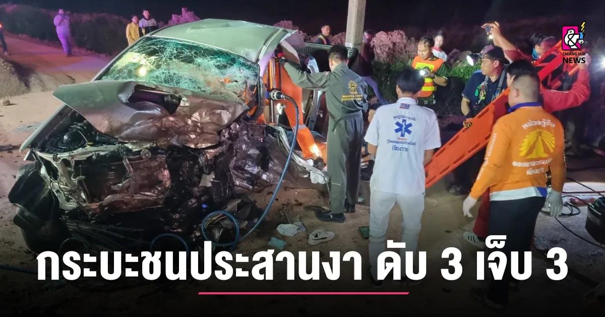 เวลา 20.40 น. วันที่ 9 ธ.ค. 68 ร.ต.ท.ธรรมราช อุ่นเรือน รอง สว.(สอบสวน) สภ.เมืองเชียงราย พนักงานสอบสวนเวร ได้รับแจ้งเหตุรถยนต์กระบะ 2 คัน ชนประสานงาอย่างรุนแรงบนถนนเชียงราย-เทิง พื้นที่บ้านร่องเบ้อ ม.9 ต.ห้วยสัก อ.เมืองเชียงราย จ.เชียงราย มีผู้บาดเจ็บและติดอยู่ภายในรถเป็นจำนวนมาก จึงรีบรุดไปตรวจสอบที่เกิดเหตุร่วมกับแพทย์เวร รพ.เชียงรายประชานุเคราะห์ รพ.เชียงรายราม สมาคมกู้ชีพธรรมนันท์ เชียงราย มูลนิธิสยามเชียงราย สมาคมศิริกรณ์เชียงรายบรรเทาสาธารณภัย มูลนิธิแสงธรรมสาธารณกุศลเชียงราย กู้ชีพเทศบาลตำบลห้วยสัก กู้ชีพเทศบาลตำบลดอยลาน ตำรวจประจำป้อมยามตำรวจตำบลห้วยสัก ทีมตอบโต้ภัยพิบัติจังหวัดเชียงราย และเจ้าหน้าที่จากแขวงการทางเชียงราย