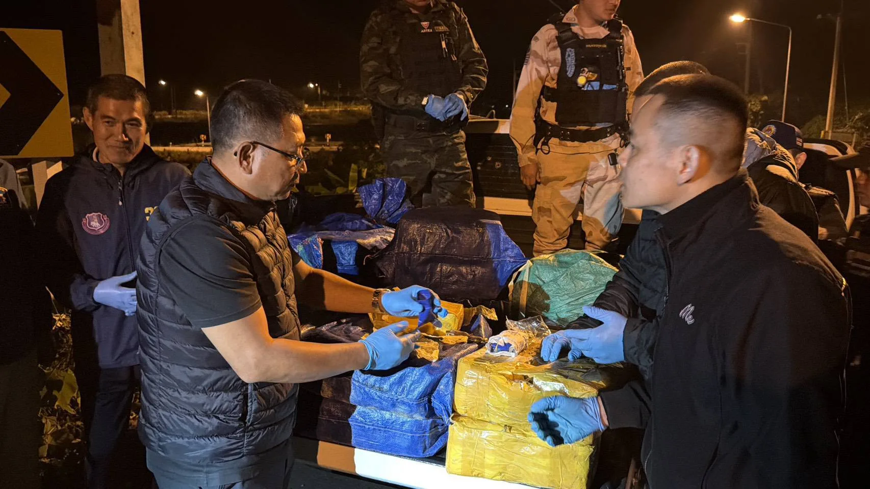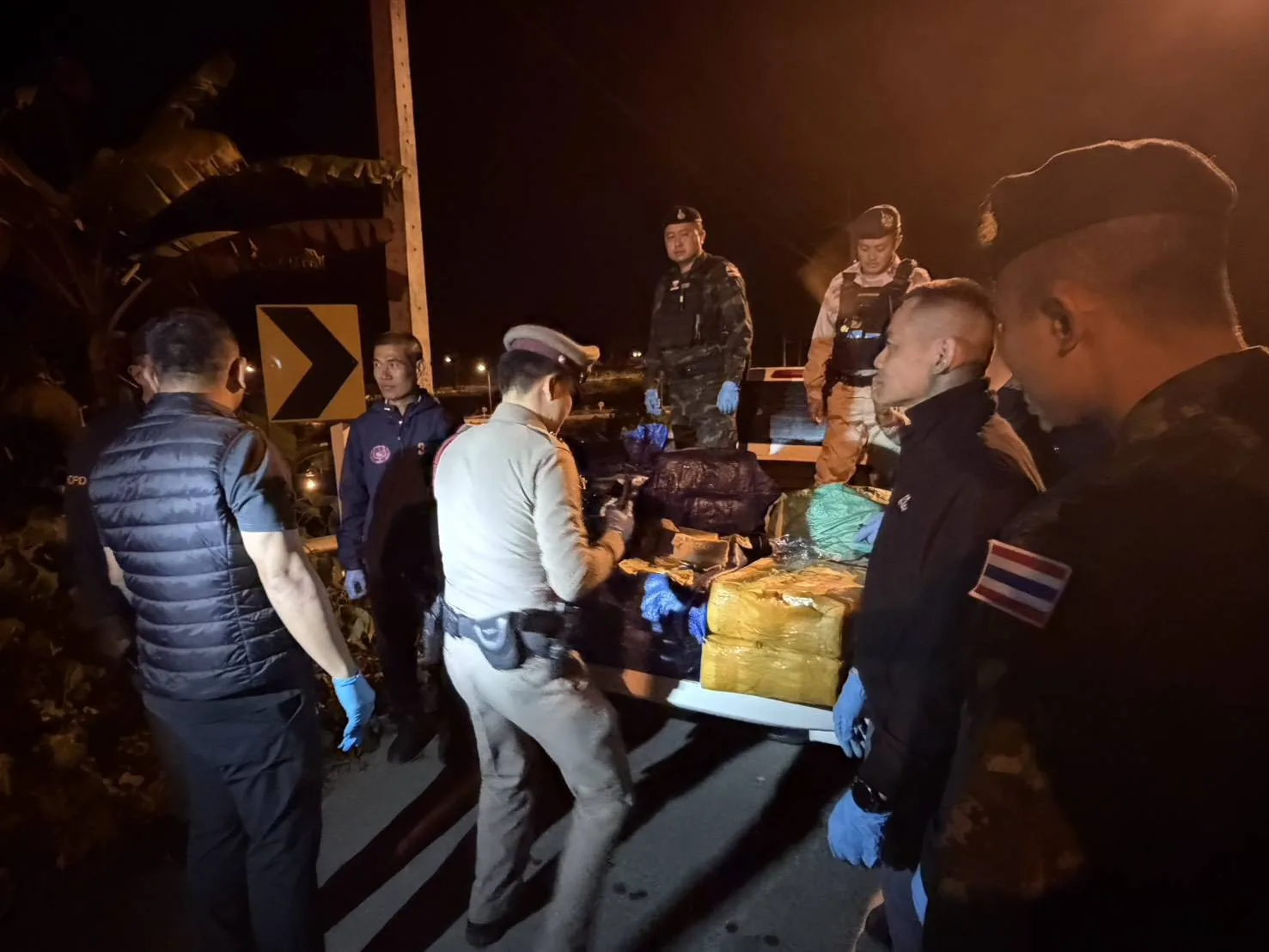 ตชด.327 สนธิกำลังหลายฝ่าย สกัดรถขนยาบ้าล้านกว่าเม็ดทางขึ้นดอยอิสระ อ.แม่จัน คนร้ายชักปืนยิงเปิดทางหนีฝ่าความมืดรอดไปได้ ทิ้งรถ 2 คันพร้อมของกลางยาบ้า 13 กระสอบ เร่งขยายผลล่าตัวยกแก๊ง