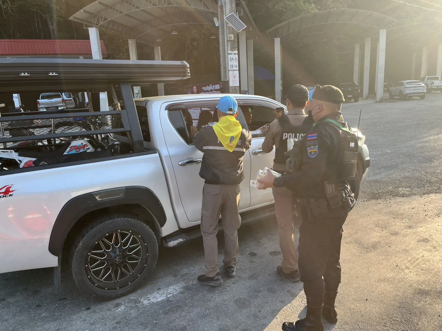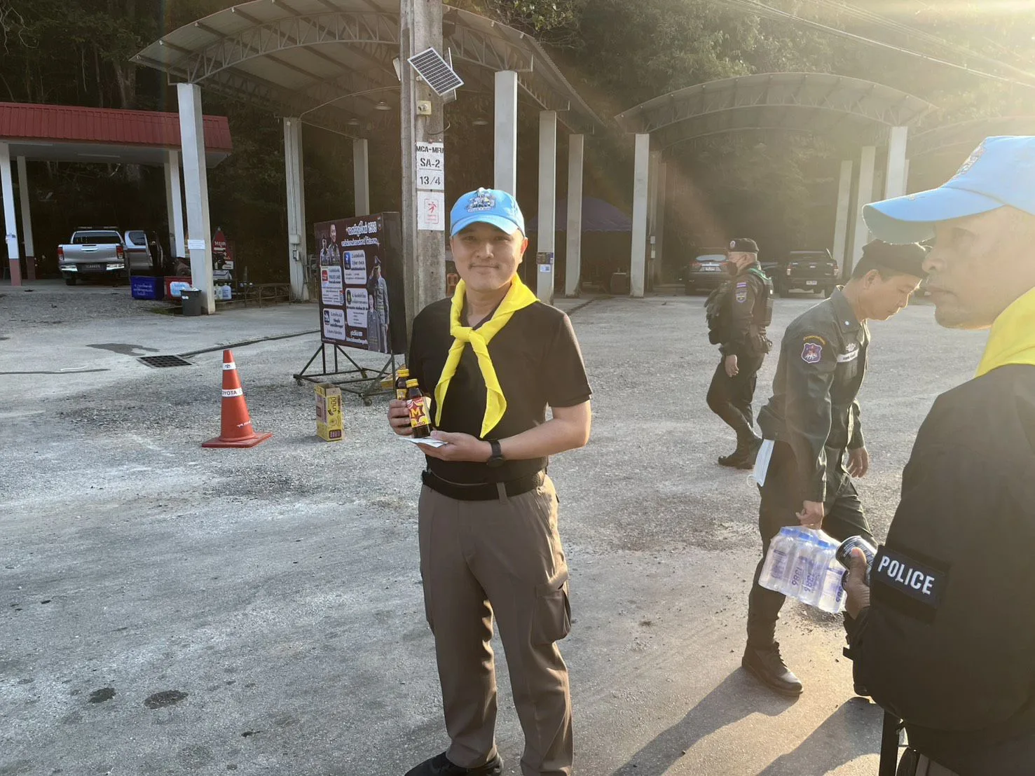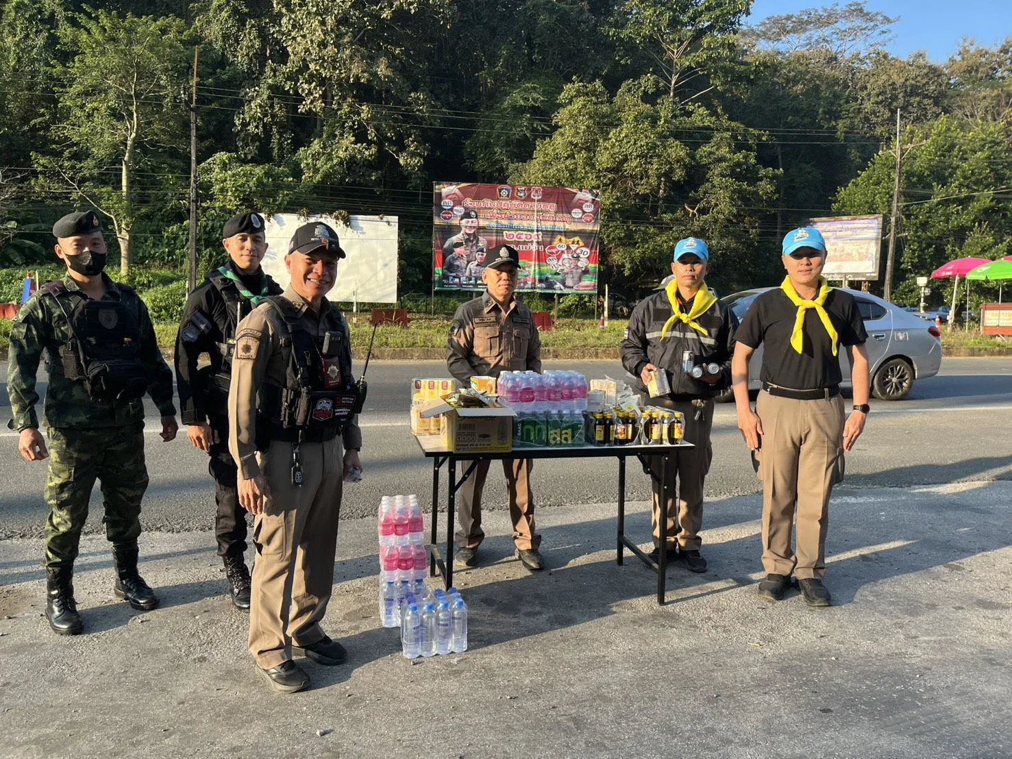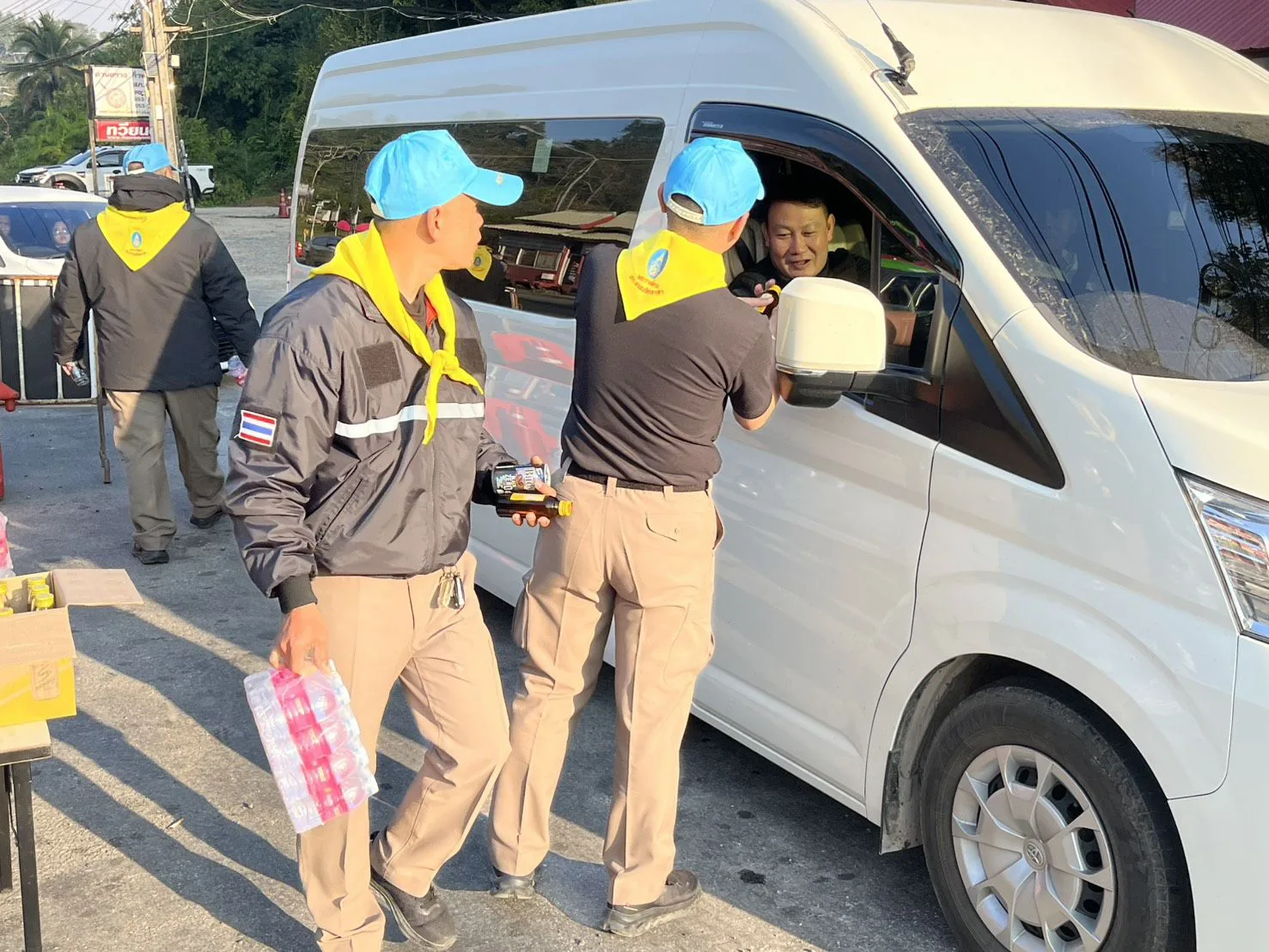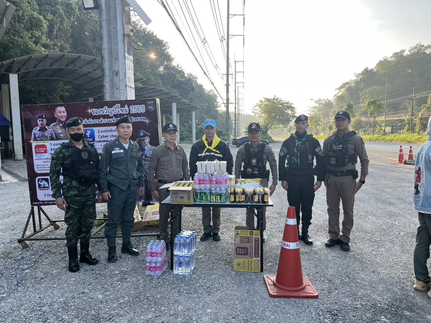ร่วมกันแจกสิ่งของ บริการกาแฟ เครื่องดื่ม น้ำดื่ม และขนม ให้กับประชาชนผู้สัญจรผ่าน และอำนวยความสะดวกในด้านการจราจร แนะนำเส้นทาง ให้กับนักท่องเที่ยวที่เริ่มทยอยเดินทางกลับ หลังเทศกาลปีใหม่ เหตุการณ์ทั่วไปปกติ