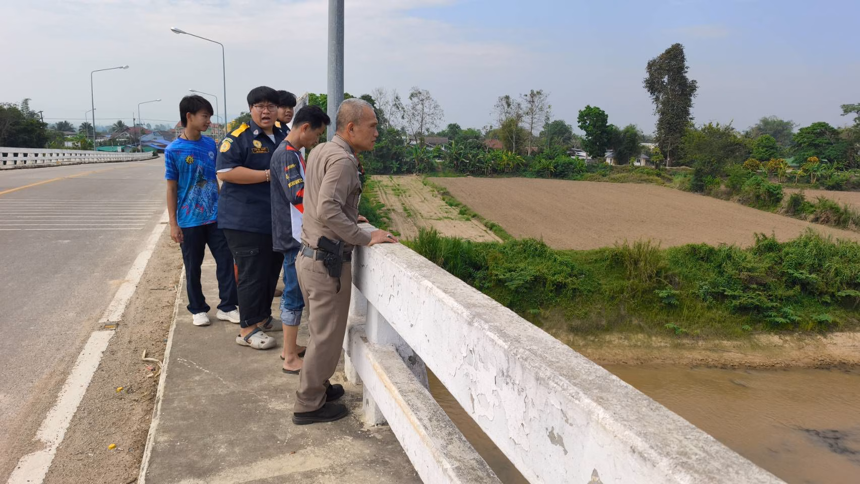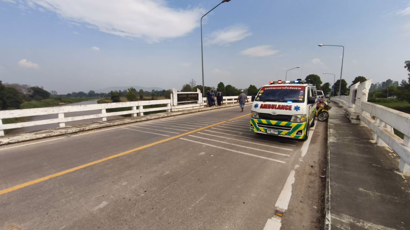 เมื่อไปถึงบริเวณสะพานข้ามแม่น้ำกก เจ้าหน้าที่ตรวจสอบโดยรอบอย่างละเอียด แต่ไม่พบทั้งรถจักรยานยนต์ของชายคนดังกล่าว และไม่พบบุคคลตามที่ได้รับแจ้ง จึงกระจายกำลังสอบถามชาวบ้านที่ทำไร่ทำสวนบริเวณใกล้เคียง ทว่าไม่มีผู้ใดพบเห็นเหตุการณ์ผิดปกติ
