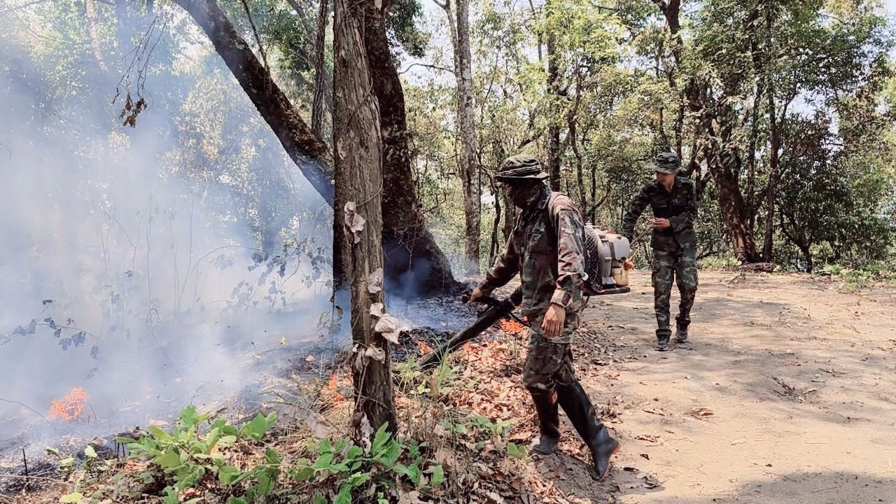 มณฑลทหารบกที่ 37 พร้อมกำลังพล ดับไฟป่าที่ลุกลามเข้ามาในเขตพื้นที่รอยต่อ และทำแนวกันไฟเพิ่มเติม โครงการบ้านเล็กในป่าใหญ่ ตามพระราชดำริ บ้านห้วยหญ้าไซ หมู่ 9 ตำบลป่าแดด อำเภอแม่สรวย จังหวัดเชียงราย