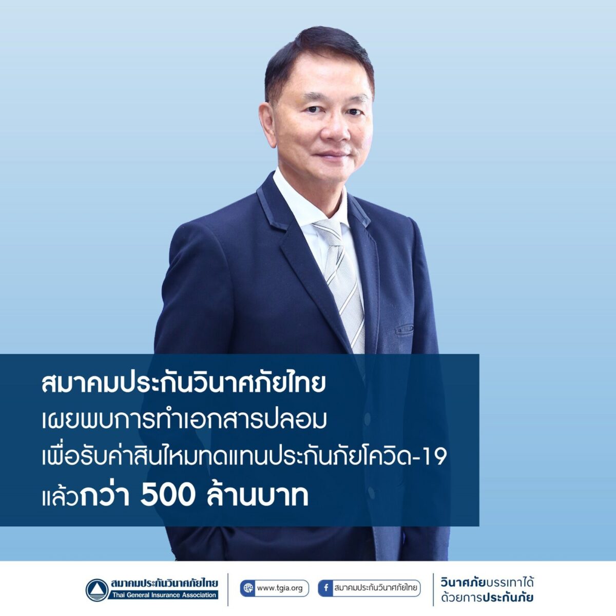 นายอานนท์ วังวสุ นายกสมาคมประกันวินาศภัยไทย เปิดเผยว่า สมาคมฯ ได้รับแจ้งจากบริษัทสมาชิกของสมาคมฯ หลายบริษัท ว่าพบผู้ที่ทำประกันภัยโควิด-19 ใช้เอกสารปลอมในการยื่นขอรับเงินค่าสินไหมทดแทนรวมเป็นจำนวนแล้วกว่า 500 ล้านบาท ทั้งนี้ เนื่องจากการสถานการณ์การแพร่ระบาดของโรคโควิด-19 ที่เกิดขึ้นอย่างต่อเนื่อง ส่งผลทำให้มีผู้ทำประกันภัยโควิด-19 แบบเจอจ่ายจบที่ติดเชื้อโควิด-19 เป็นจำนวนมาก บริษัทประกันวินาศภัยที่รับประกันภัยโควิด-19 แบบเจอจ่ายจบ จึงได้เร่งดำเนินการจ่ายค่าสินไหมทดแทนให้กับผู้ทำประกันภัยที่ติดเชื้อโควิด-19 ให้รวดเร็วที่สุดเพื่อช่วยบรรเทาผลกระทบที่เกิดขึ้นกับผู้ทำประกันภัย ซึ่งจากการเร่งดำเนินการจ่ายค่าสินไหมทดแทนดังกล่าว ทำให้การตรวจสอบเอกสารต่าง ๆ จำนวนมหาศาลที่ผู้ทำประกันภัยโควิด-19 ได้ส่งมาให้บริษัทประกันภัยเพื่อแสดงหลักฐานในการขอรับค่าสินไหมทดแทนอาจทำได้ไม่ถี่ถ้วนทั้งหมด ส่งผลให้มีผู้ทำประกันภัยโควิด-19 แบบเจอจ่ายจบจำนวนหนึ่งซึ่งใช้เอกสารปลอมยื่นขอรับค่าสินไหมทดแทนจากบริษัทประกันภัย ได้รับเงินไปเป็นที่เรียบร้อย