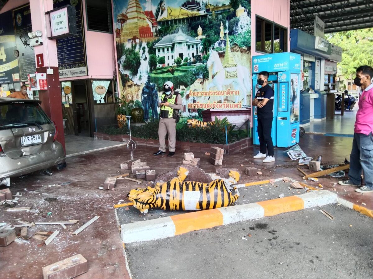 จากการดูคลิปภาพเหตุการณ์ พบว่าเป็นรถเก๋งสี บรอนซ์ทอง ถอยพุ่งจากที่จอดรถเข้าไปชนเก้าอี้ผู้โดยสาร ในสถานีขนส่งแพร่ หวิดชนชาวต่างชาติ และคนไทยที่รอรถ ทำให้รอดตายราวปาฏิหาริย์