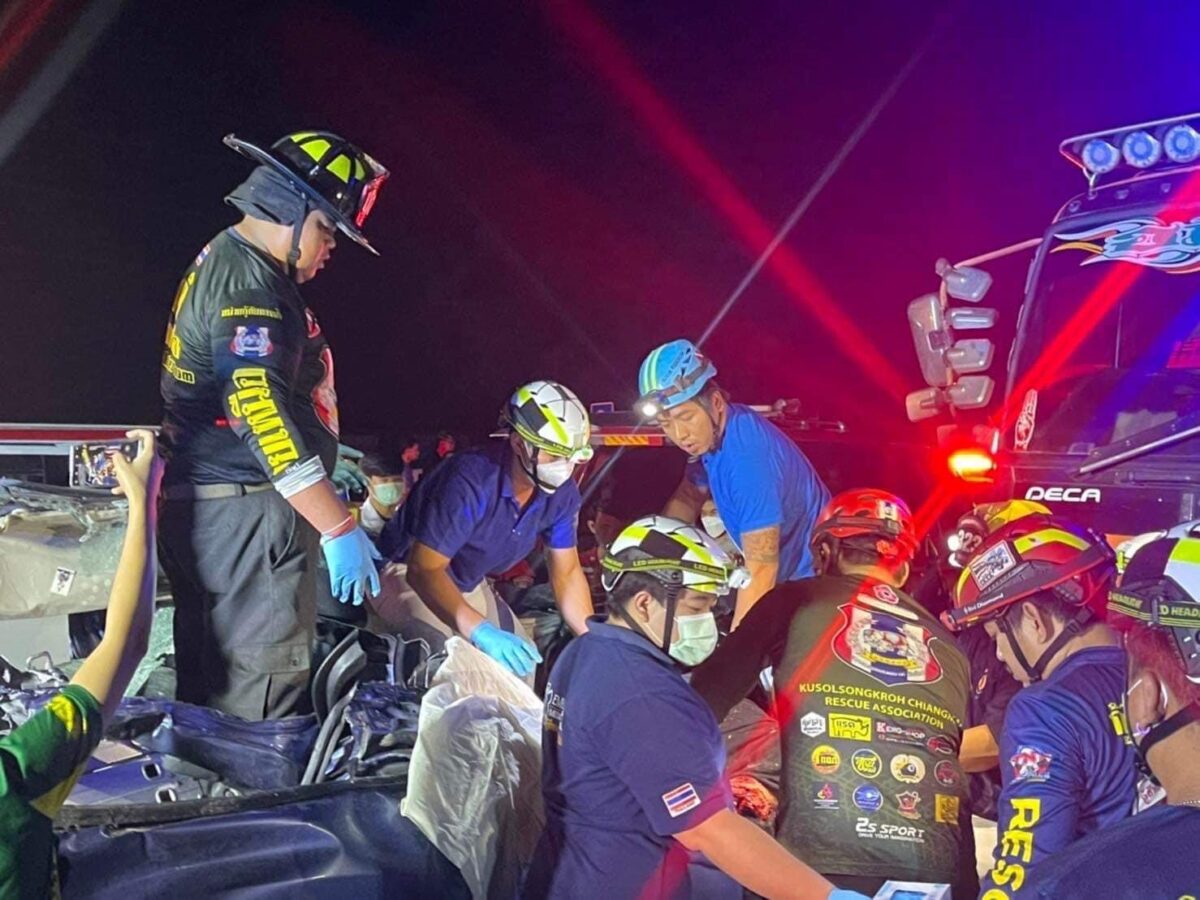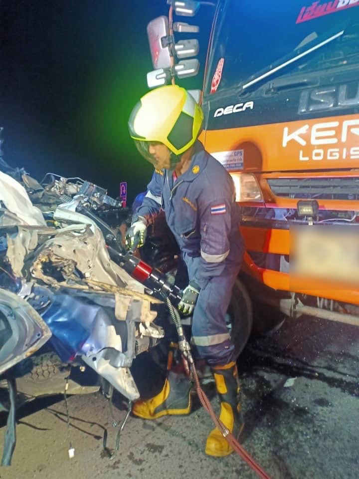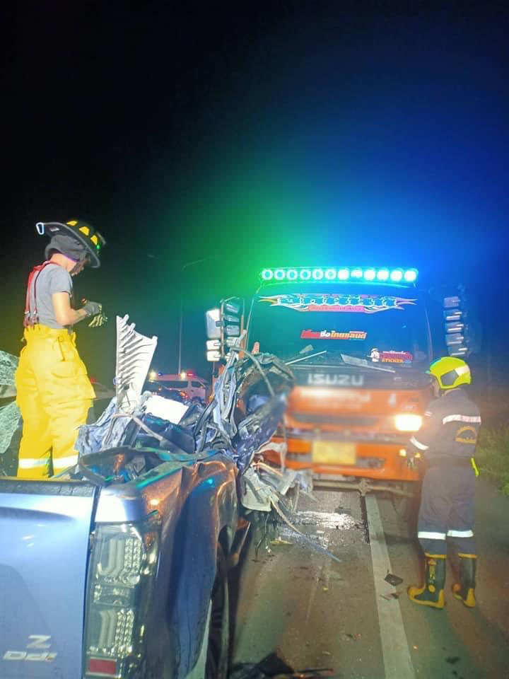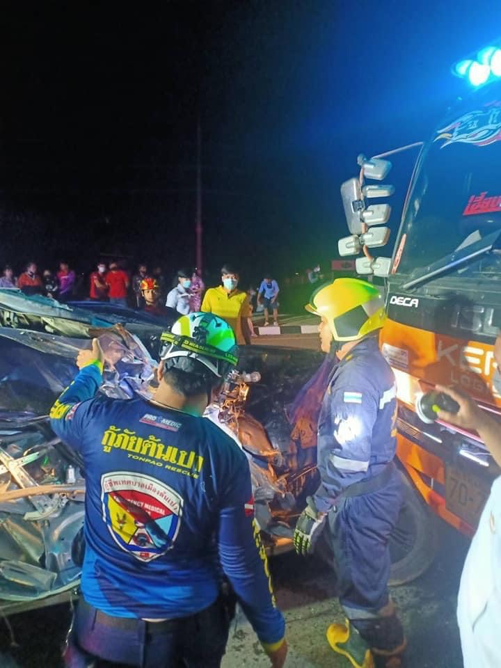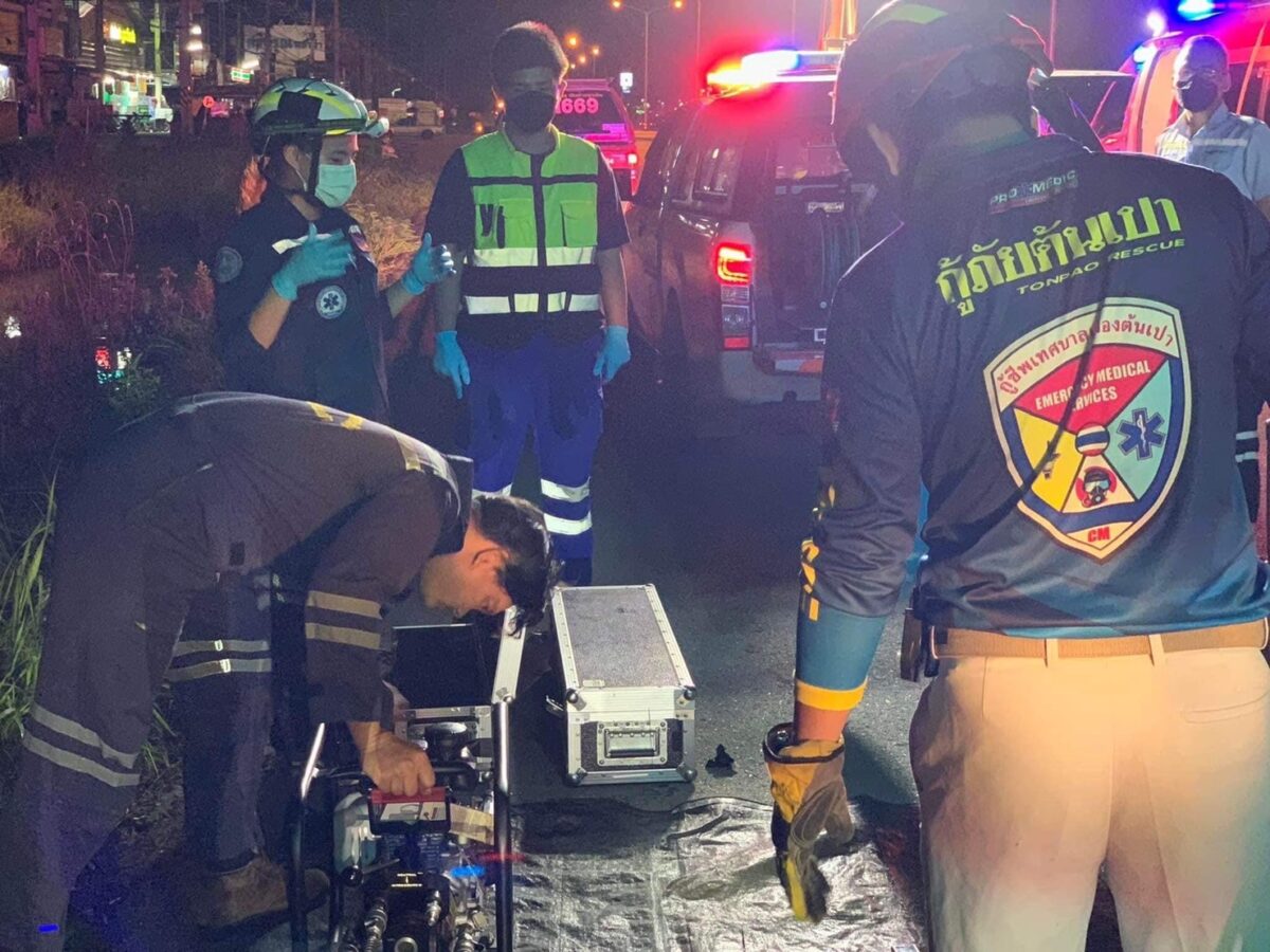 พบว่าในที่เกิดเหตุเป็นจุดยูเทิร์น(กลับรถ) มีรถยนต์กระบะยี่ห้ออีซูซุ สีฟ้า ทะเบียน สระแก้ว ชนอัดก้อปปี้กับรถบรรทุกยี่ห้ออีซูซุ สีส้ม ทะเบียน เชียงใหม่(รถเคอรี่) มีชายคนขับรถยนต์กระบะติดคาพวงมาลัย ทางกู้ชีพฯทม.ต้นเปาใช้เครื่องตัดถ่างช่วยนำตัวคนขับออกมา ปรากฎว่าทนพิษบาดแผลไม่ไหวเสียชีวิตในที่เกิดเหตุ ทางพนักสอบสวนสภ.สันกำแพง ได้มอบหมายให้กู้ชีพฯนำศพส่งนินิเวชรพ.มหาราชนครเชียงใหม่ ส่วนสาเหตุอยู่ระหว่างการสอบสวน