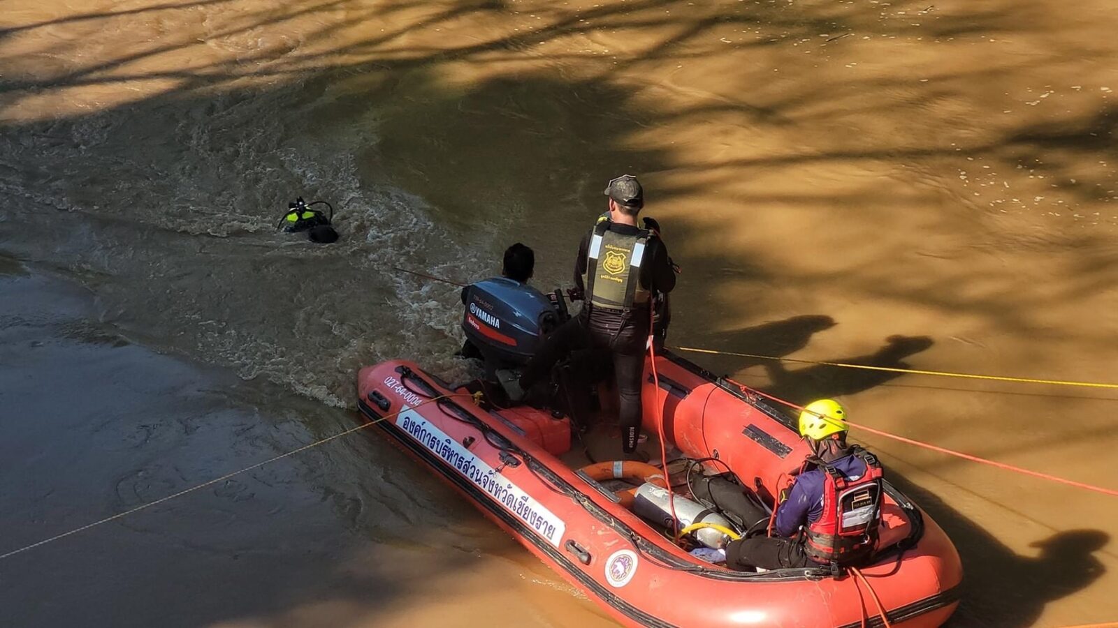 และเมื่อช่วงเช้าวันนี้ชุดกู้ภัยฯสมาคมกุศลสงเคระห์เชียงใหม่,ประน้ำภาค5,กู้ภัยฯพร้าววังหิน,ไมค์ มหาวงศ์ คนสู้ไฟ และกู้ภัยฯในพื้นที่ลงเนือท้องแบนและเรือยางออกค้นหา จนกระทั่งพบรถกระบะจมอยู่ใต้น้ำบริเวณด้านหลังสวนจริณรีสอร์ท จึงทำการกู้รถกระบะขึ้นมาบนฝั่งได้สำเร็จ เป็นรถกระบะยี่ห้อโตโยต้า วีโก้แชมป์ พรีรันเนอร์ ไม่ติดแผ่นป้ายทะเบียน เบื้องต้น