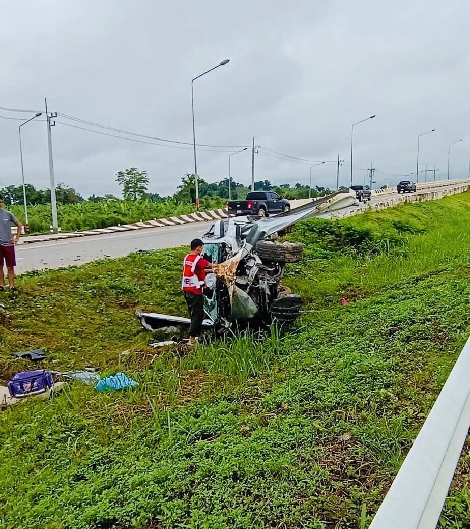 ที่เกิดเหตุเป็นถนนทางหลวงหมายเลข 1063 บริเวณเชิงสะพานโยนกนาคนคร 3 ซึ่งเป็นพื้นที่รอยต่อ ต.แม่ข้าวต้ม อ.เมืองเชียงราย และ ต.ดงมหาวัน อ.เวียงเชียงรุ้ง พบรถยนต์เก๋งยี่ห้อฟอร์ด เอเวอร์เรสต์ สีขาว ทะเบียน เชียงใหม่ พลิกตะแคงข้างอยู่ในร่องกลางถนน สภาพรถด้านหน้ามีร่องรอยถูกชนเสียหายยับเยิน