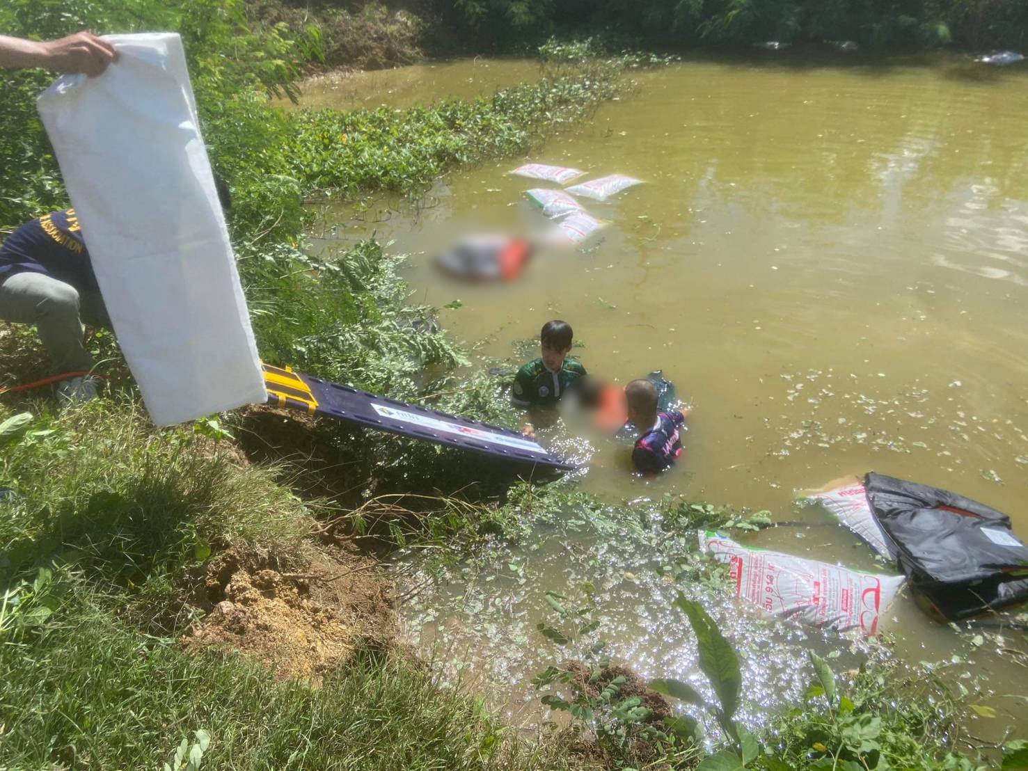 เมื่อวันที่ 17 ก.ย.2565 เวลาประมาณ 13.44 น. เจ้าหน้าที่ตำรวจ สภ.แม่ทะ จ.ลำปาง นำโดย พ.ต.ท.พิเชษฐ์ พุ่มน้อย รอง.ผกก.สอบสวน สภ.แม่ทะ พร้อมด้วย สมาคมกู้ภัยแม่ทะ ,เจ้าหน้าที่กู้ภัยเทศบาลตำบลน้ำโจ้ ร่วมกับมูลนิธิกู้ภัยป่าตันนาครัว และแพทย์เวร รพ.แม่ทะ รุดตรวจสอบ ที่สระน้ำในฟาร์มหมู เขตพื้นที่บ้านต๋อ ต.น้ำโจ้ อ.แม่ทะ จ.ลำปาง หลังรับแจ้งว่ามีรถยนต์กระบะตกลงไปในสระน้ำมีผู้เสียชีวิต