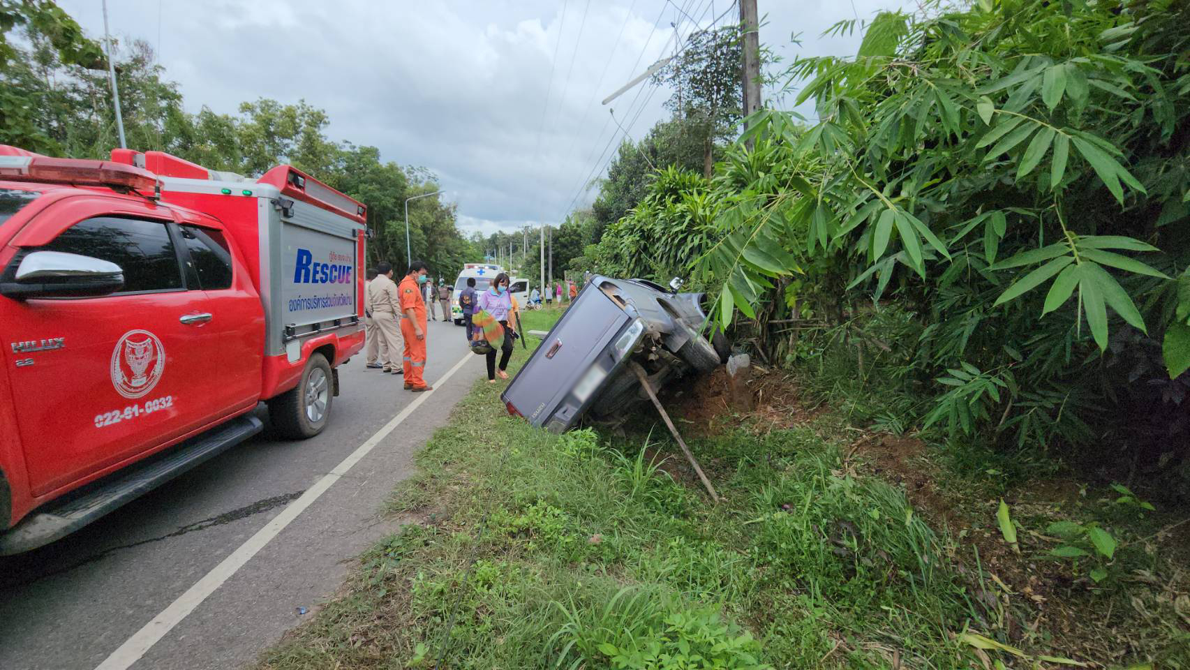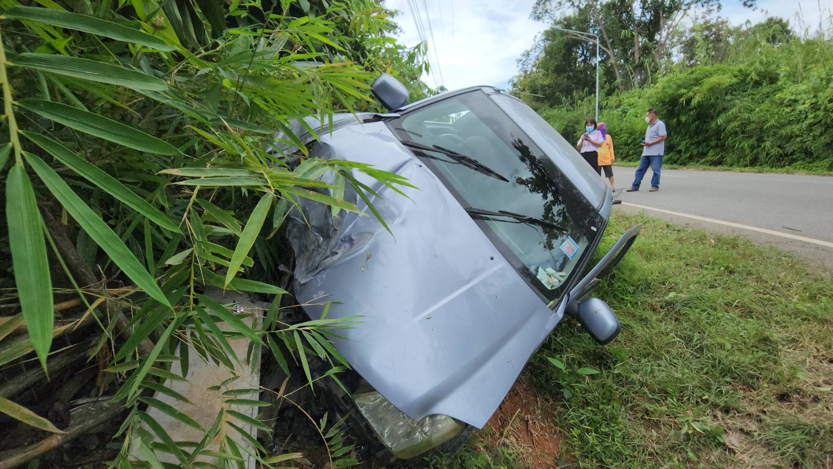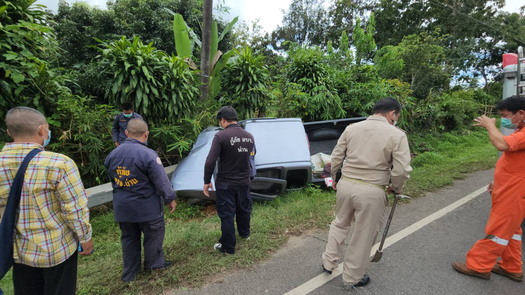 เมื่อวันที่ 3 ตุลาคม 2565 เวลา 11.30 น. รตท.หญิง ภรภรณ์ ไทยใหม่ พงส.สภ.เมืองน่าน ได้รับแจ้งจากศูนย์วิทยุ 191 ตำรวจภูธรจังหวัดน่าน แจ้งว่ามีกระบะชนเสาไฟฟ้ามีผู้ติดอยู่ภายในระหว่างถนนสายบ้านตาแก้ว – บ่อสวก พื้นที่บ้านตาแก้ว หมู่ 6 ตำบลไชยสถาน อำเภอเมืองน่าน จังหวัดน่าน จึงรุดไปตรวจสอบในที่เกิดเหตุพบ ทีมกู้ชีพ อบต.ไชยสถาน ,รถอุปกรณ์ตัดถ่างของ กู้ภัย อบจ.น่าน กำลังพยายาม ให้ความช่วยเหลือนายนิก (นามสมมุติ) อายุประมาณ 68 ปี ได้บาดเจ็บที่ติดอยู่ในรถสามารถนำออกมาได้ปฐมพยาบาลเบื้องต้น ณ จุดเกิดเหตุก่อนนำส่งโรงพยาบาลน่าน โดยมีทีม จนท.ตร.ตู้ยามไชยสถาน อำนวยความสะดวกในที่เกิดเหตุ